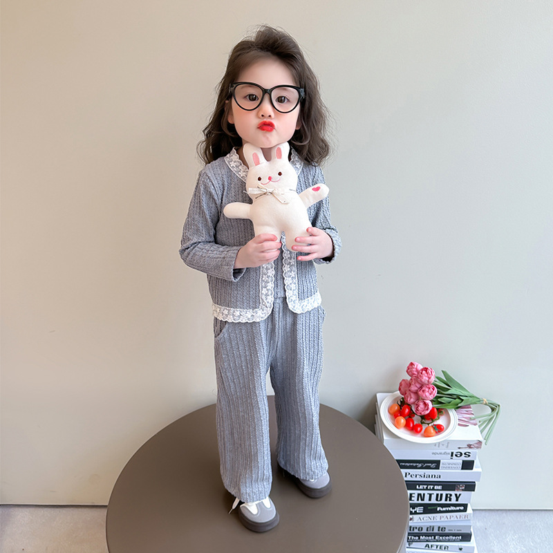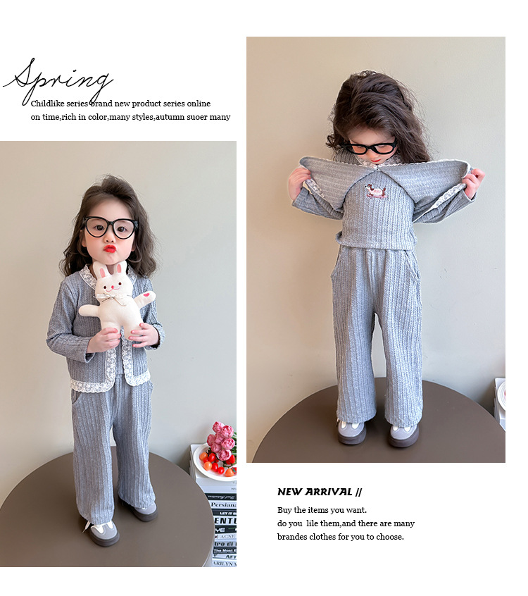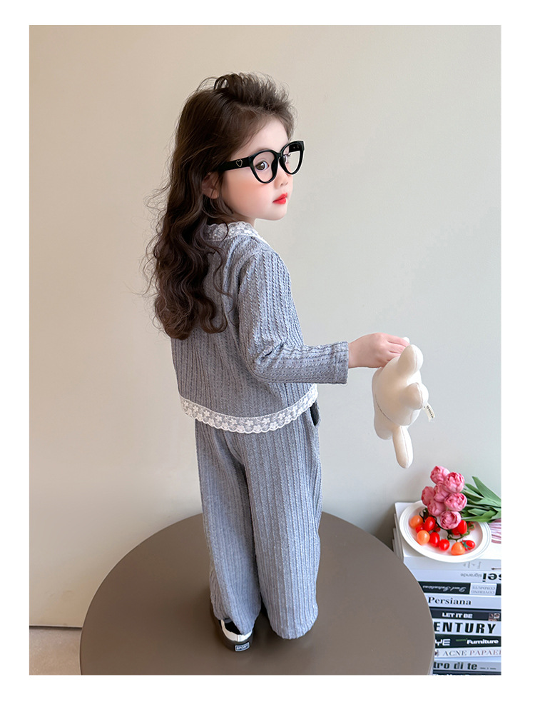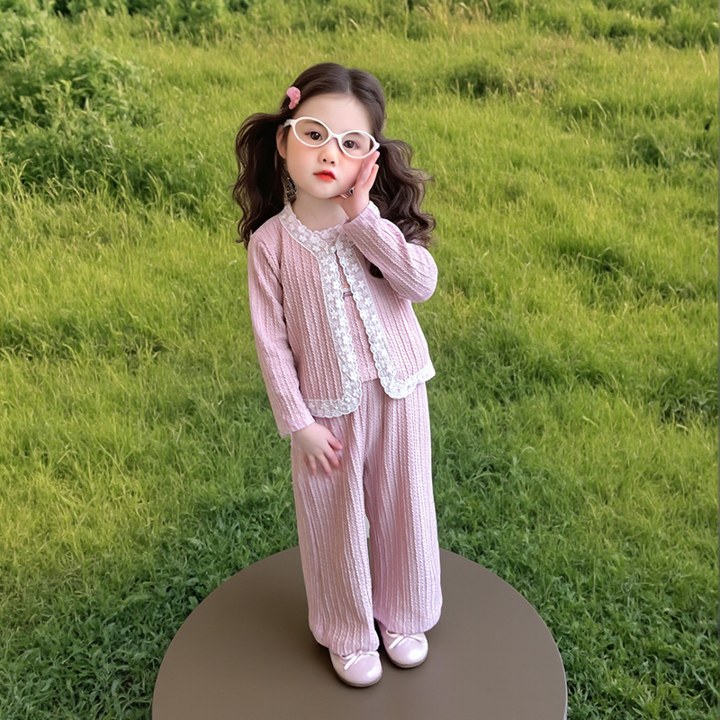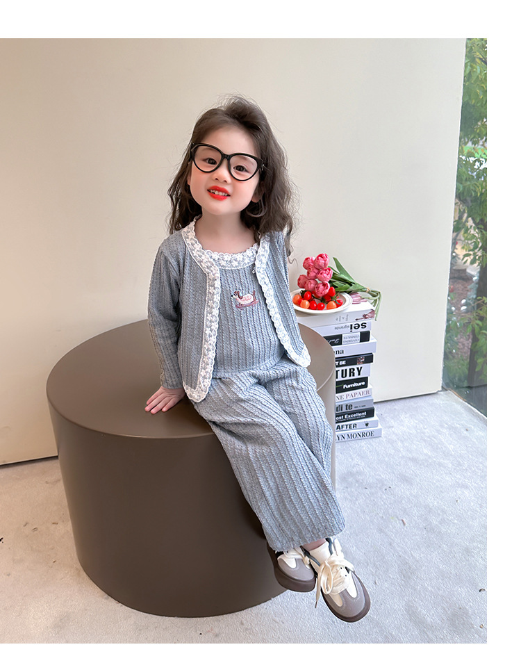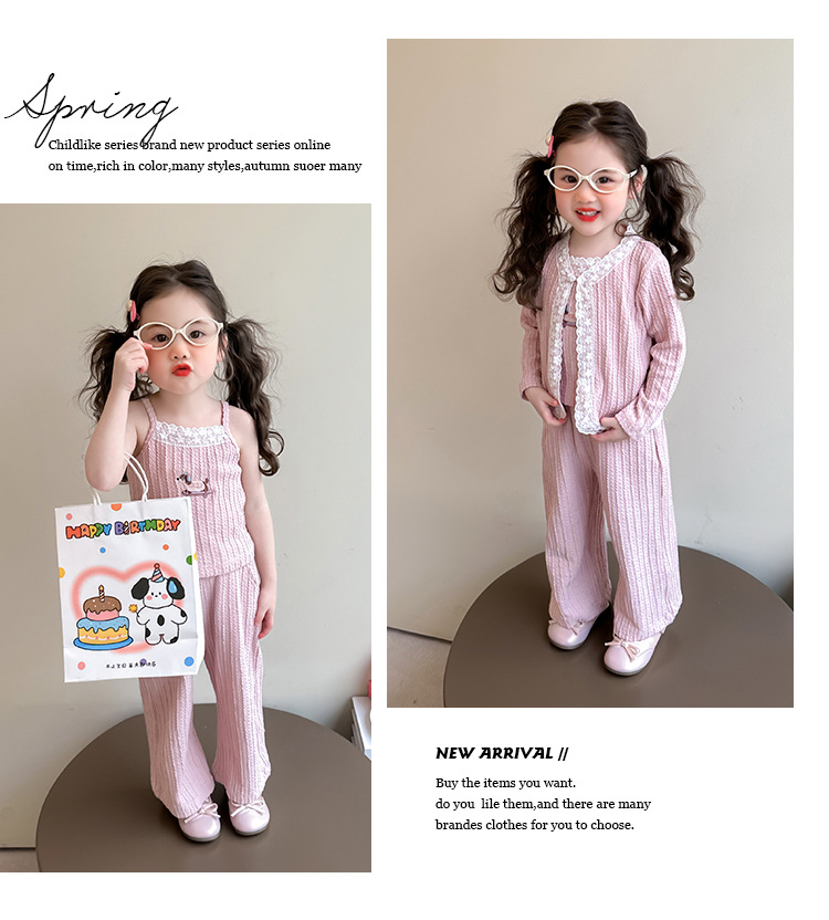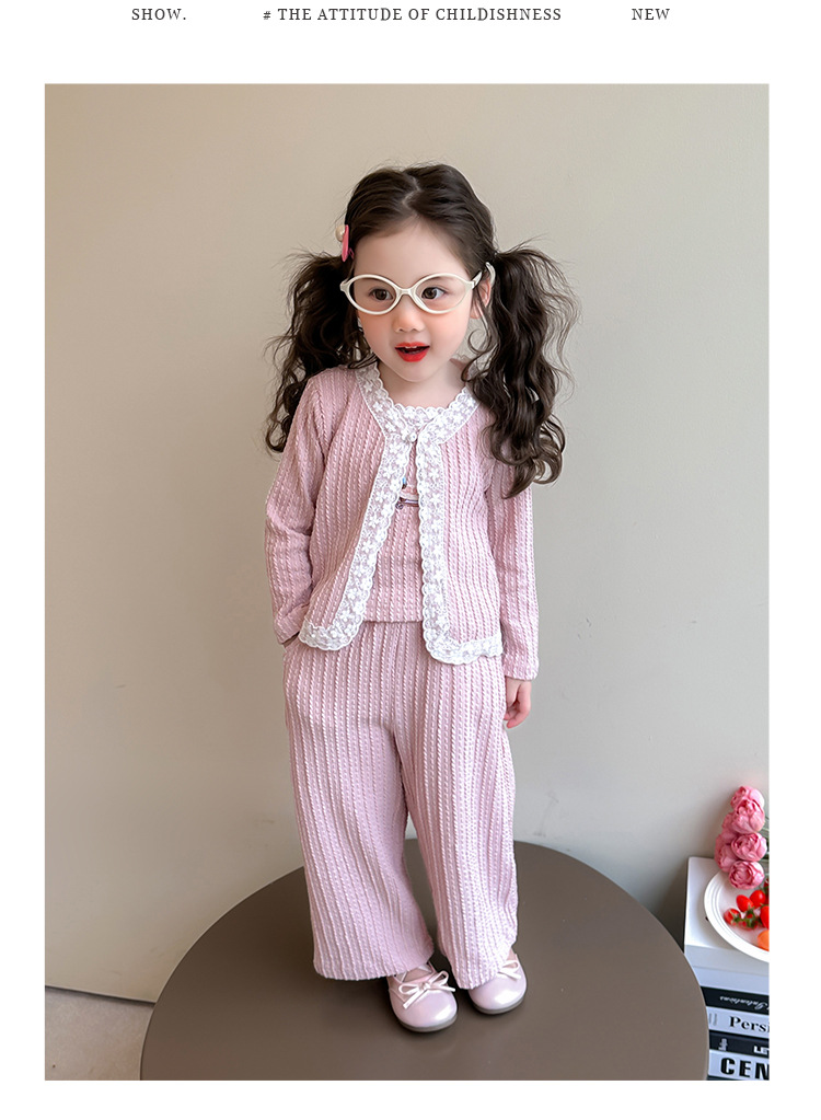 소녀 니트 카디건 3 종 세트 봄과 가을 2025 새로운 패션 어린 소녀 만화 캐주얼 세트 어린이스토어 가기