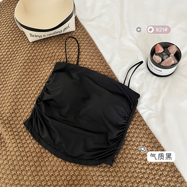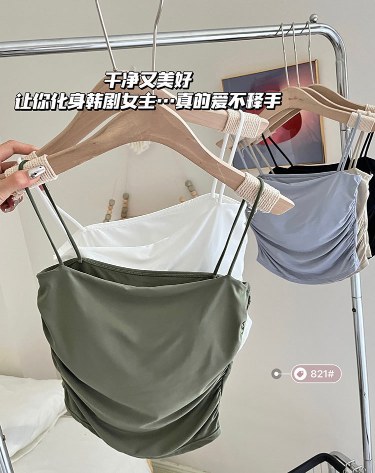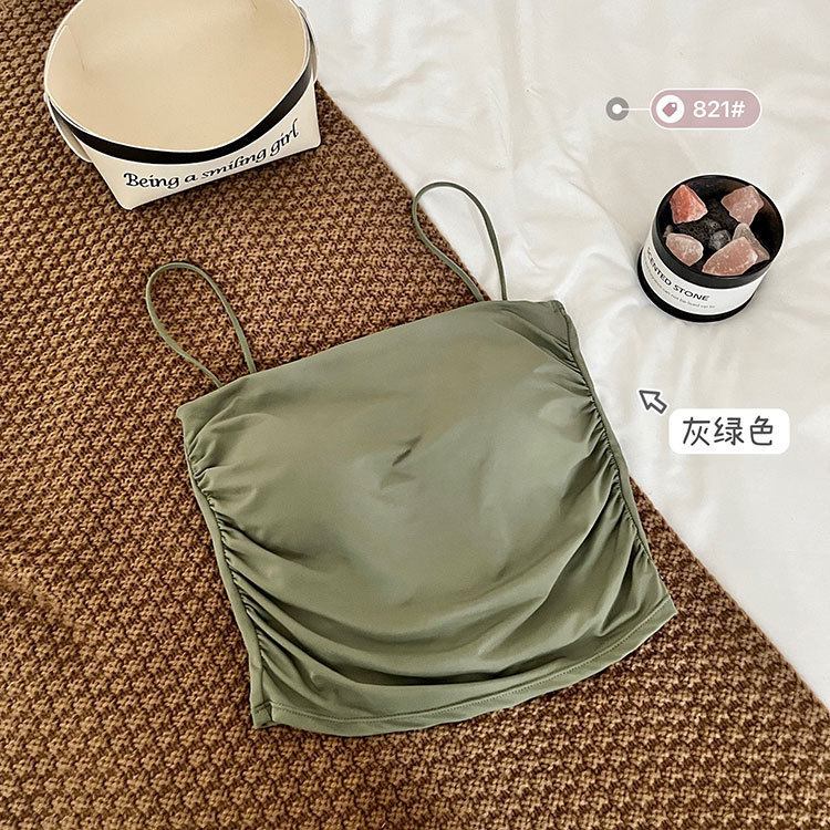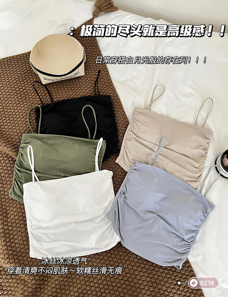 아이스 실크 주름 칼라 솔리드 컬러 카미 솔 여성용 원피스 고정 컵 내부 착용 아름다운 뒤로 감싸는 유방 튜브 탑스토어 가기