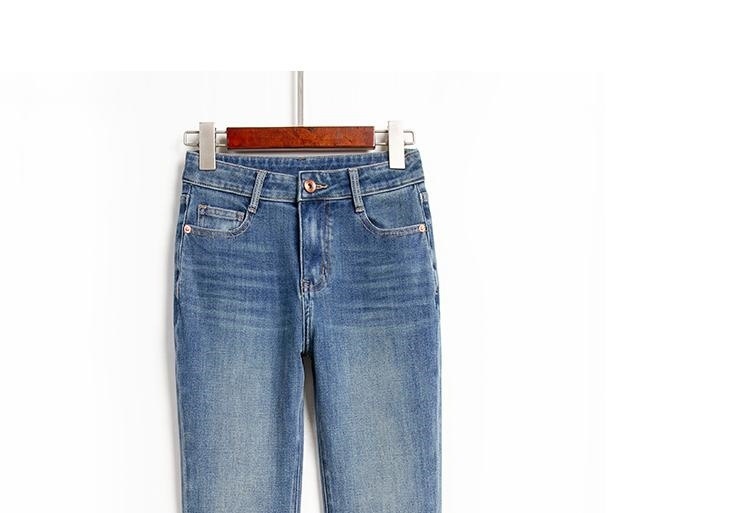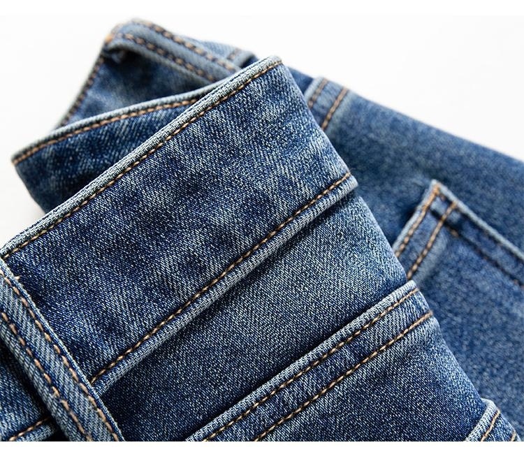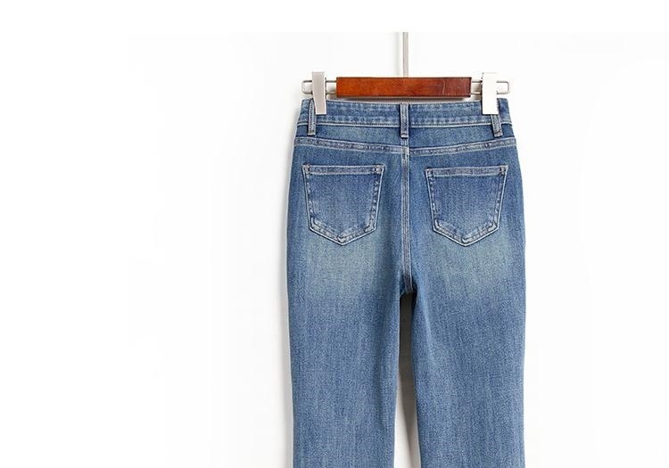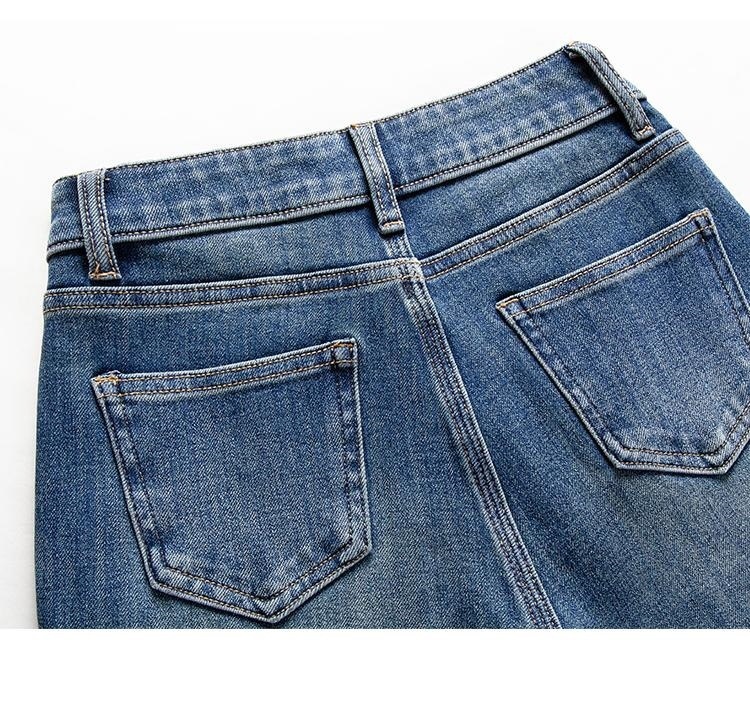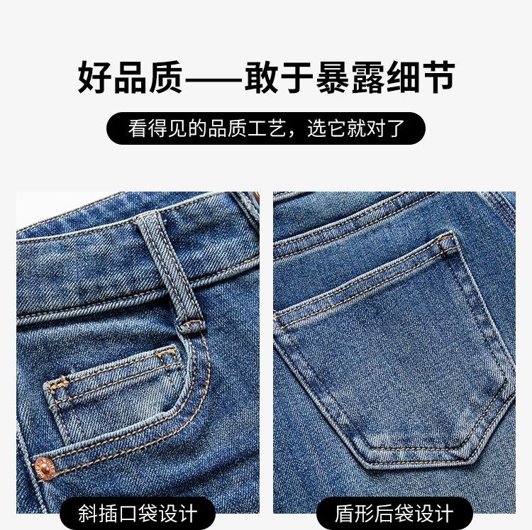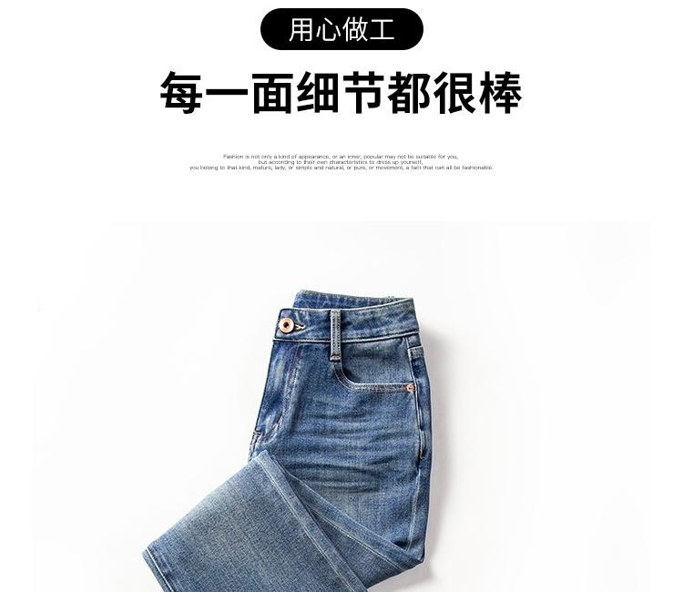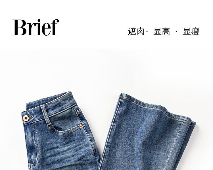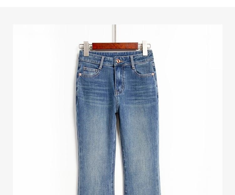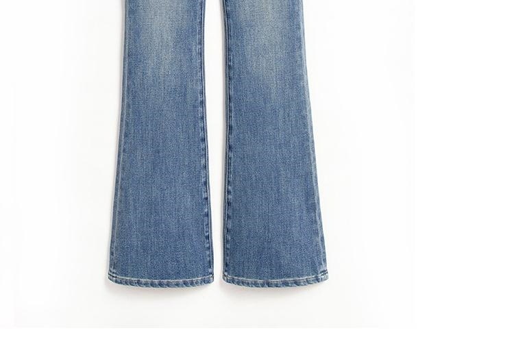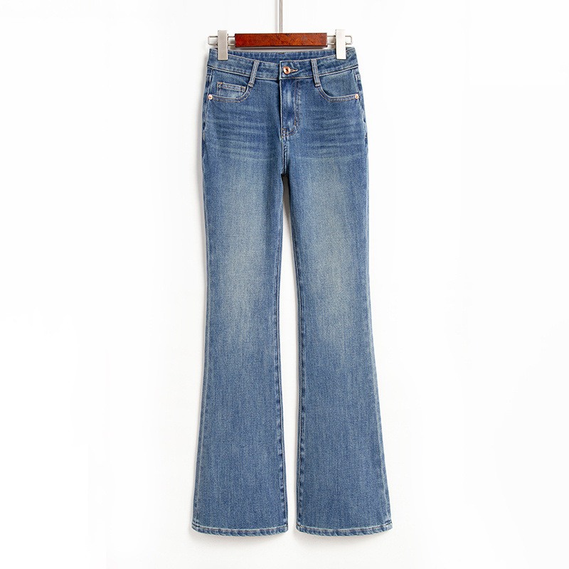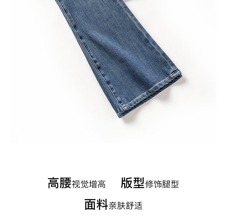 마이크로 데님 여성의 가을 2024 새로운 배 모양의 몸 높은 허리 슬림 슬림핏 자른 플레어 바지스토어 가기