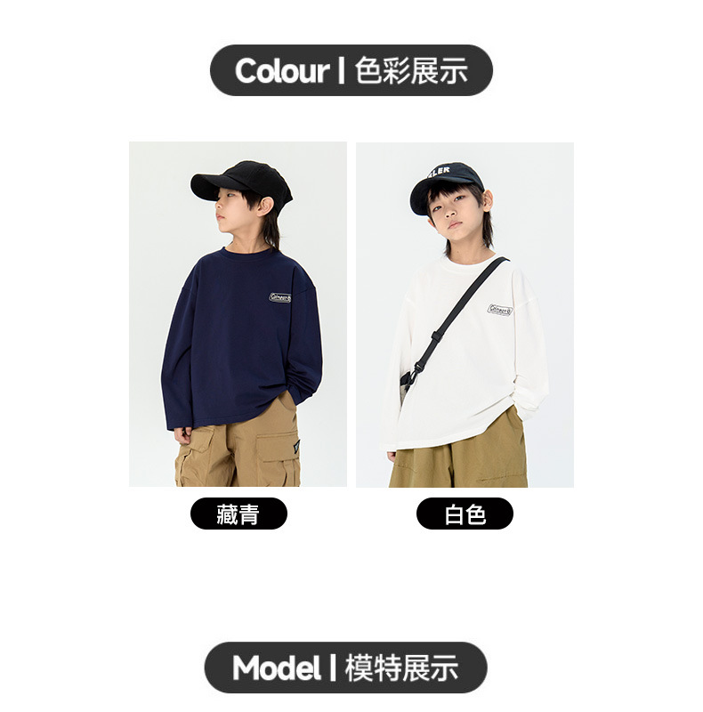 어린이 티셔츠 2025 봄 뉴 보이즈 한국식 프린트 백 긴팔 티셔츠 트렌디