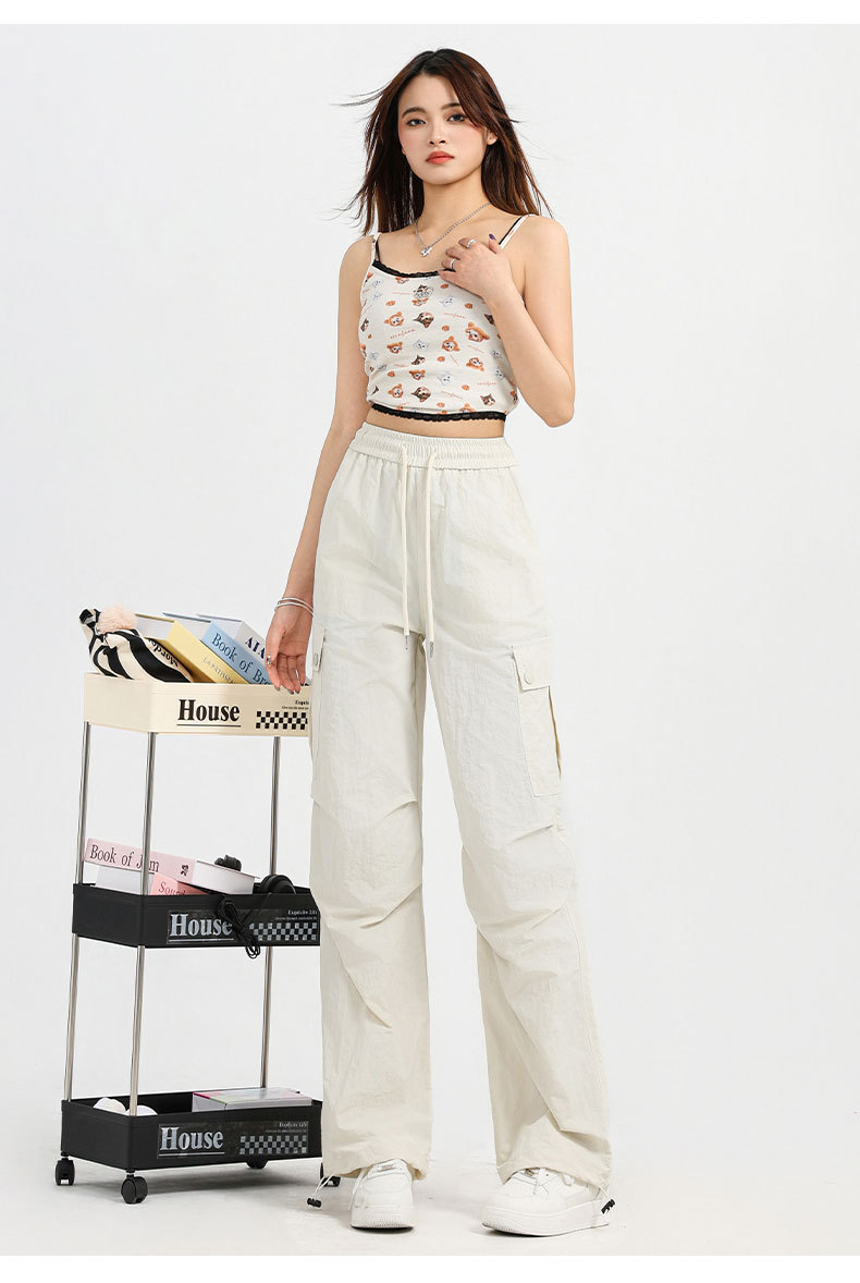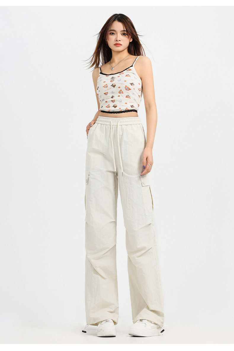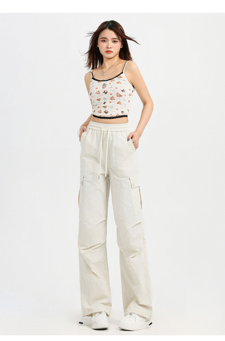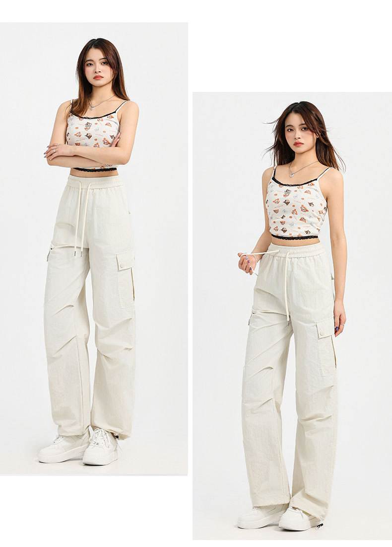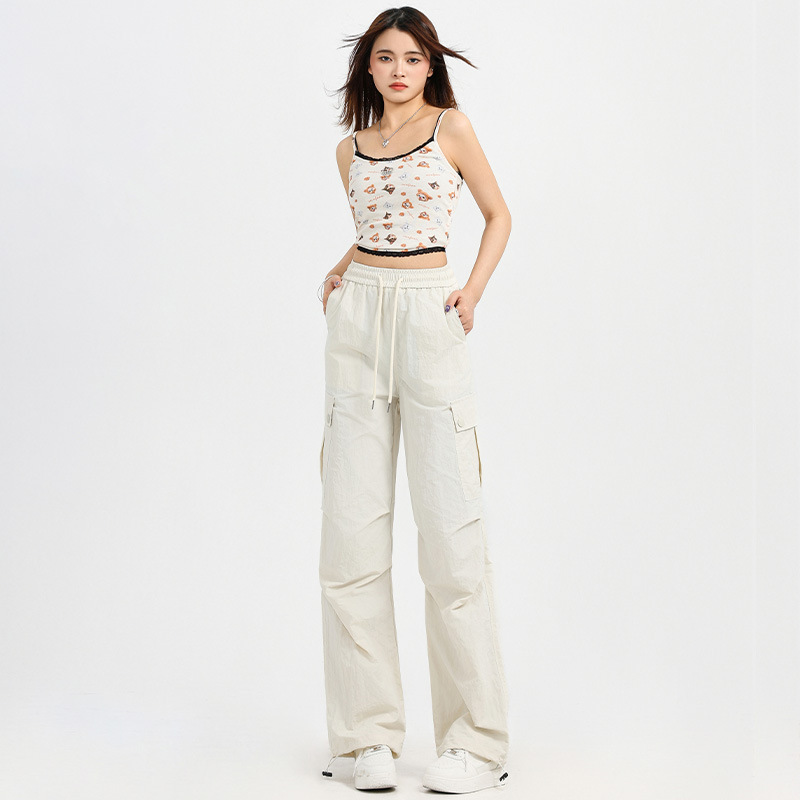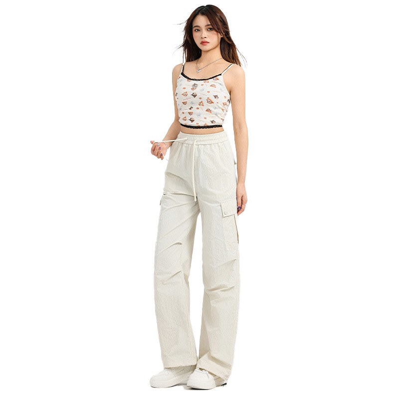 하이 퀄리티 흰색 바지 여성의 봄과 여름 2025 새로운 야외 폭행 바지 좁은 버전 미국 스트레이트 클라이밍 바지