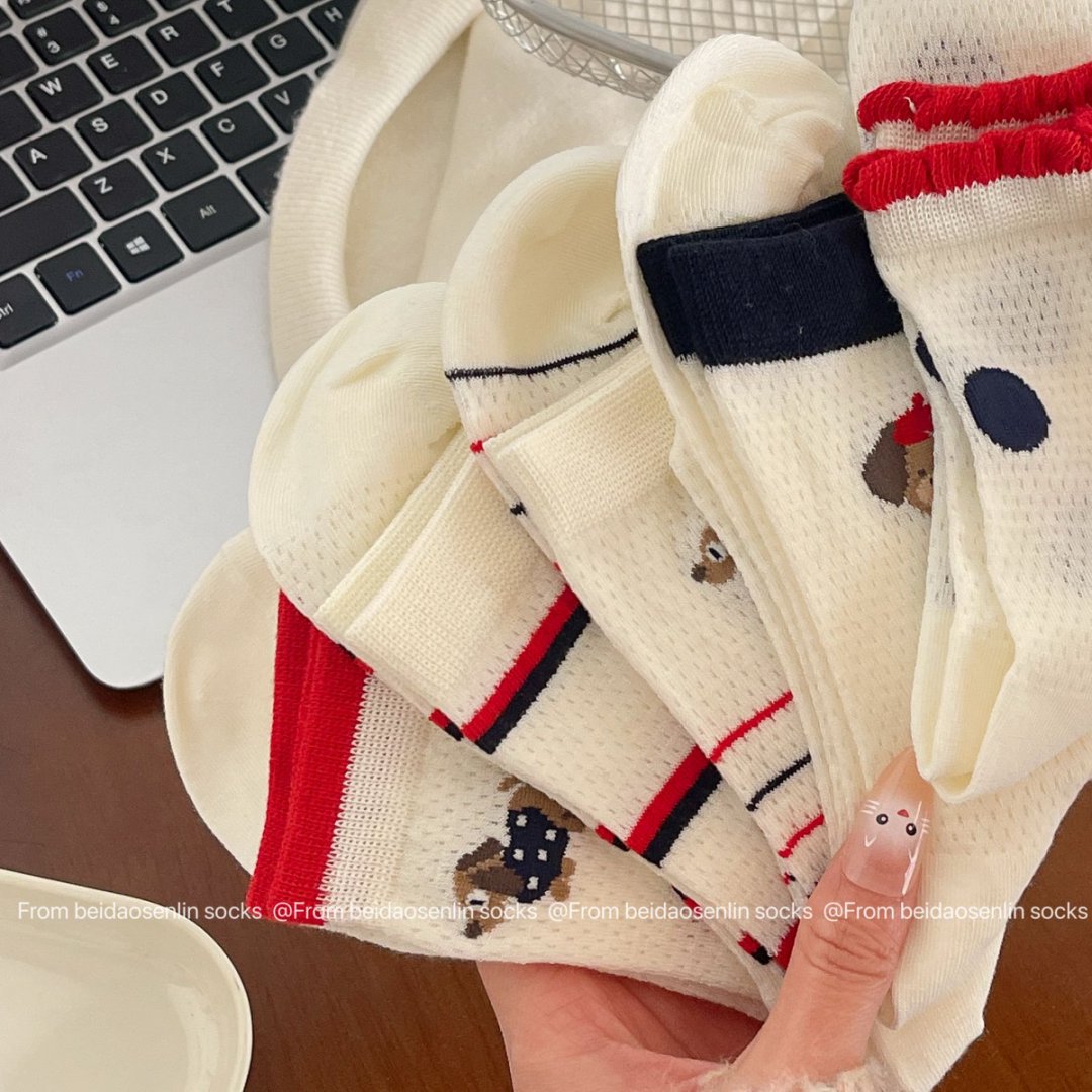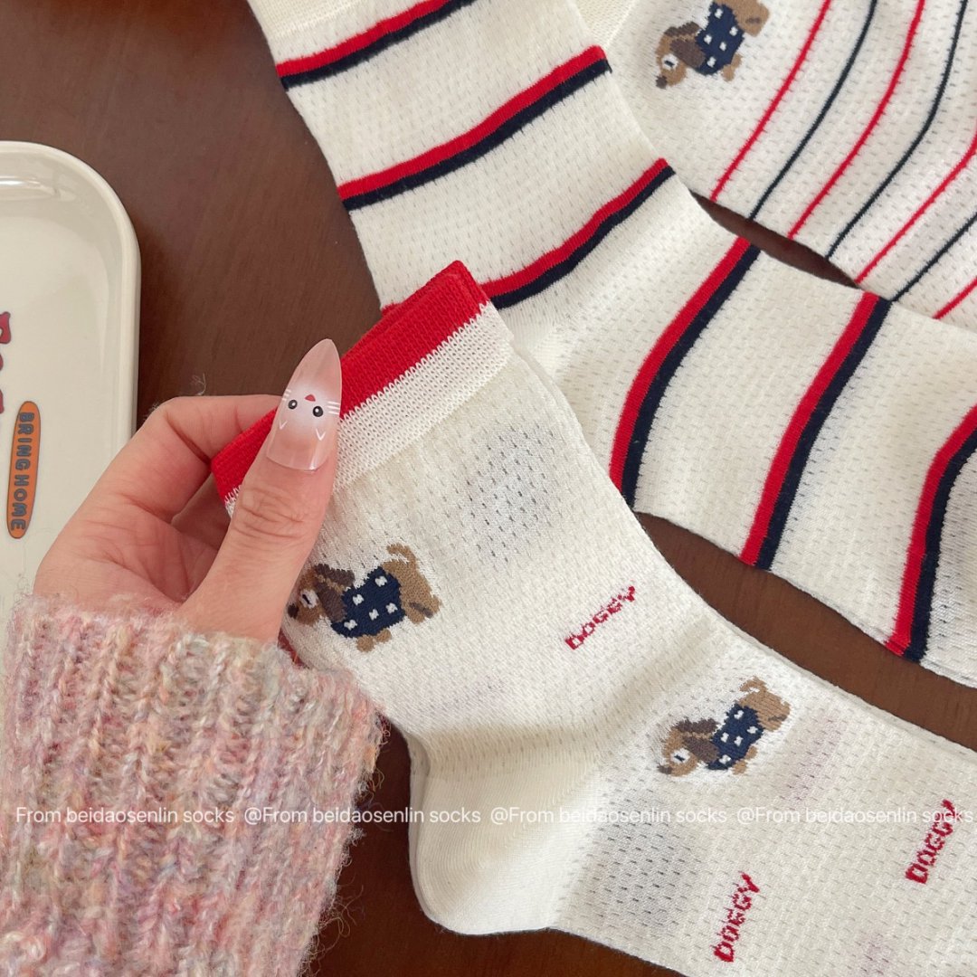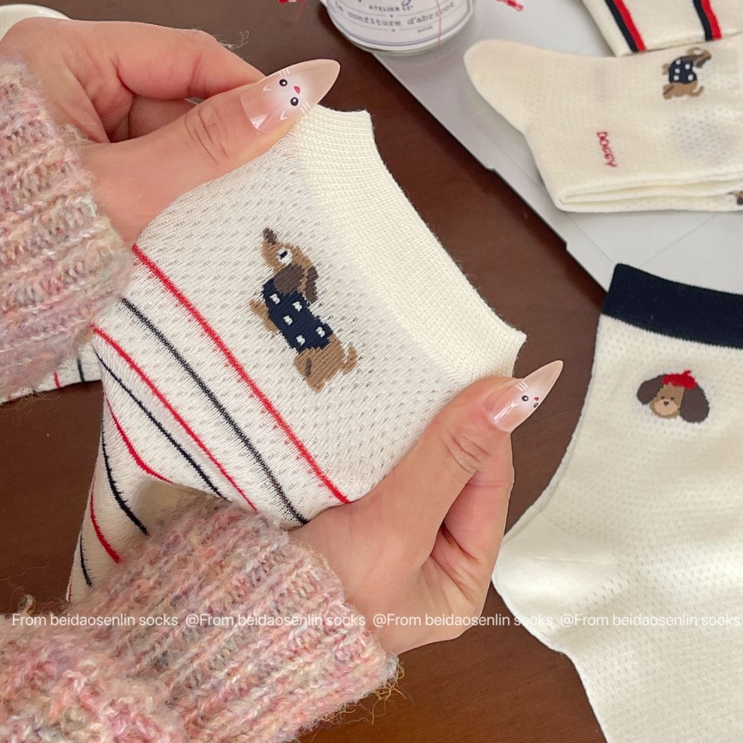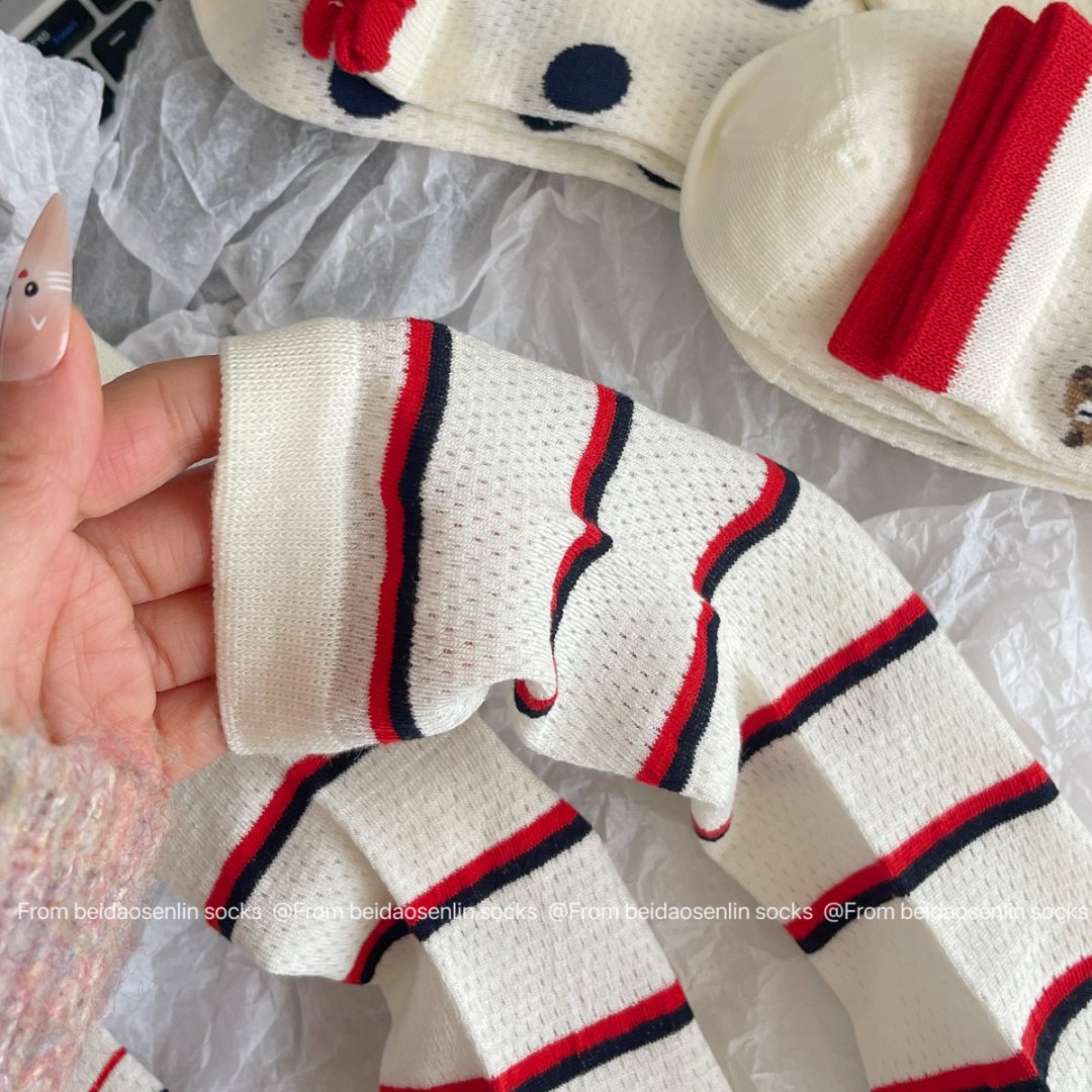 Mekki 새로운 여성 양말 스트라이프 메쉬 폴카 도트 양말 개 만화 중반 송아지 양말 가볍고 통기성 기능 유행면 양말스토어 가기