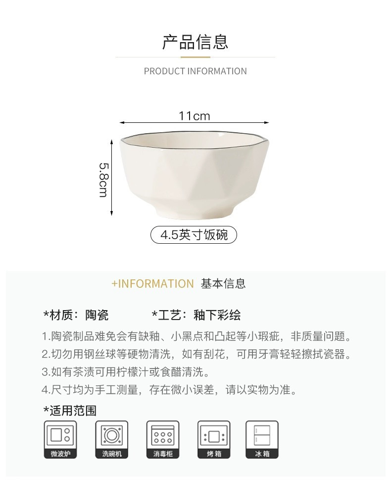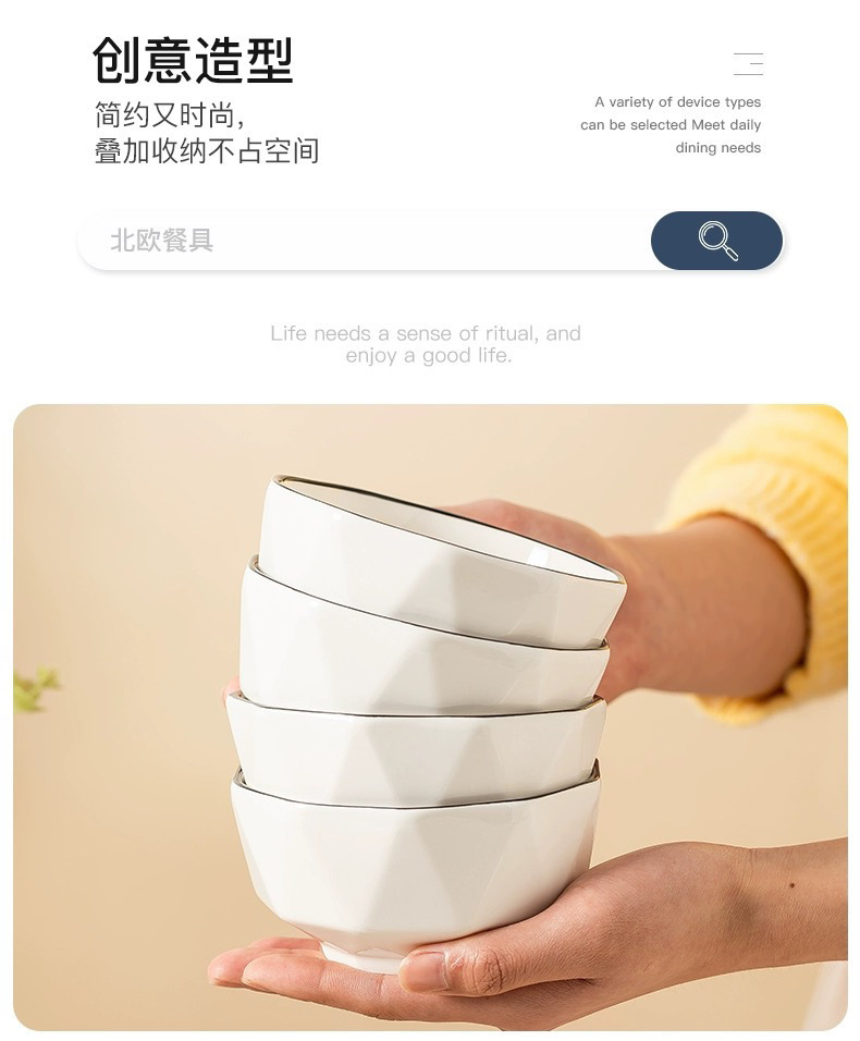2025 뉴 보울 홈 인터넷 연예인 Ins 스타일 고급 질감 블랙 에지 다이아몬드 스몰 볼 라이스 볼 특별 제공스토어 가기