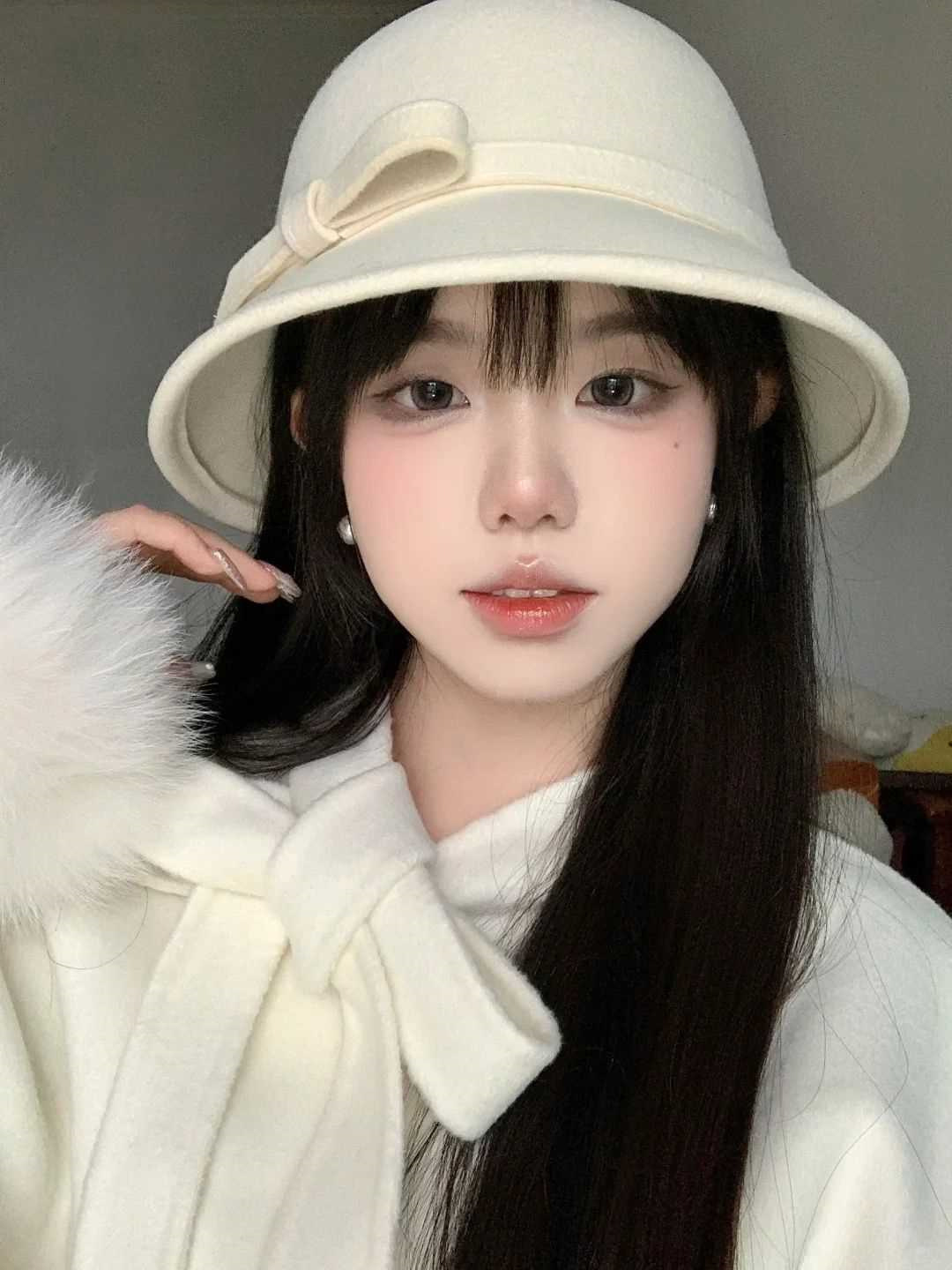 모자 여성의 2025 년 새로운 가을과 겨울 프랑스 헵번 스타일 탑 모자 모든 경기 작은 샤넬 스타일 어부 모자 얼굴 쇼케이스 작은 분지 모자스토어 가기