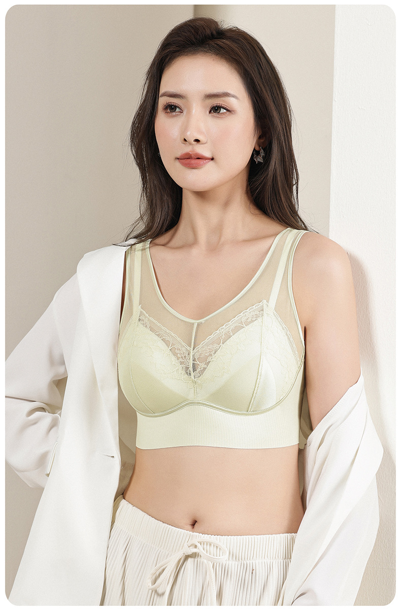와이드 숄더 스트랩 섹시 레이스 푸시 업 브래지어 여성용 미끄럼 방지 아름다운 백 조끼 처짐 방지 소프트 지원 탑 브레이크리스 속옷