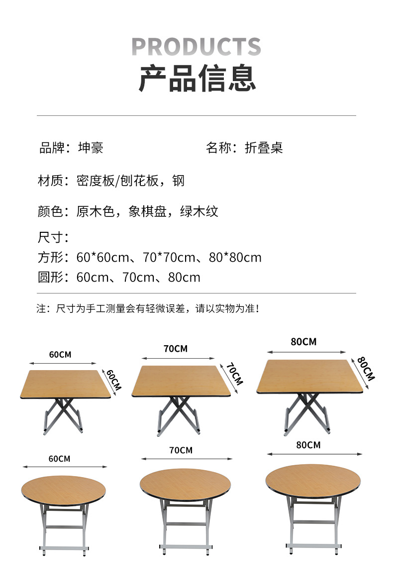 • 80*80cm 정사각형 나무 색상(높이 약 52cm)