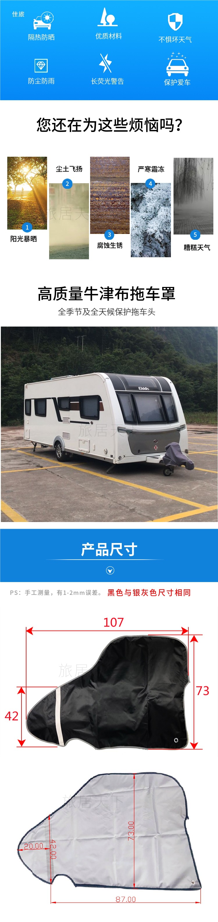 트레일러 견인 헤드 커버 트레일러 트레일러 커넥터 보호 가방 태양 및 비 볼 헤드 커버 트랙터 헤드 먼지 커버