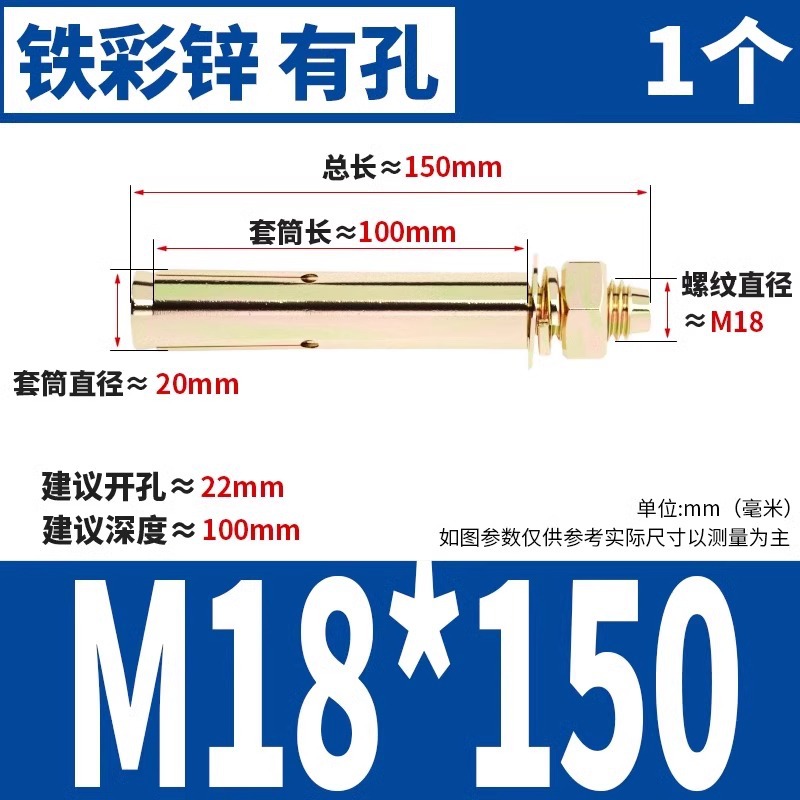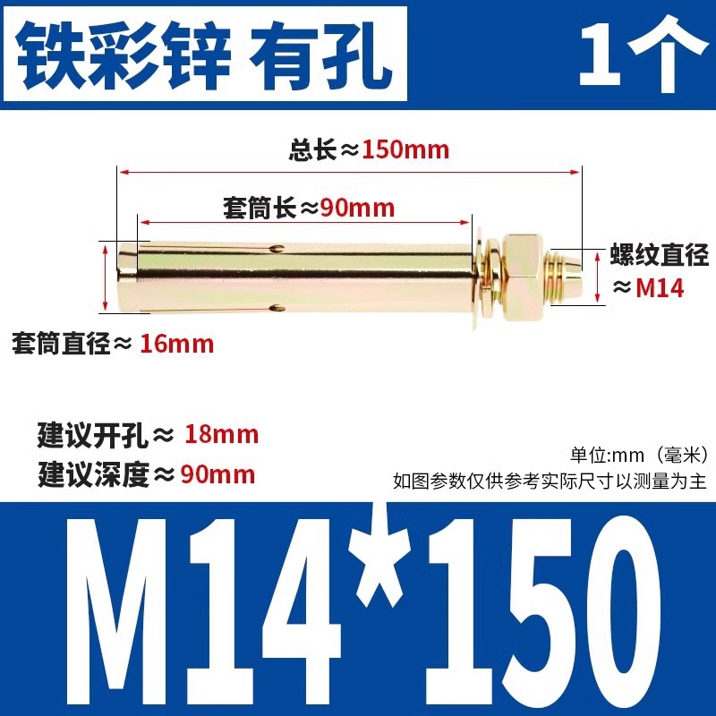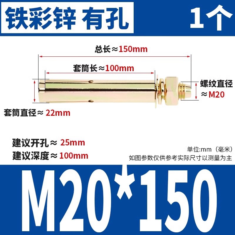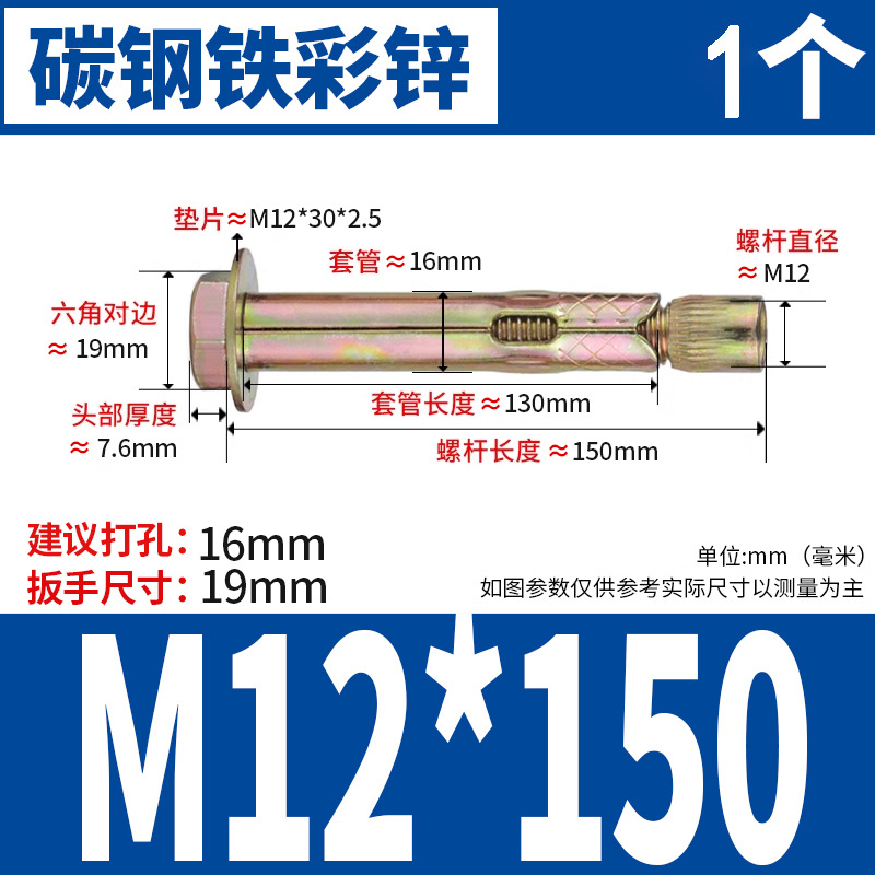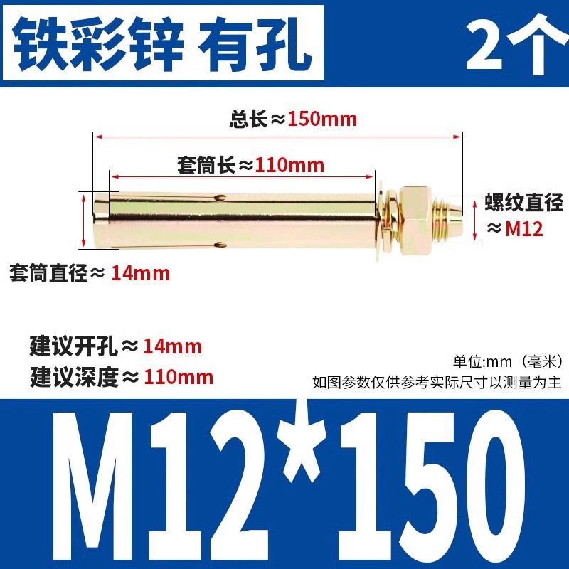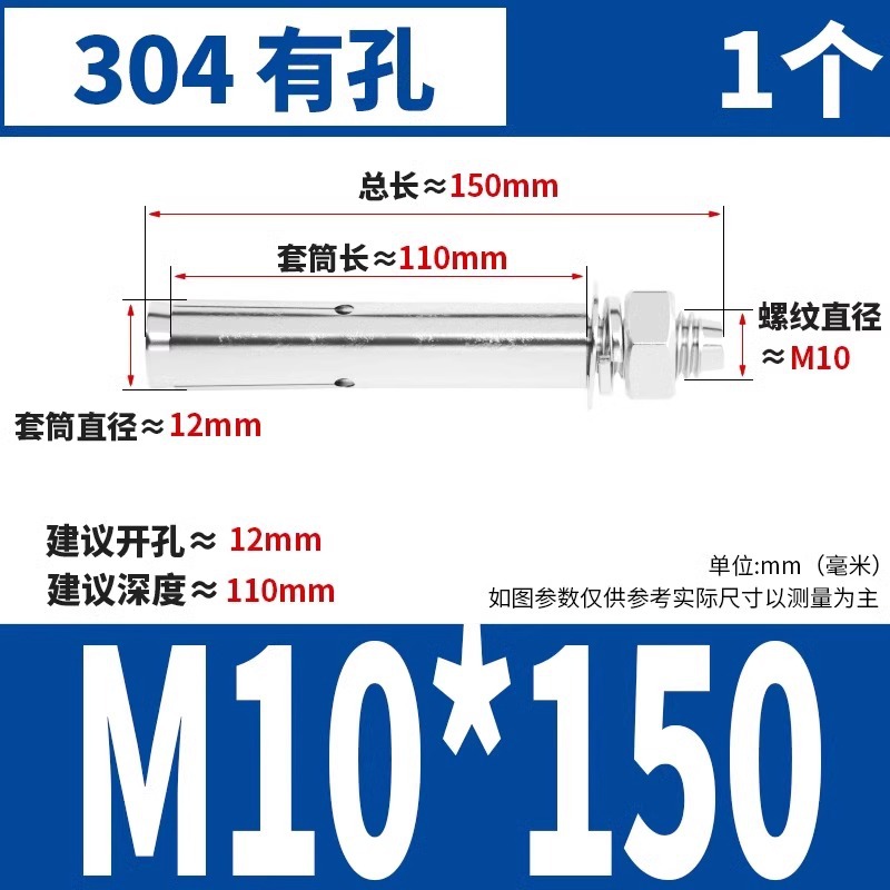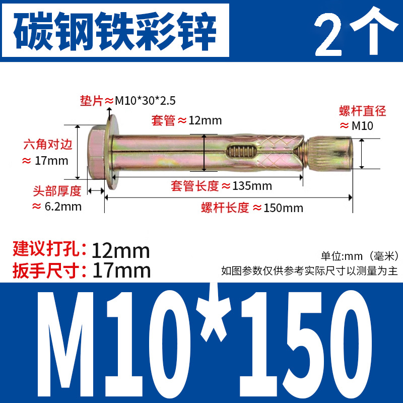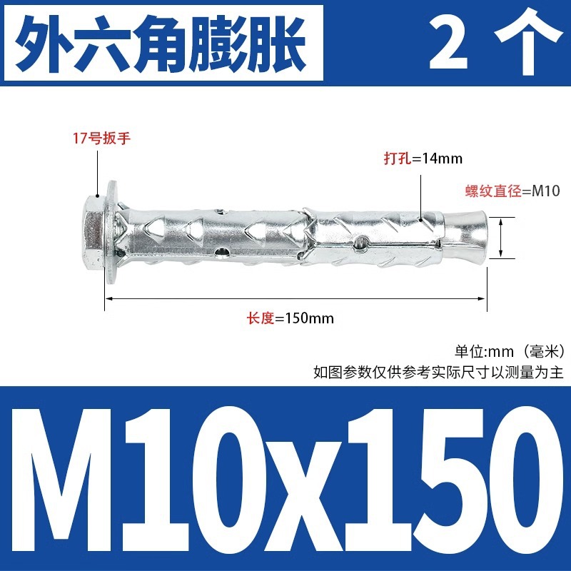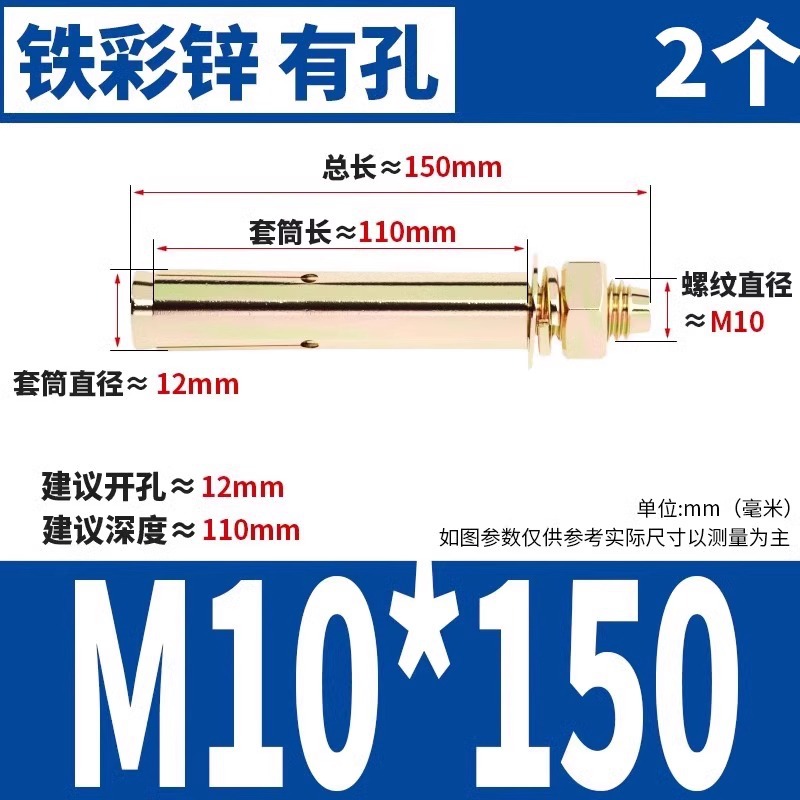 • 외부 육각형 파란색과 흰색 아연 확장 M10*150 [2개] 드릴링은 12mm입니다.