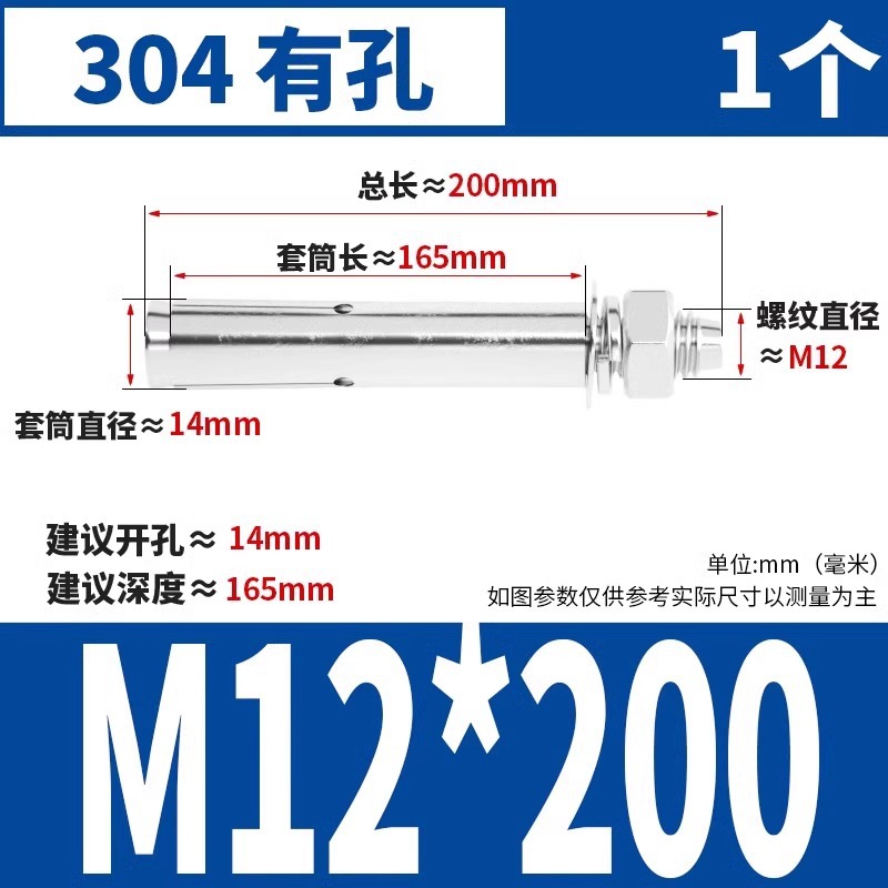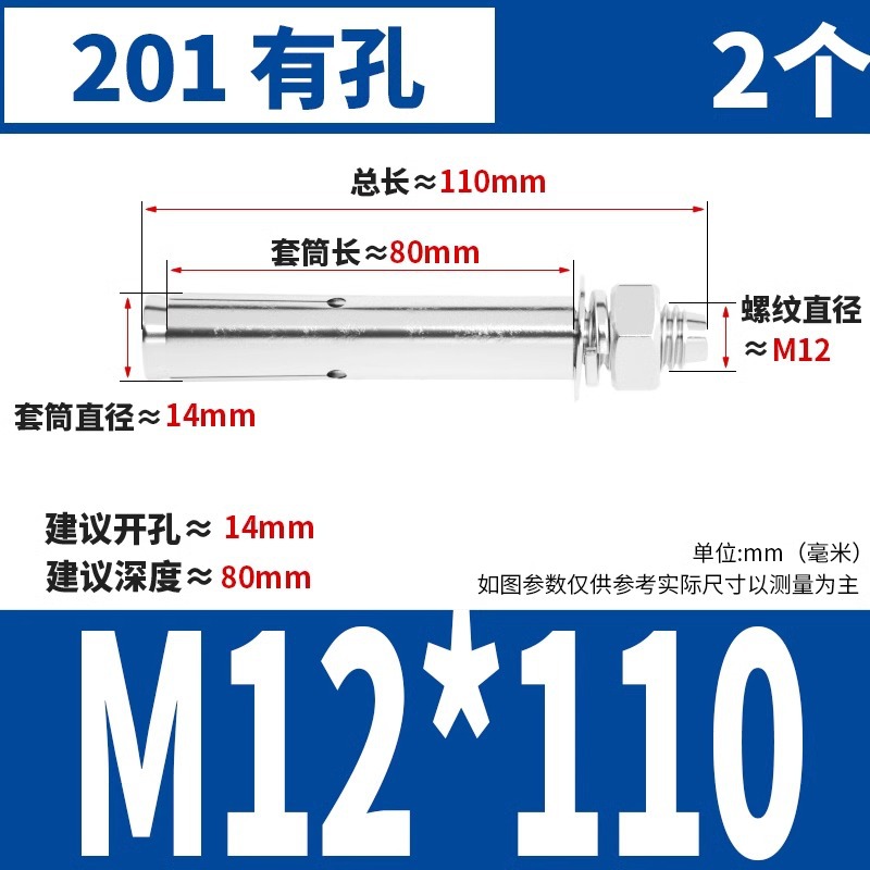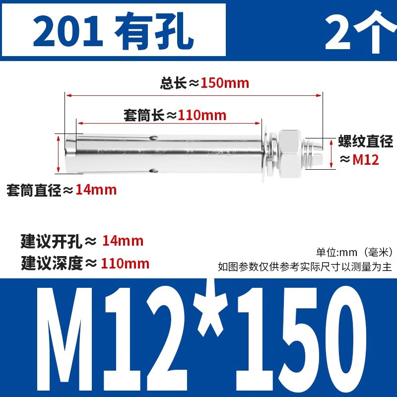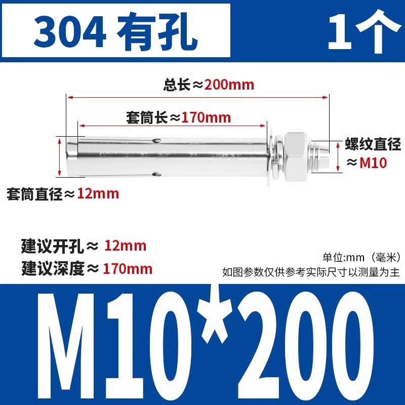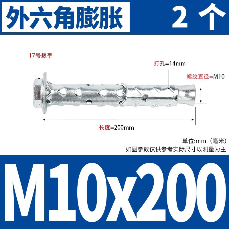 • 외부 육각형 파란색과 흰색 아연 확장 M10*200 [2개] 드릴링은 12mm입니다.