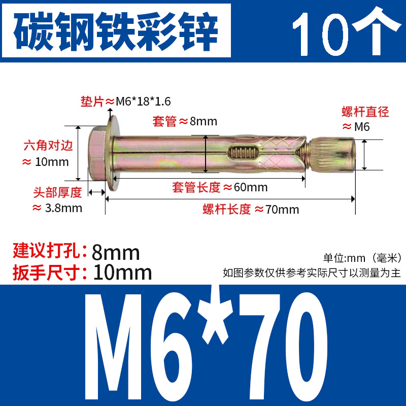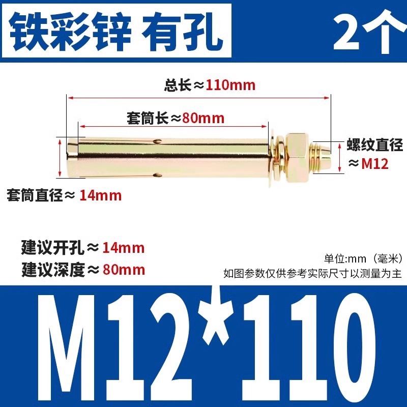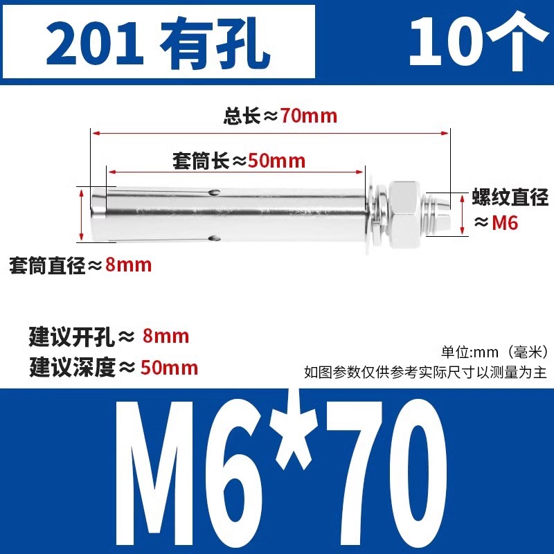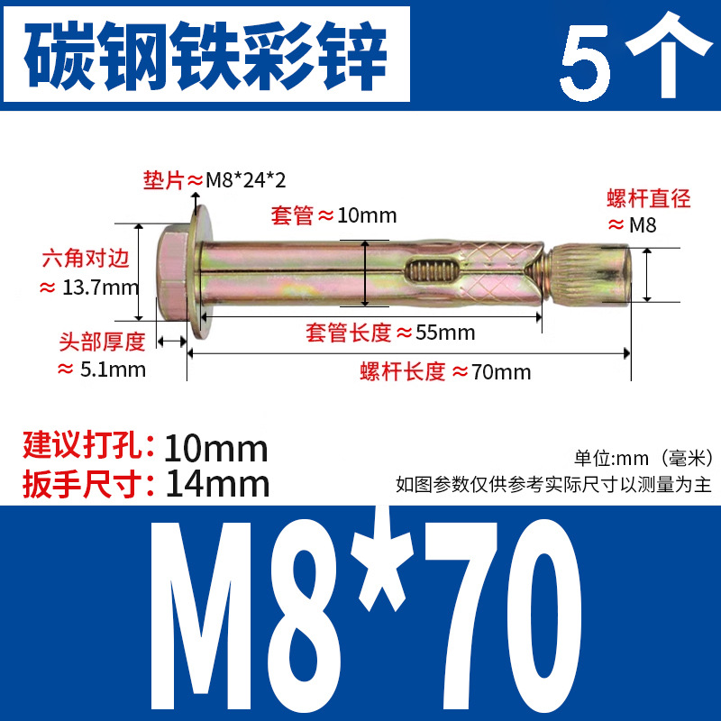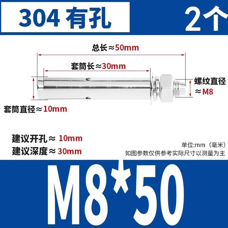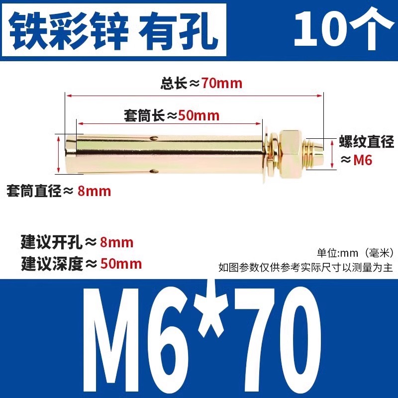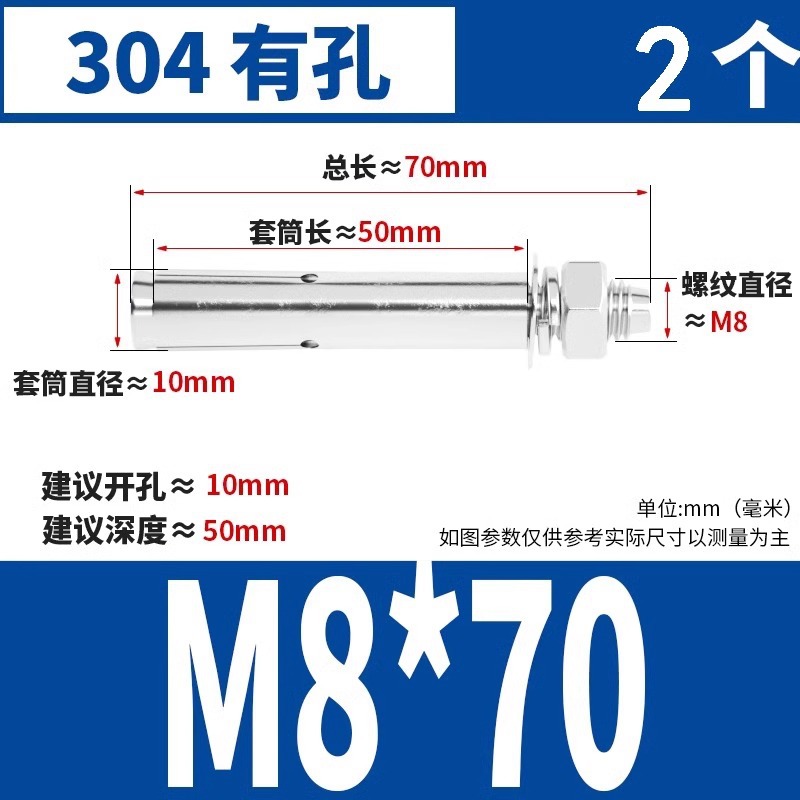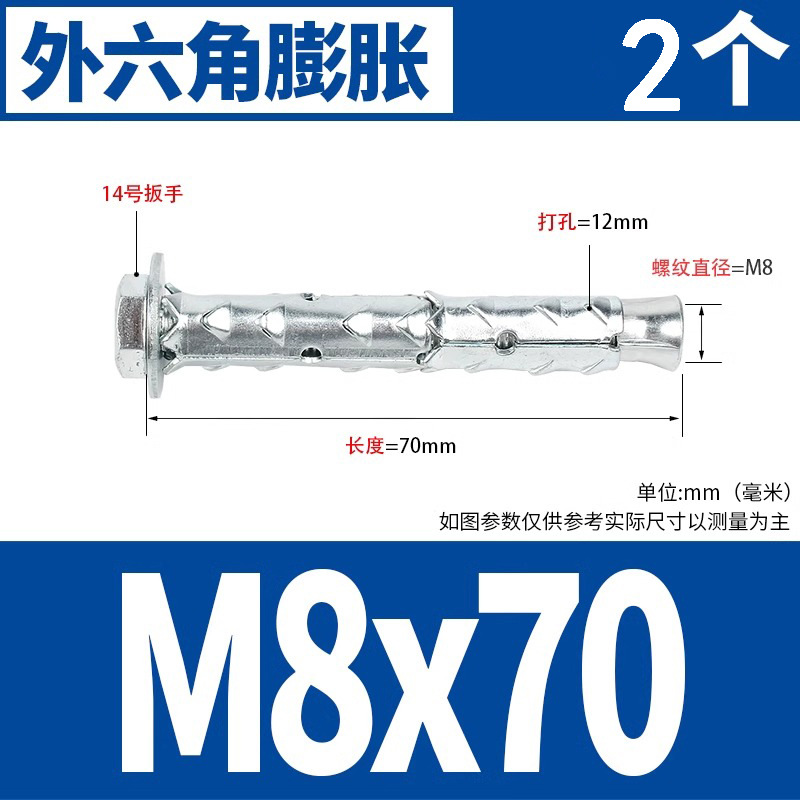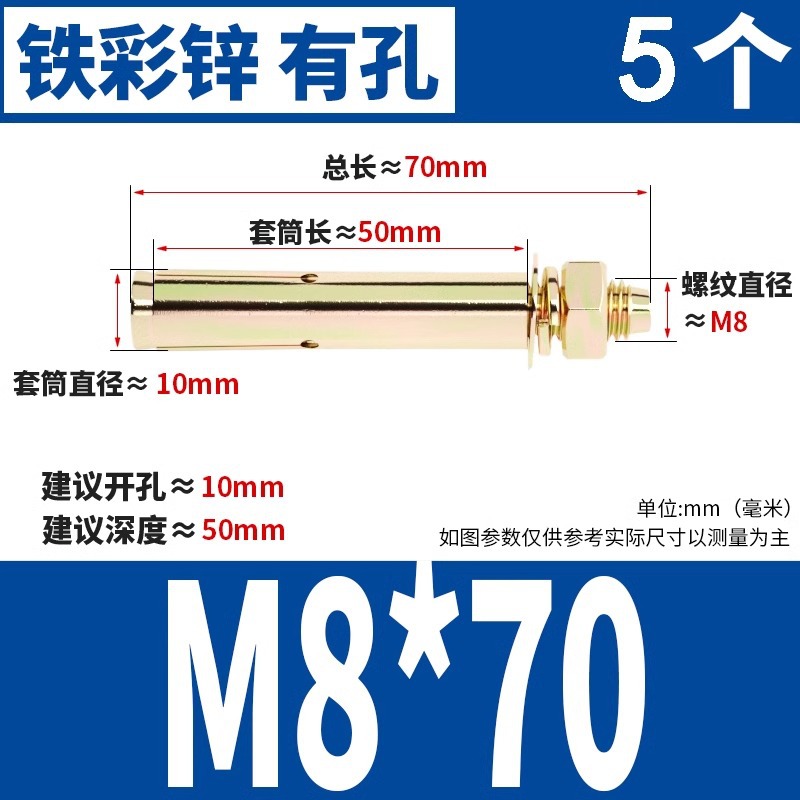 • 외부 육각형 파란색과 흰색 아연 확장 M8*70 [2개] 드릴링은 10mm입니다.