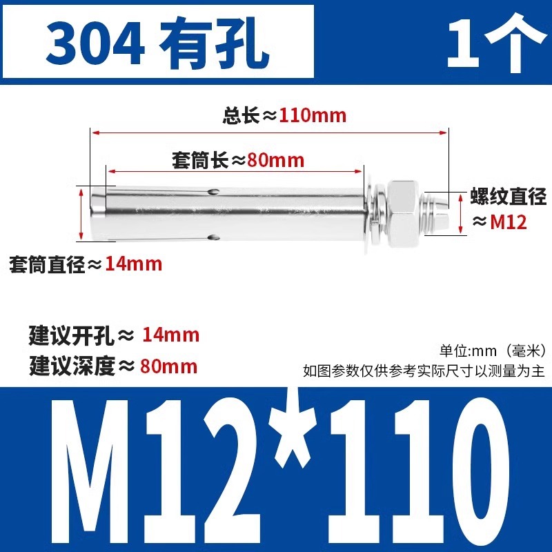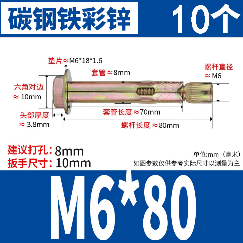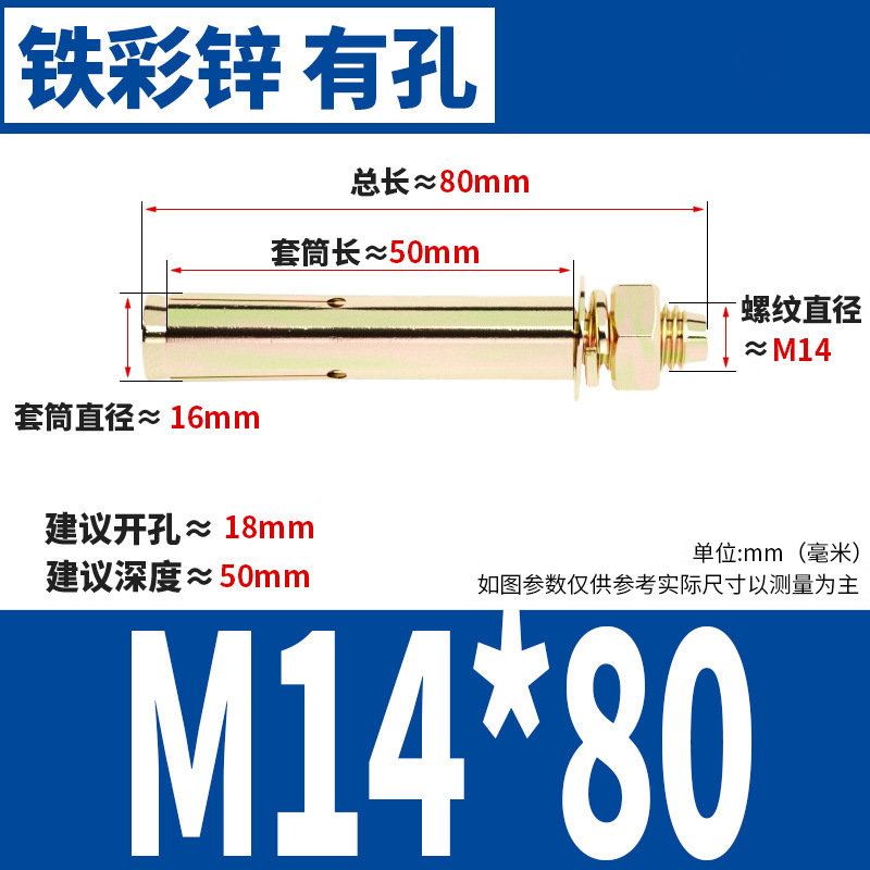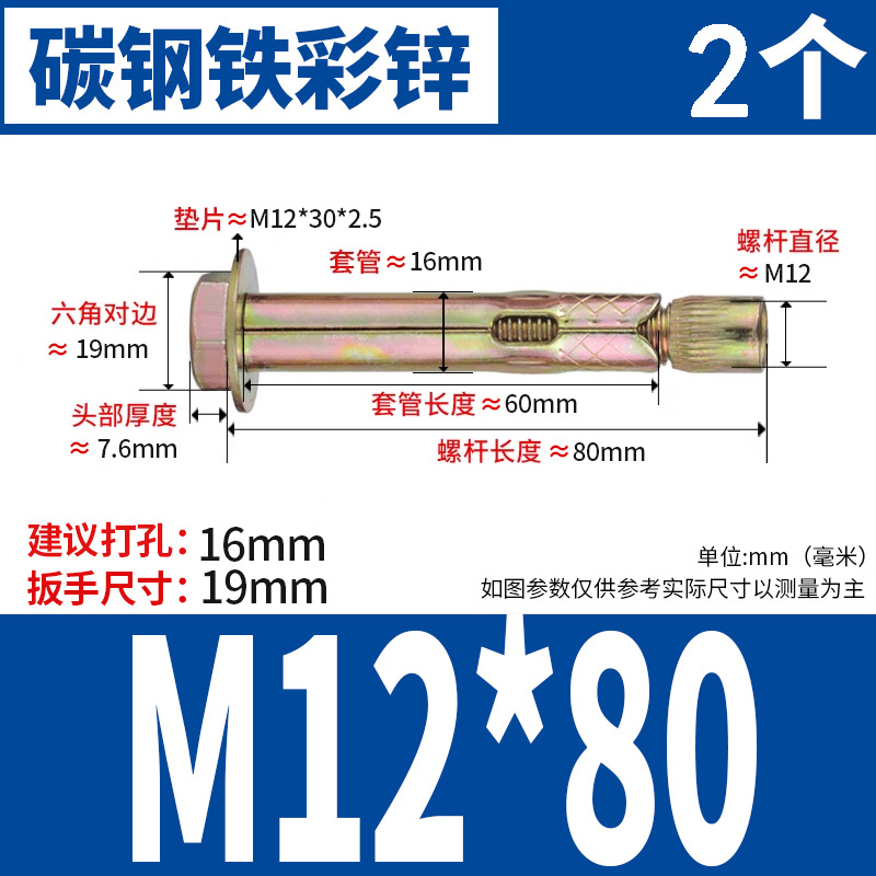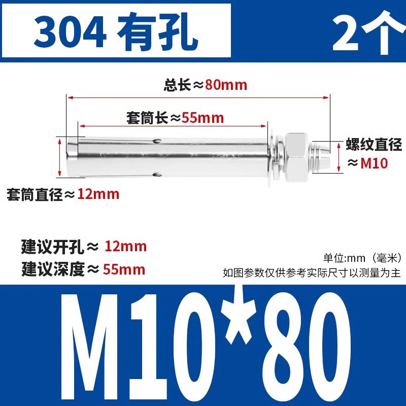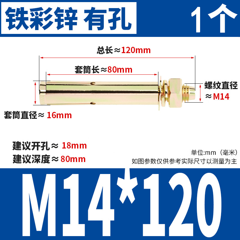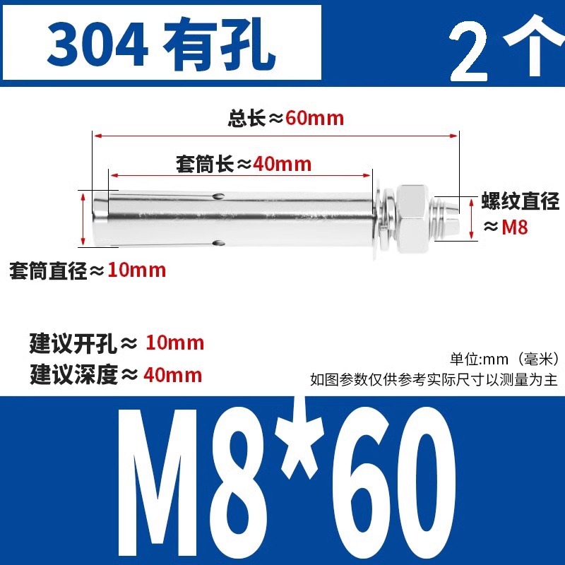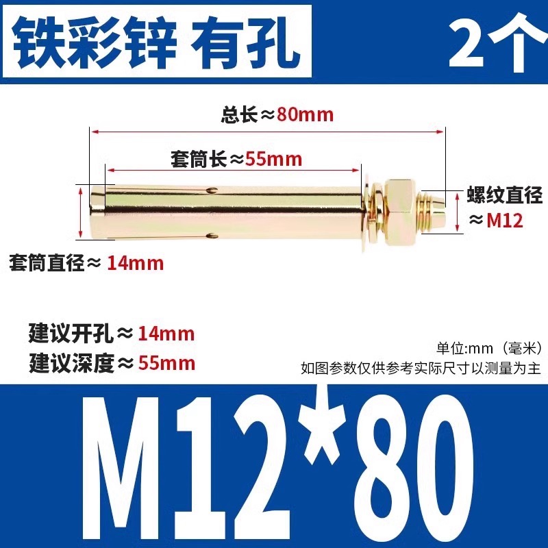• 외부 육각형 파란색과 흰색 아연 확장 M8*70 [2개] 드릴링은 10mm입니다.