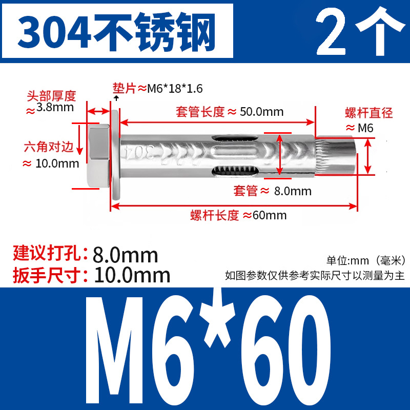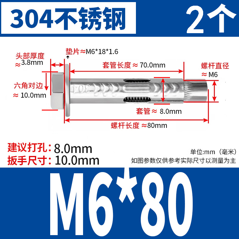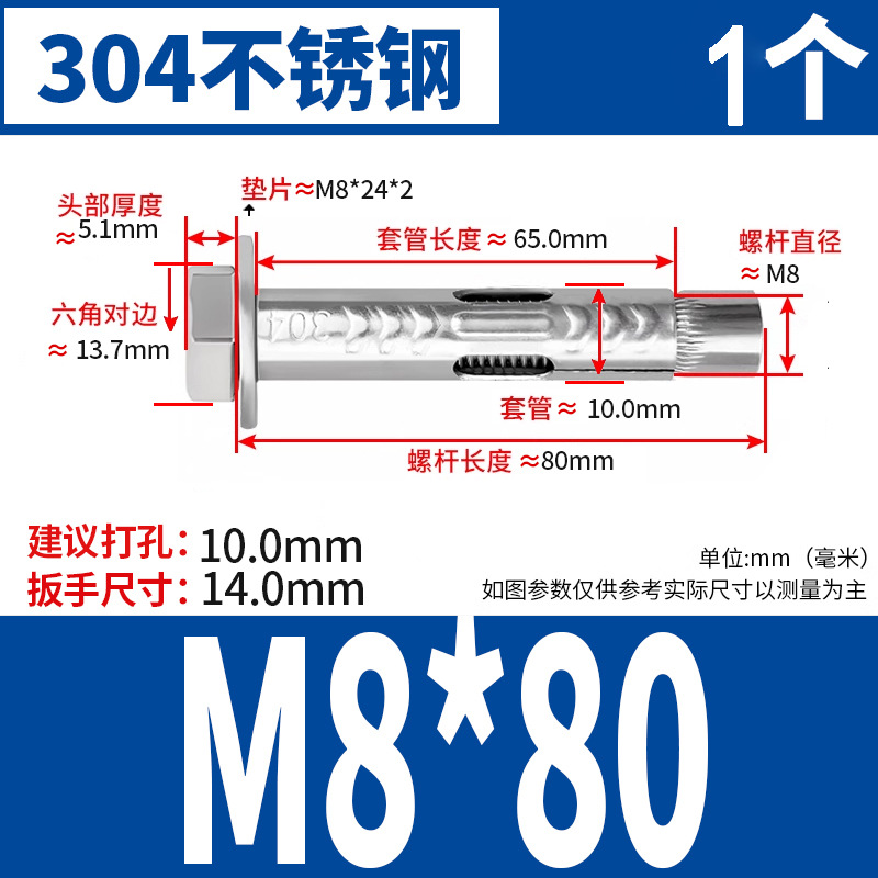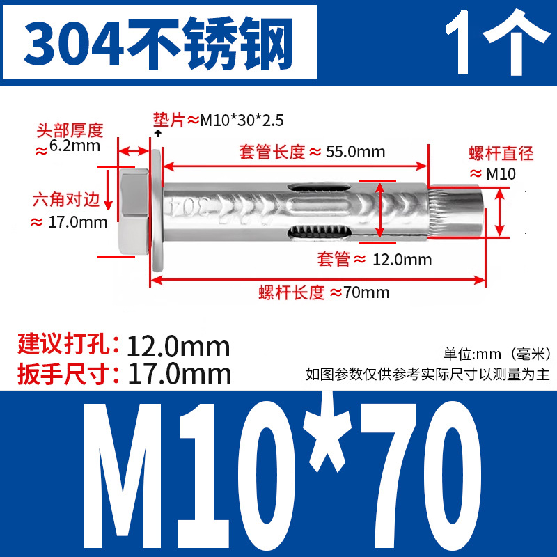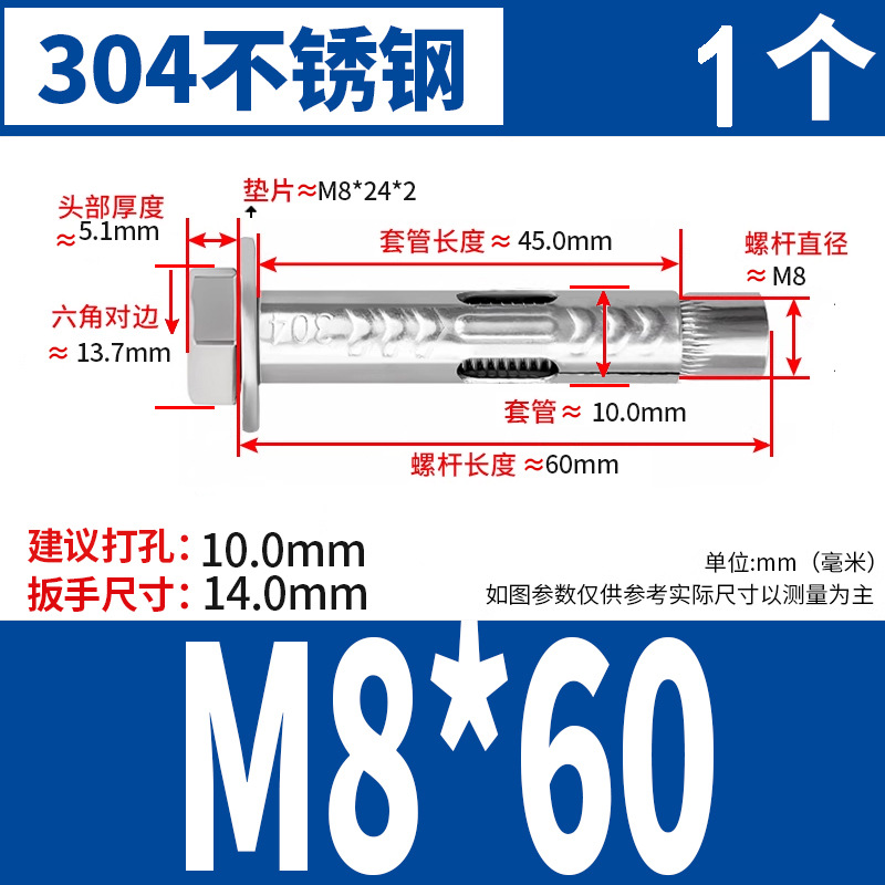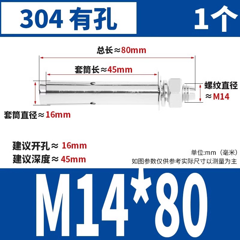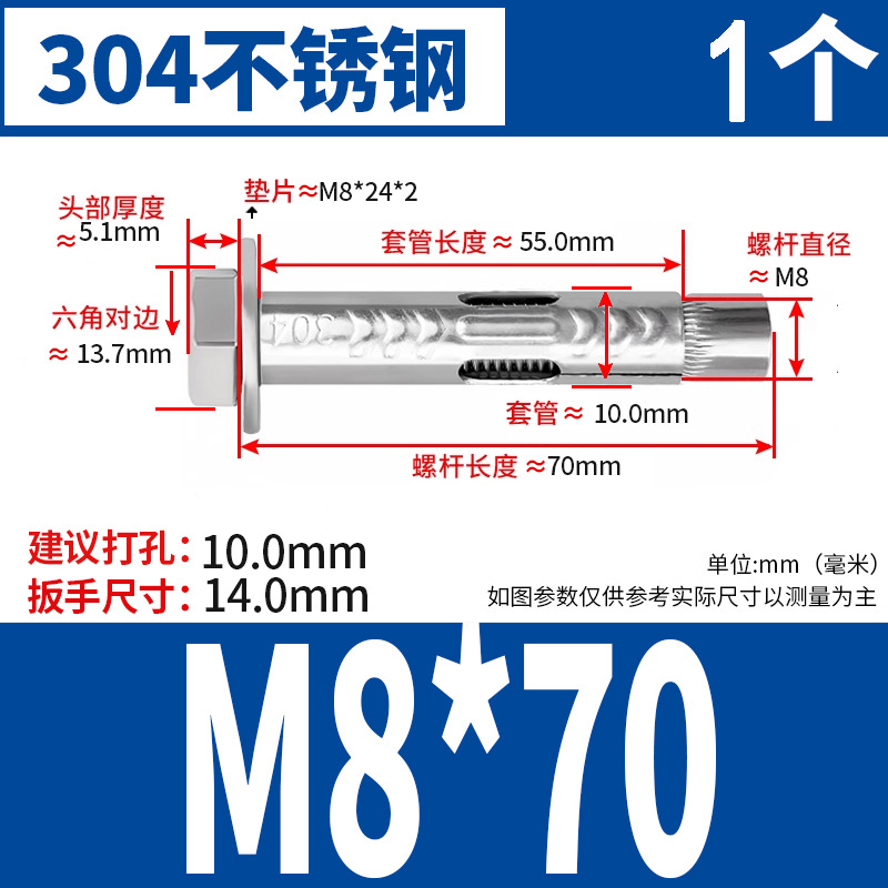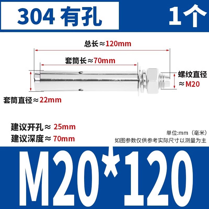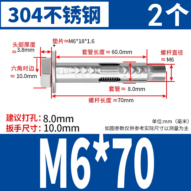 • 외부 육각형 파란색과 흰색 아연 확장 M8*70 [2개] 드릴링은 10mm입니다.