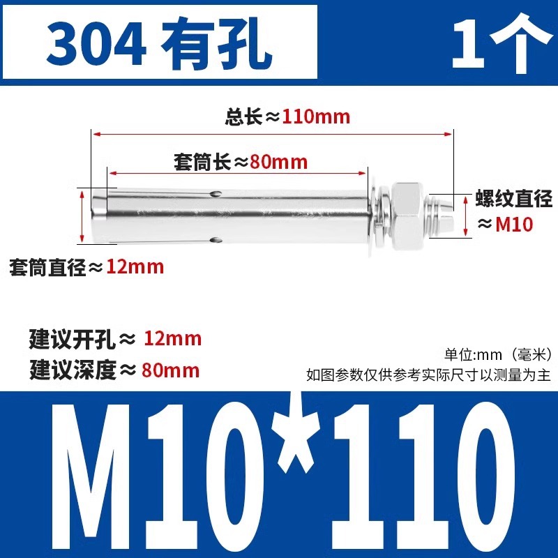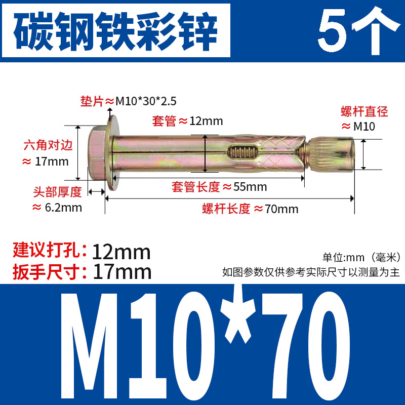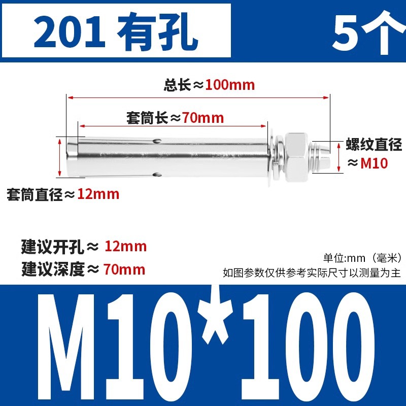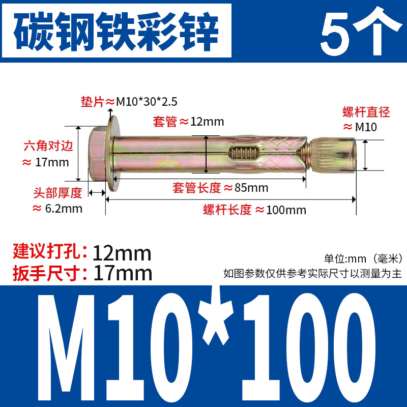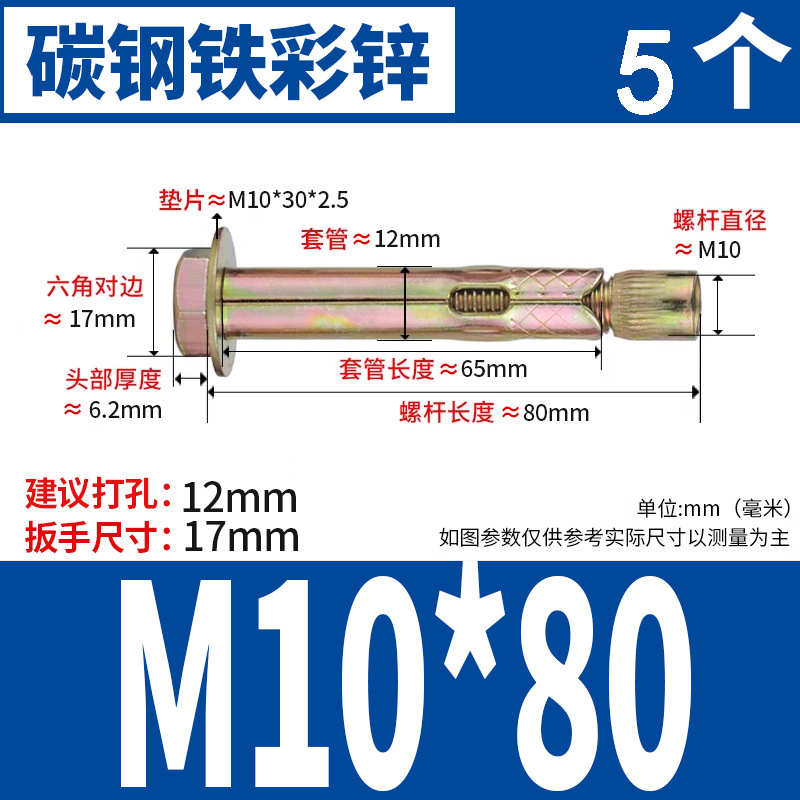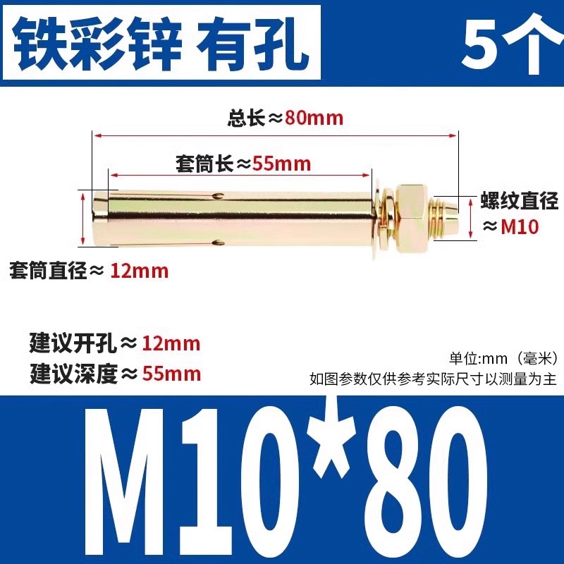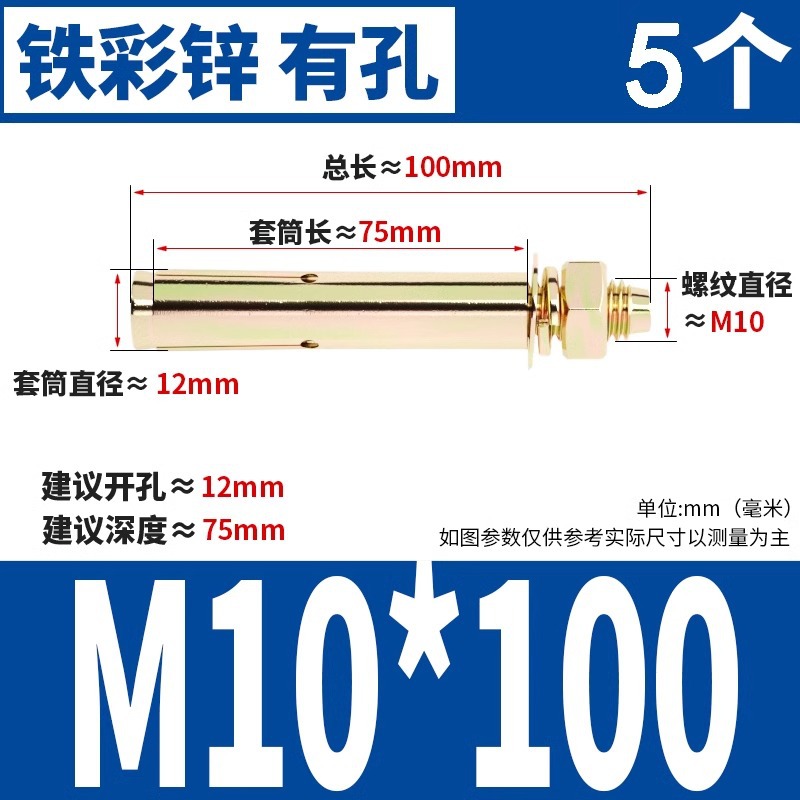 • 외부 육각형 파란색과 흰색 아연 확장 M10*80 [5개] 드릴링은 12mm입니다.