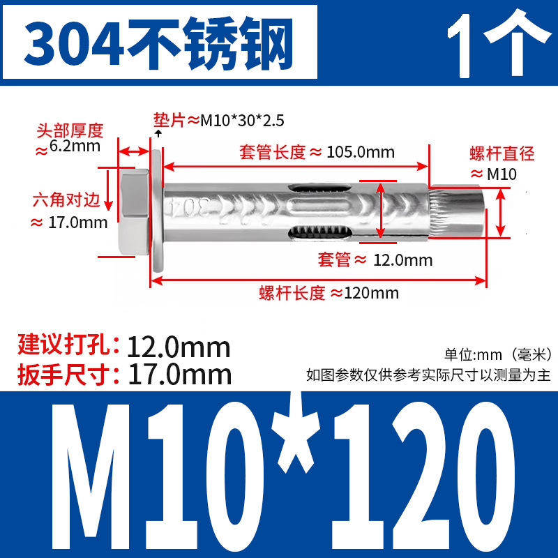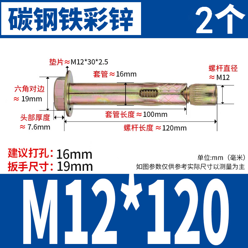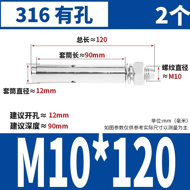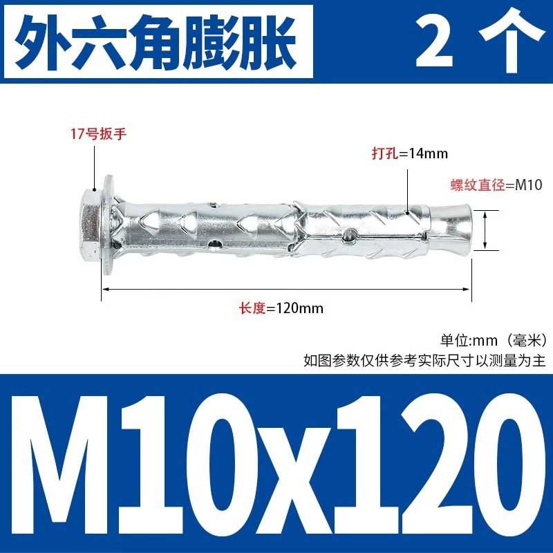 • 외부 육각형 파란색과 흰색 아연 확장 M10*120 [2개] 드릴링은 12mm입니다.