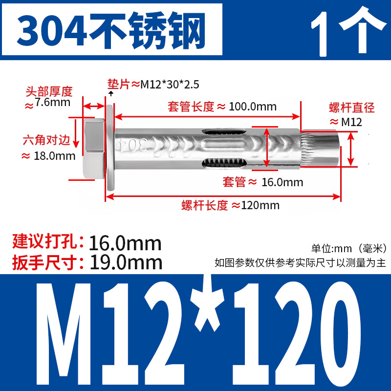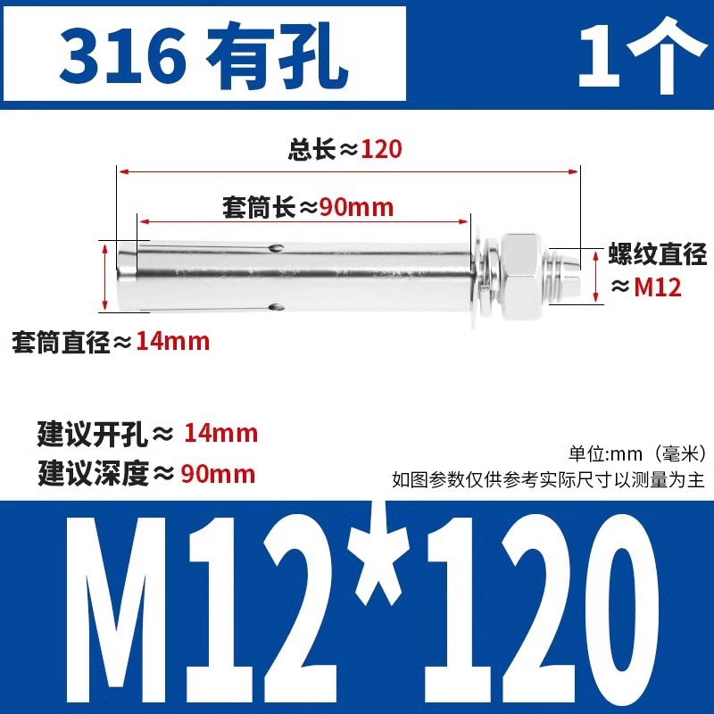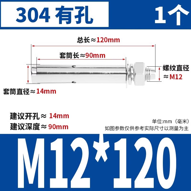 • M12*120 [304 스테인레스 스틸-1개] 드릴링은 16mm입니다.