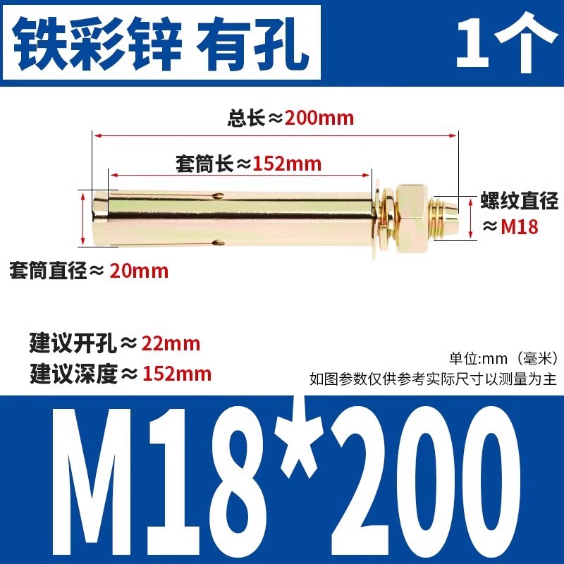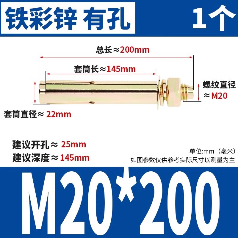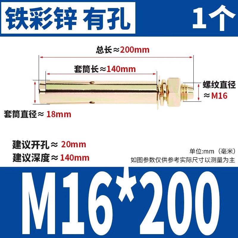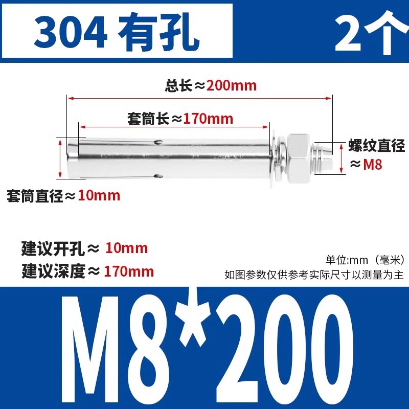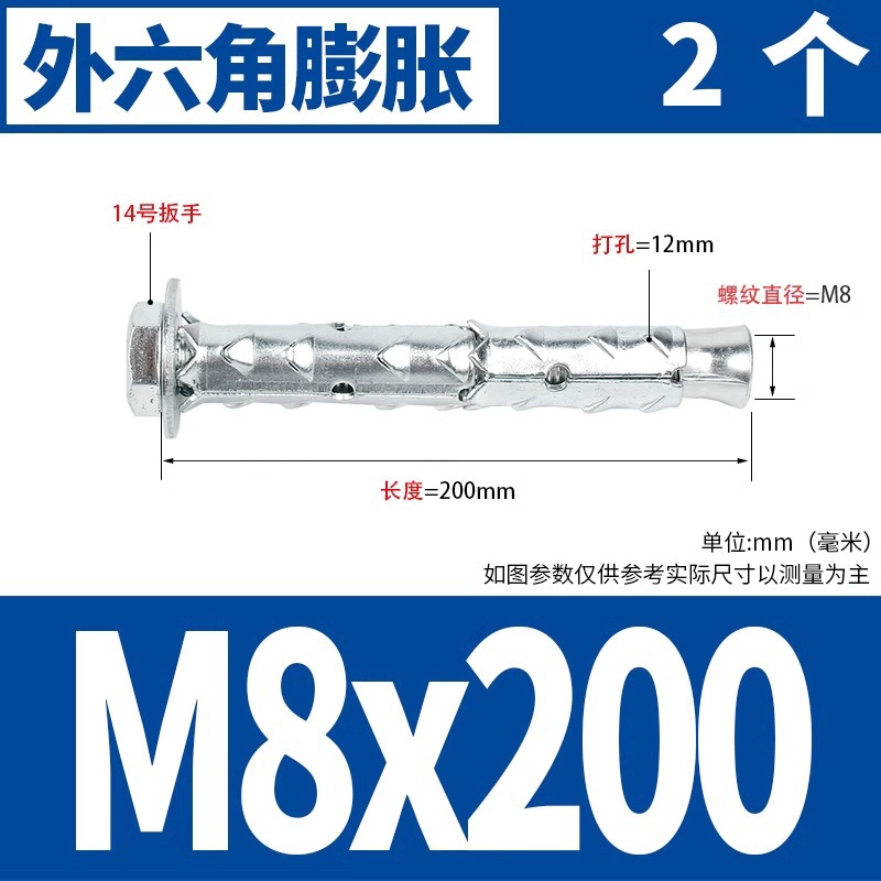 • 외부 육각형 파란색과 흰색 아연 확장 M8*200 [2개] 드릴링은 10mm입니다.