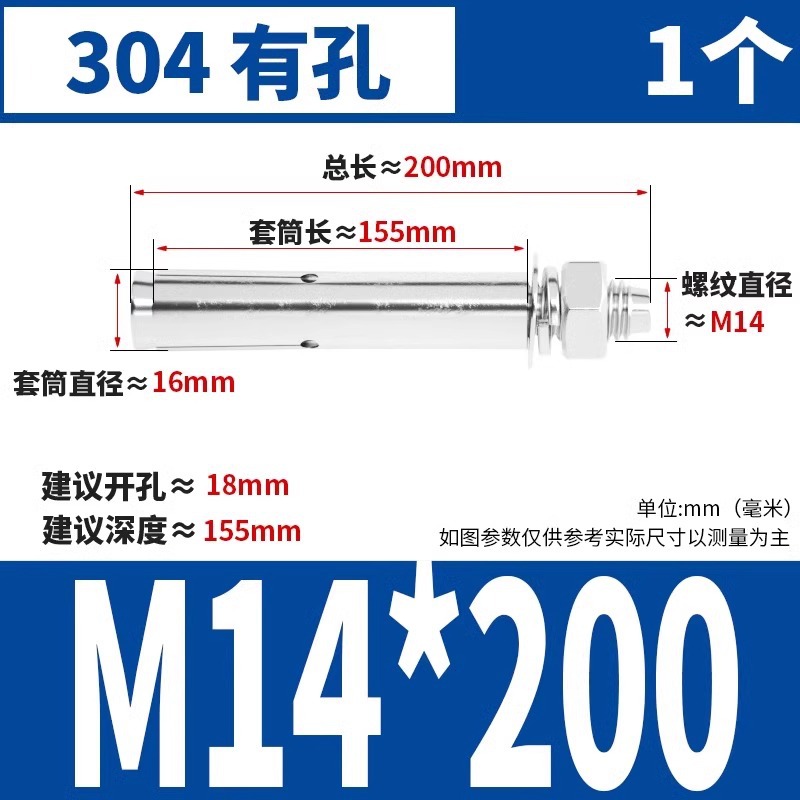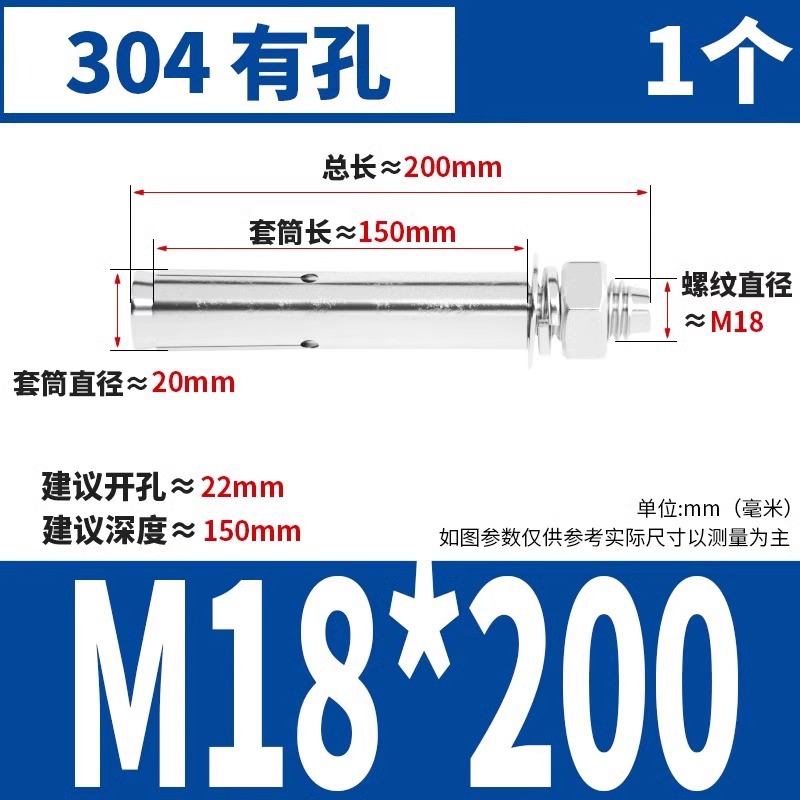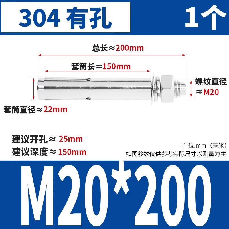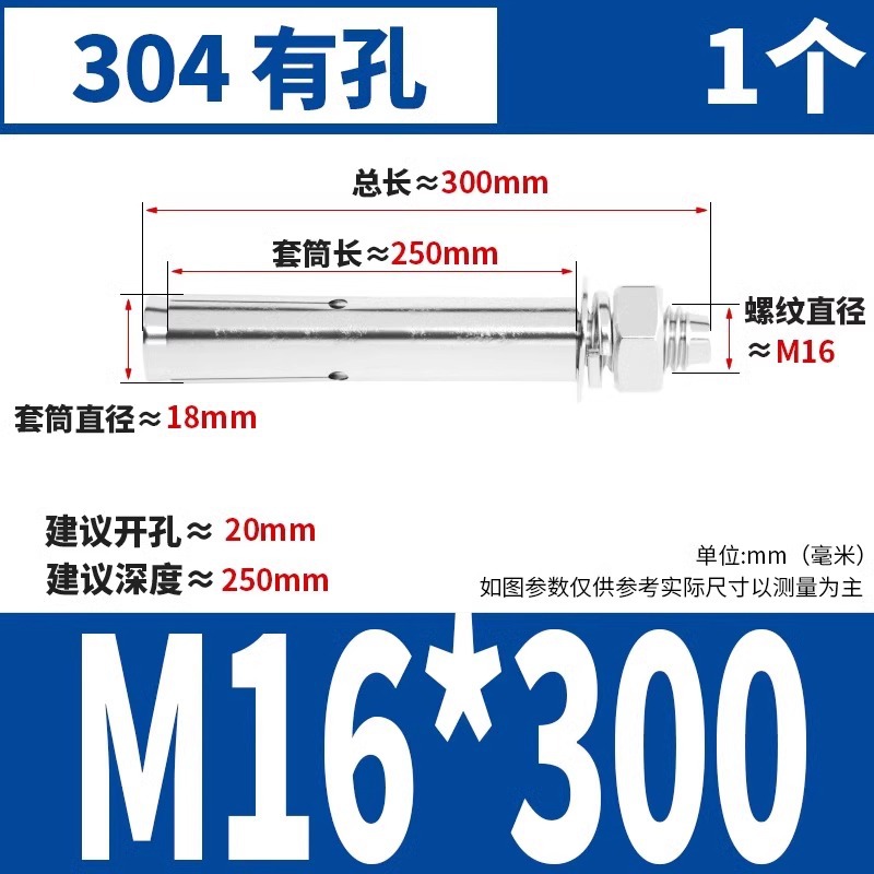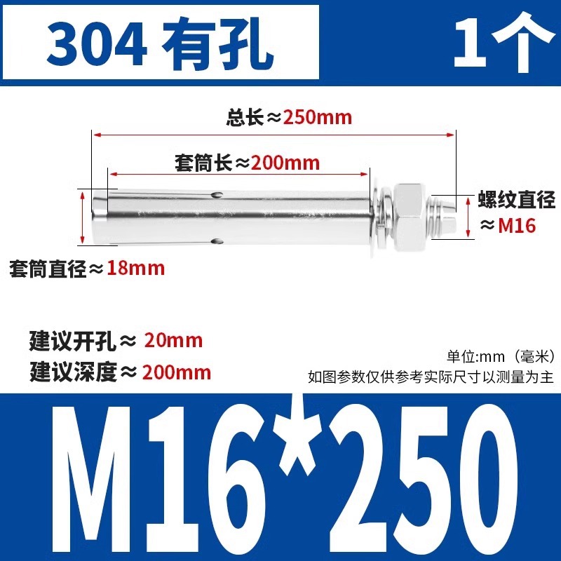 • 외부 육각형 파란색과 흰색 아연 확장 M8*200 [2개] 드릴링은 10mm입니다.