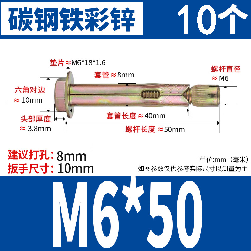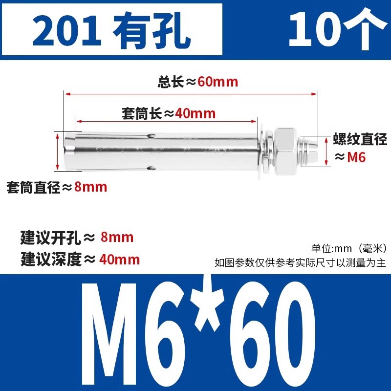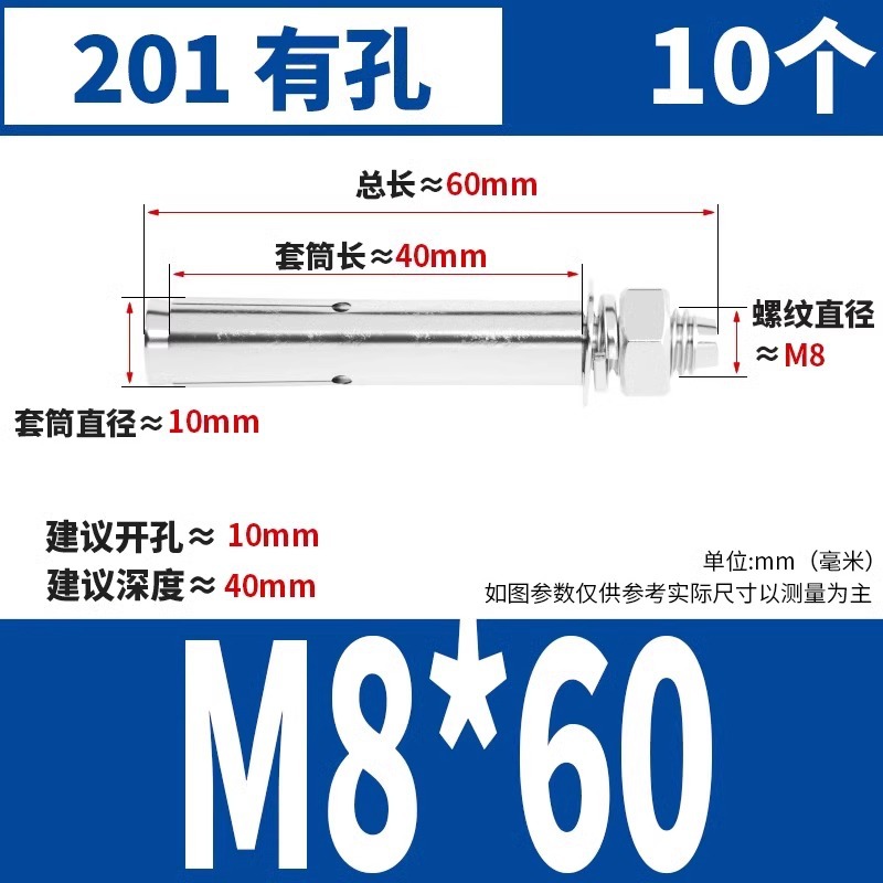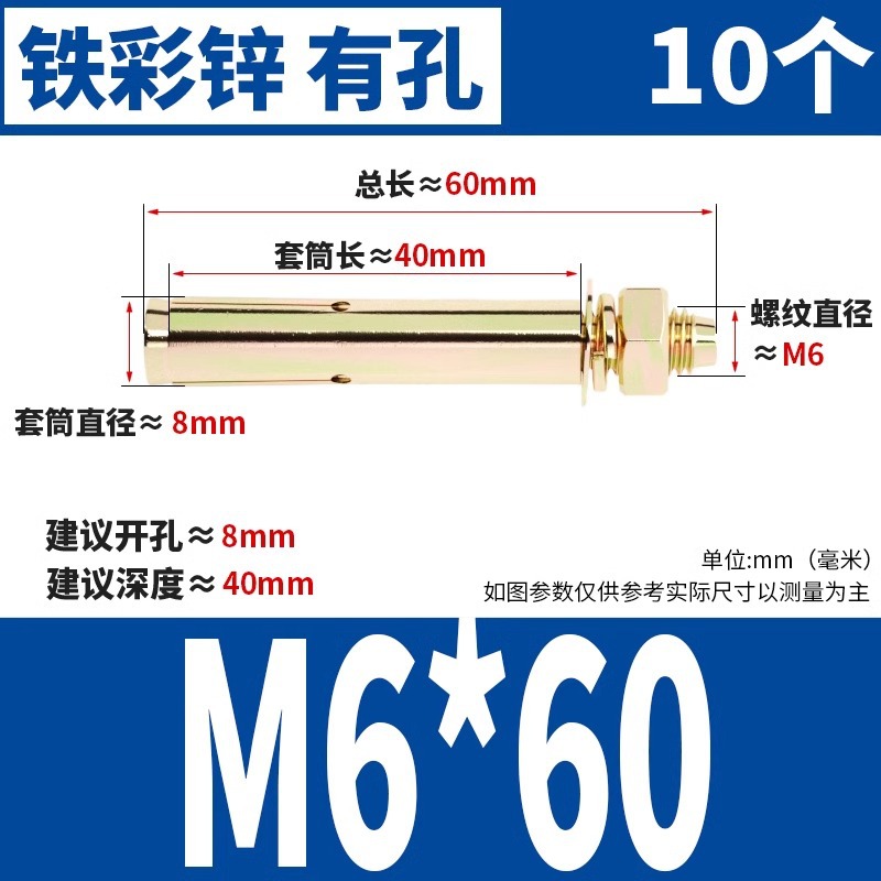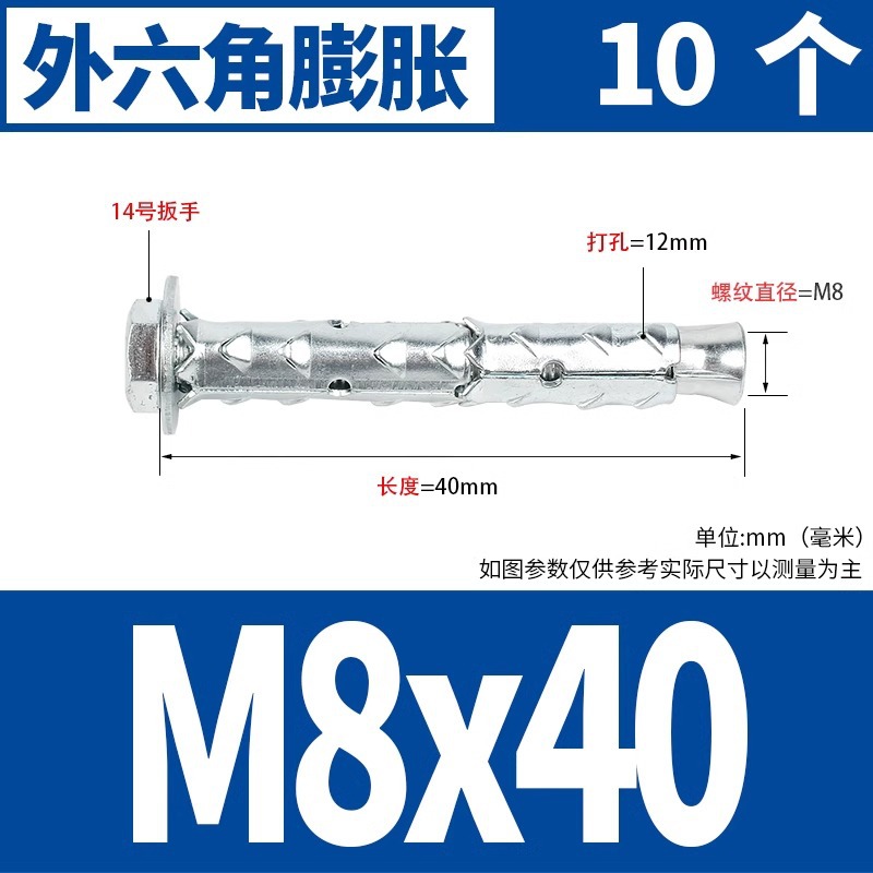 • 외부 육각형 파란색과 흰색 아연 확장 M8*40 [10개] 드릴링은 10mm입니다.