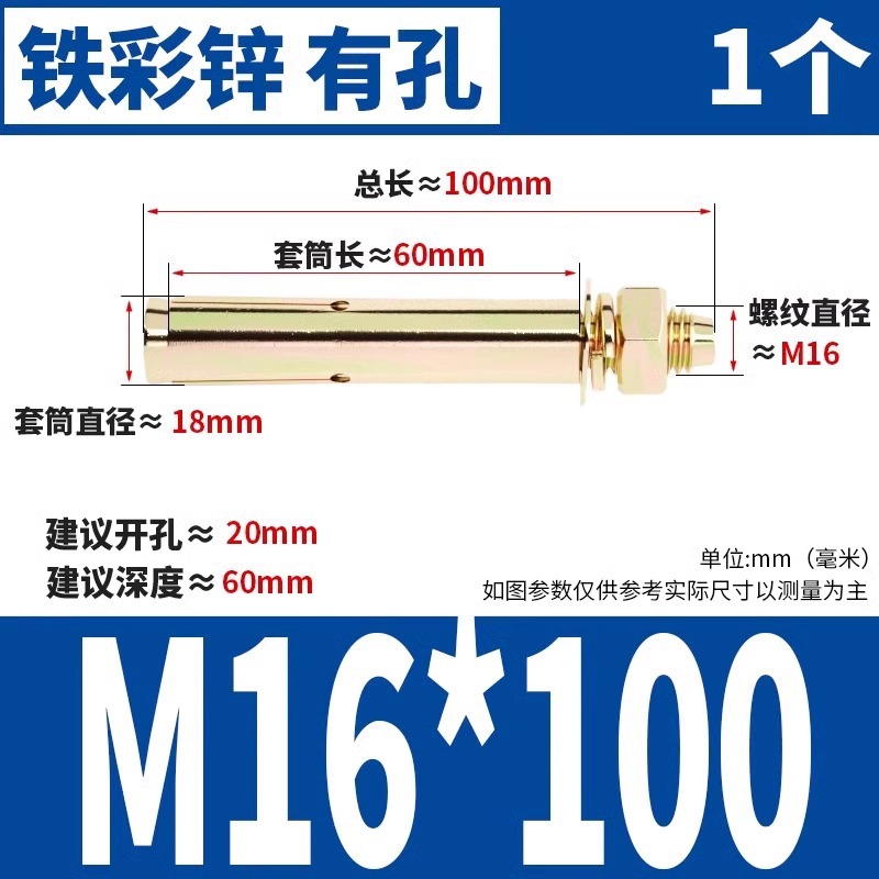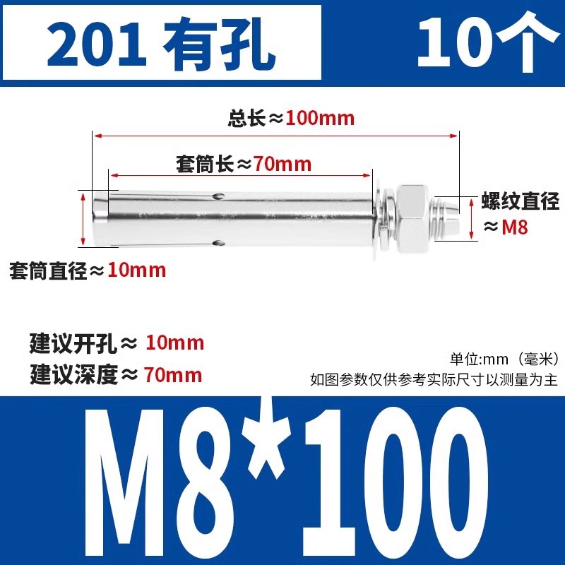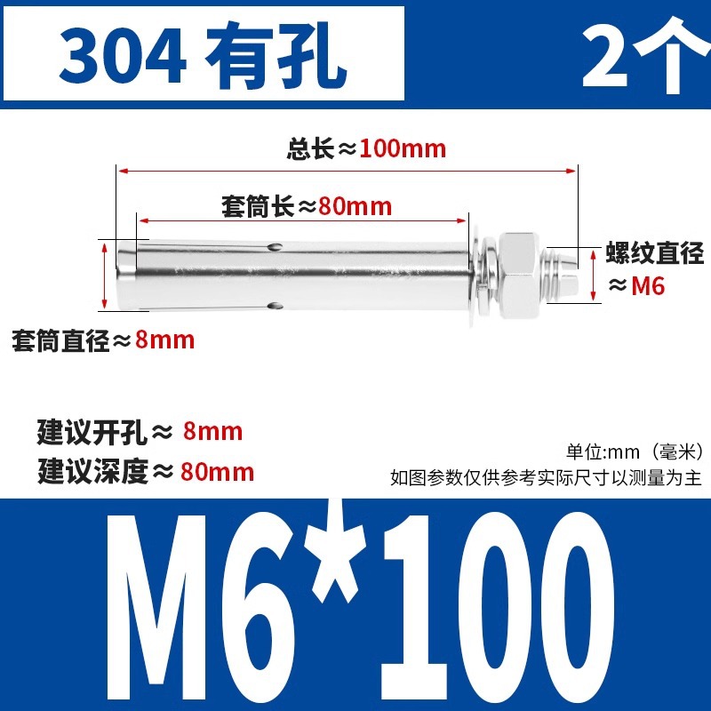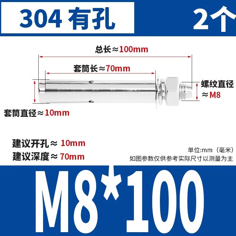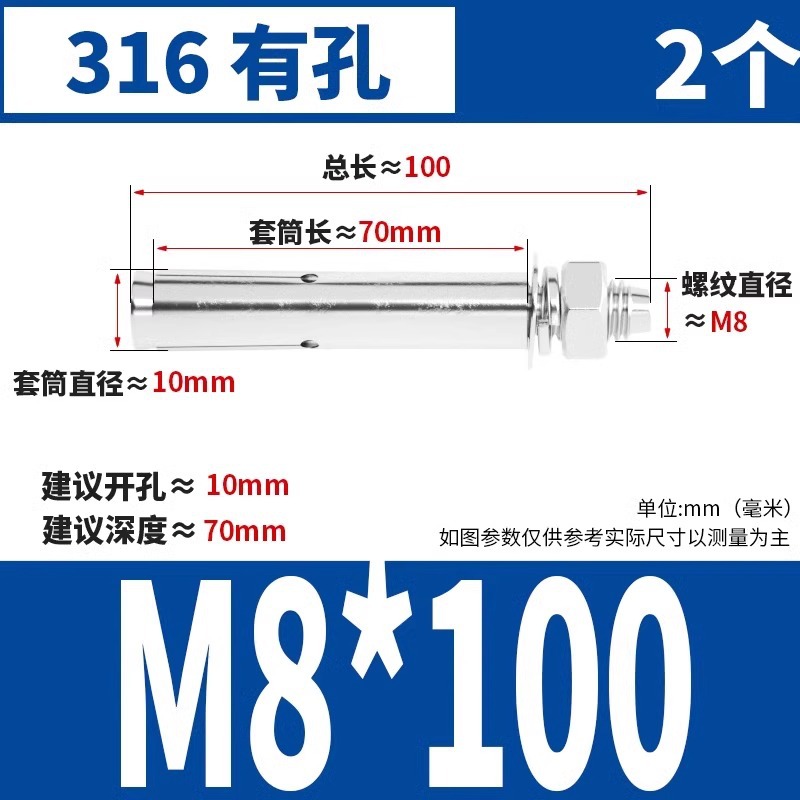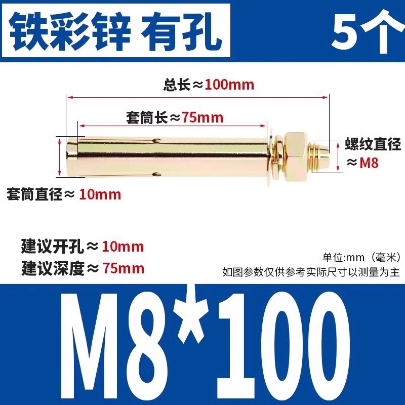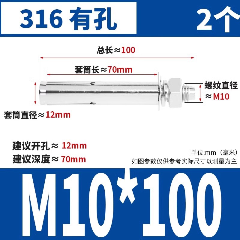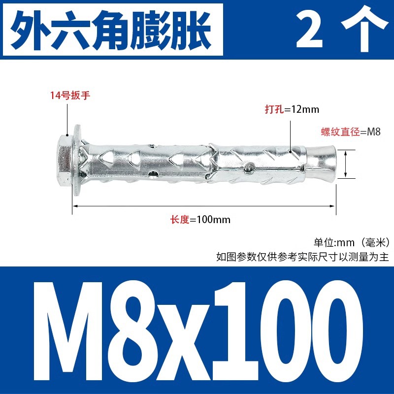 • 외부 육각형 파란색과 흰색 아연 확장 M8*100 [2개] 드릴링은 10mm입니다.