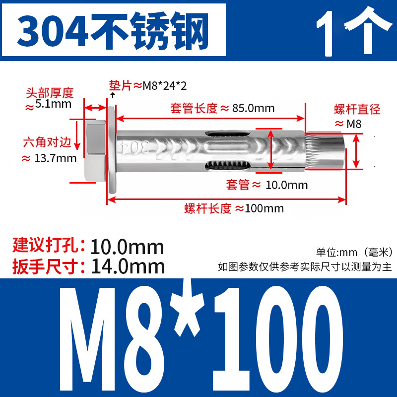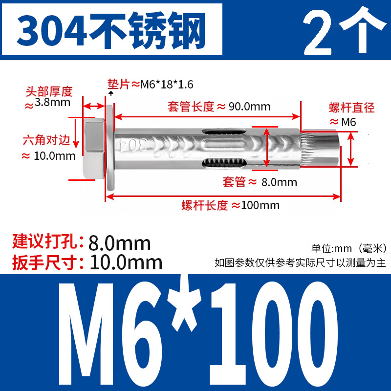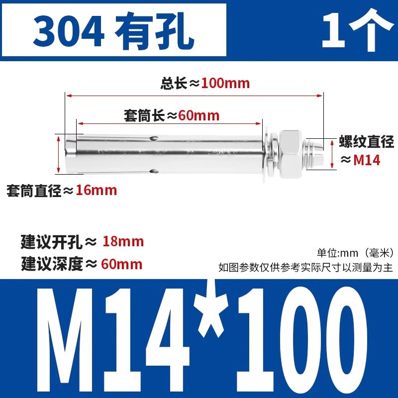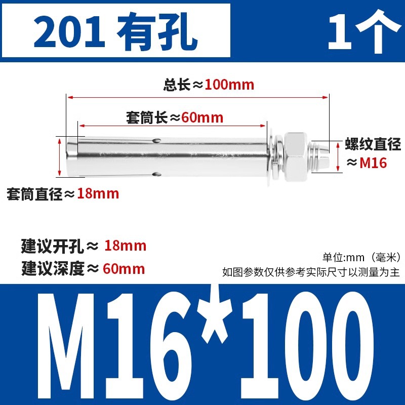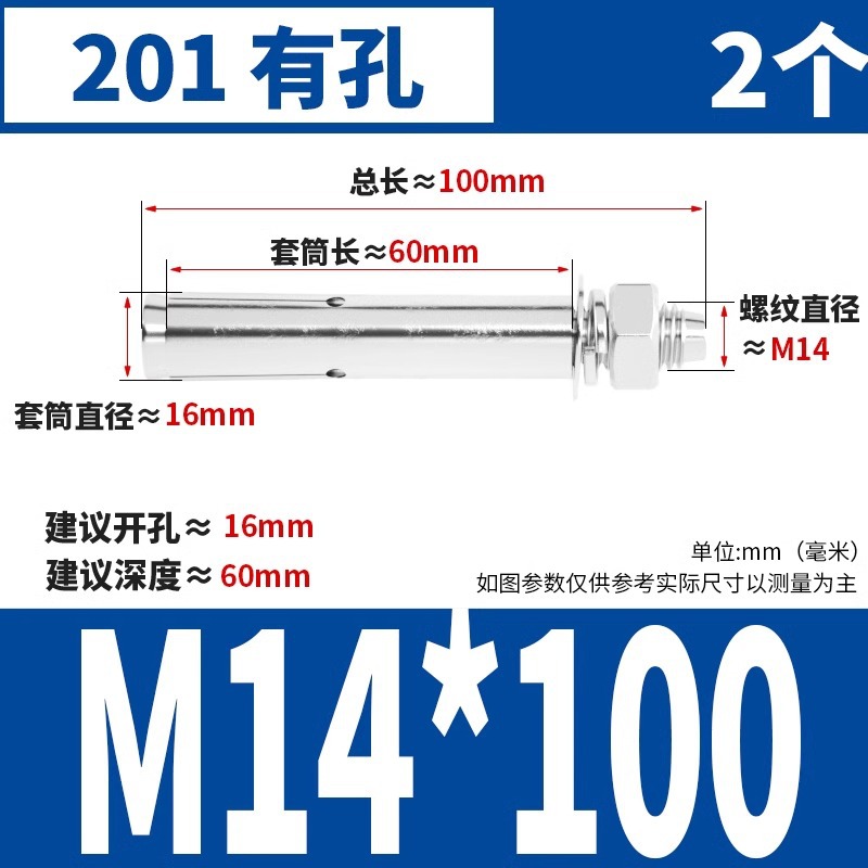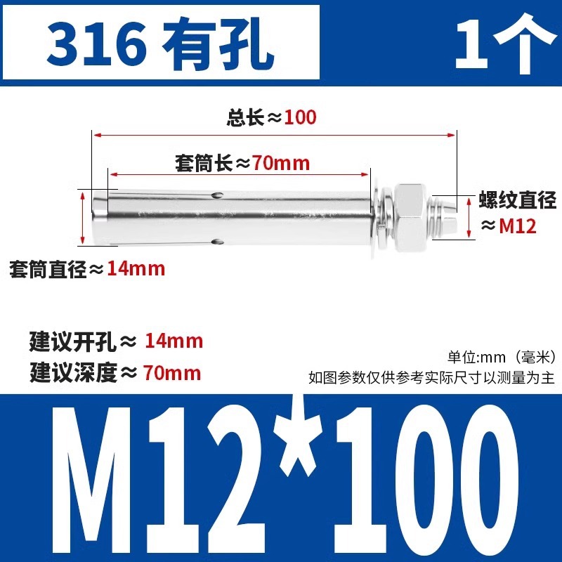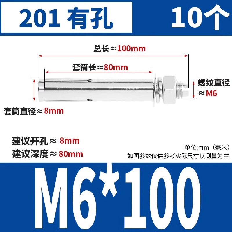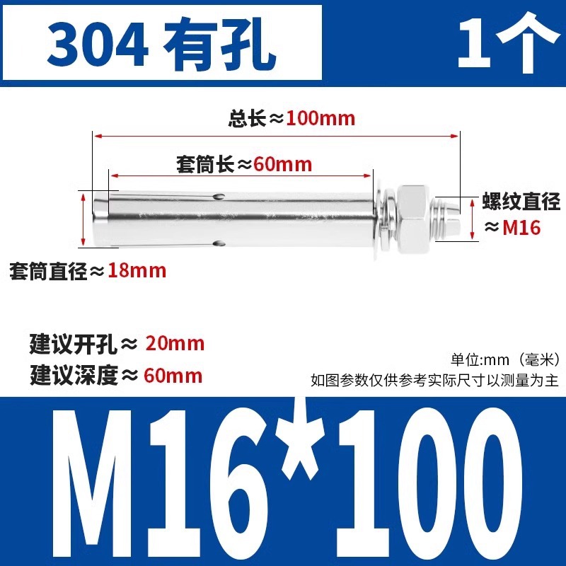 • 외부 육각형 파란색과 흰색 아연 확장 M8*100 [2개] 드릴링은 10mm입니다.
