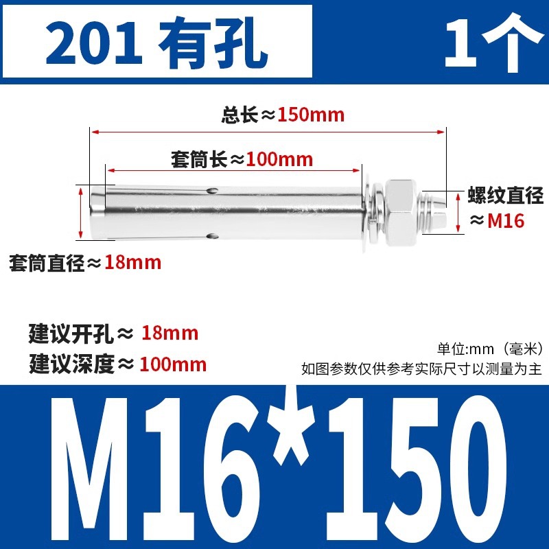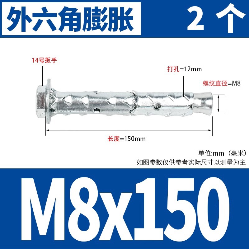 • 외부 육각형 파란색과 흰색 아연 확장 M8*150 [2개] 드릴링은 10mm입니다.