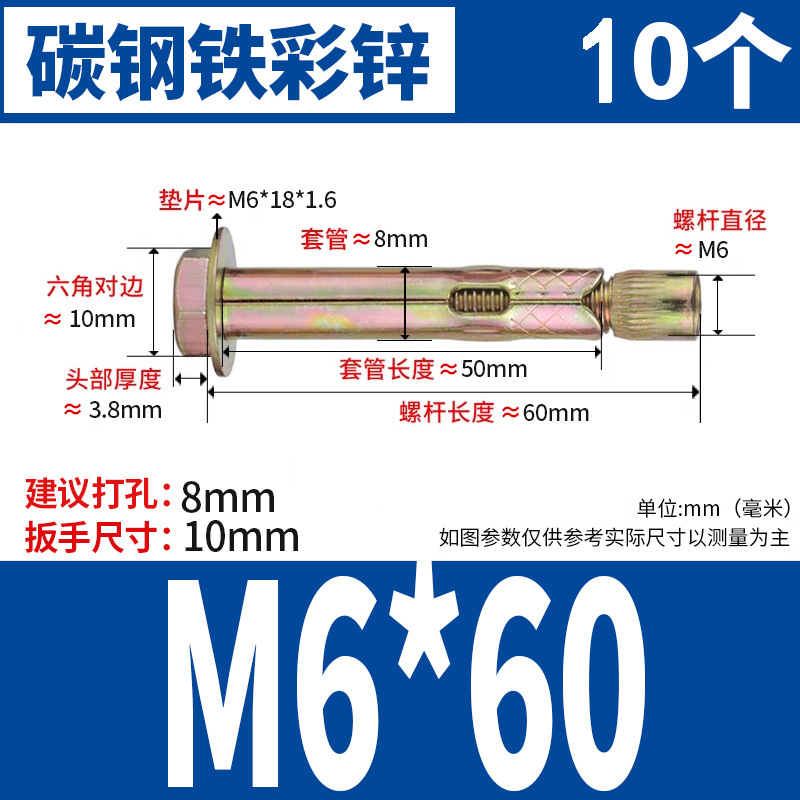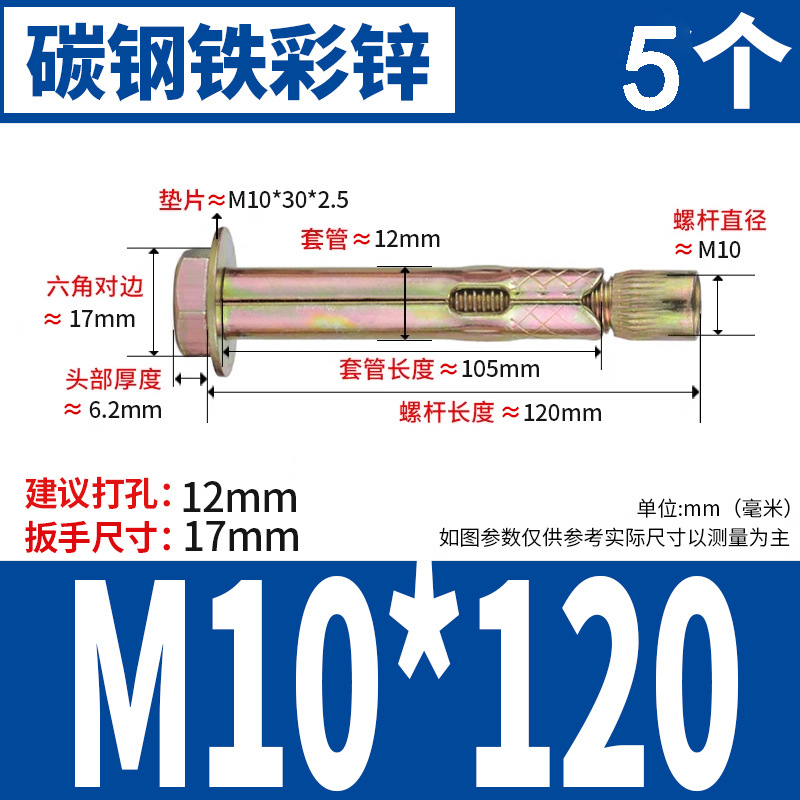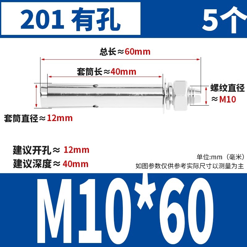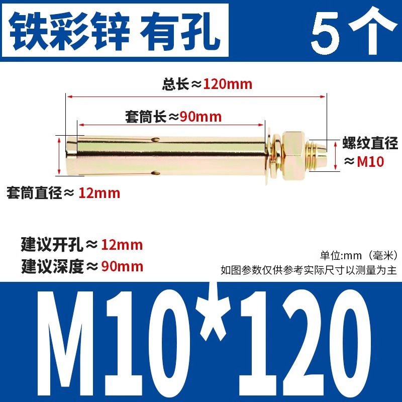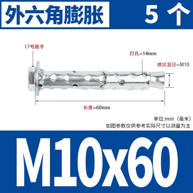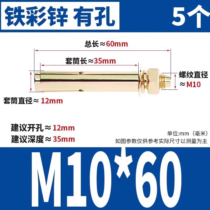• 외부 육각형 파란색과 흰색 아연 확장 M10*60 [5개] 드릴링은 12mm입니다.