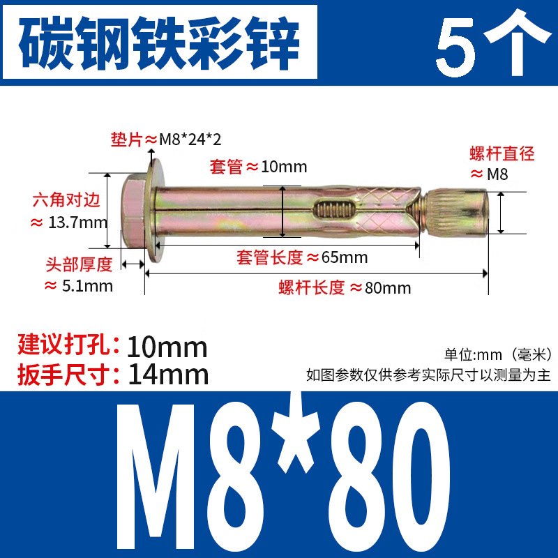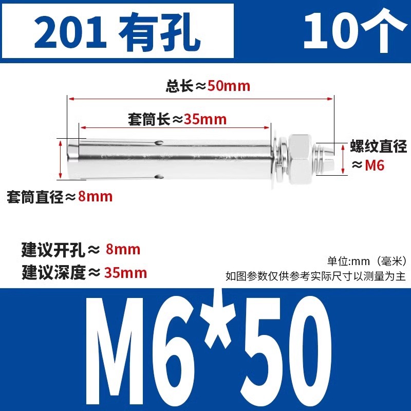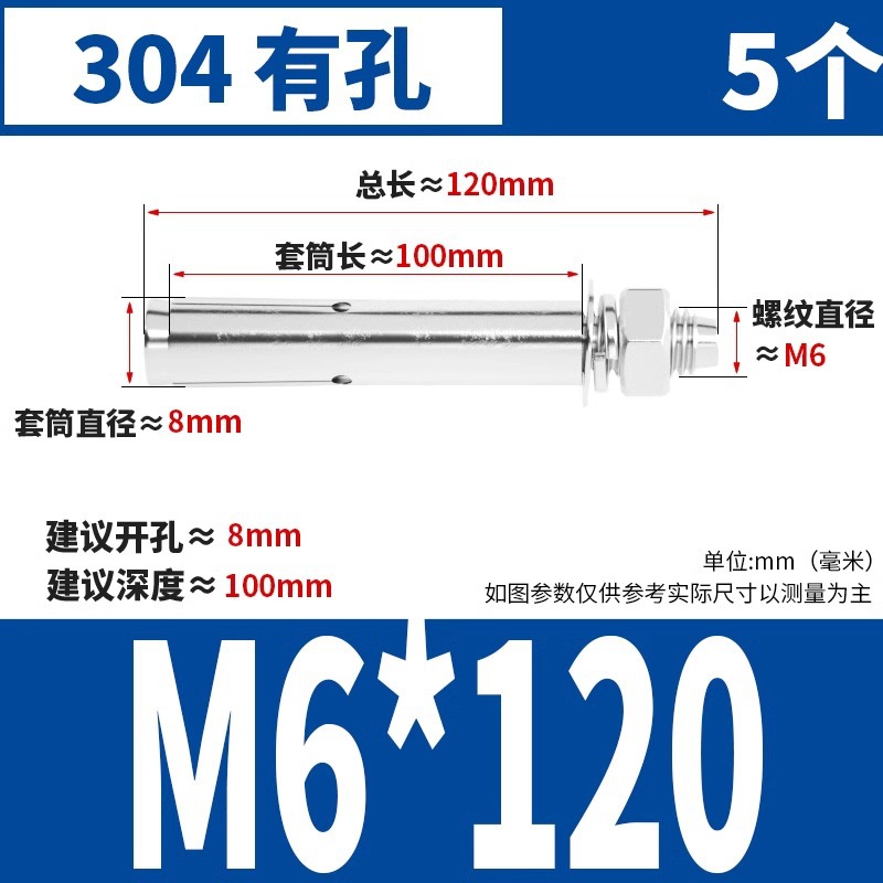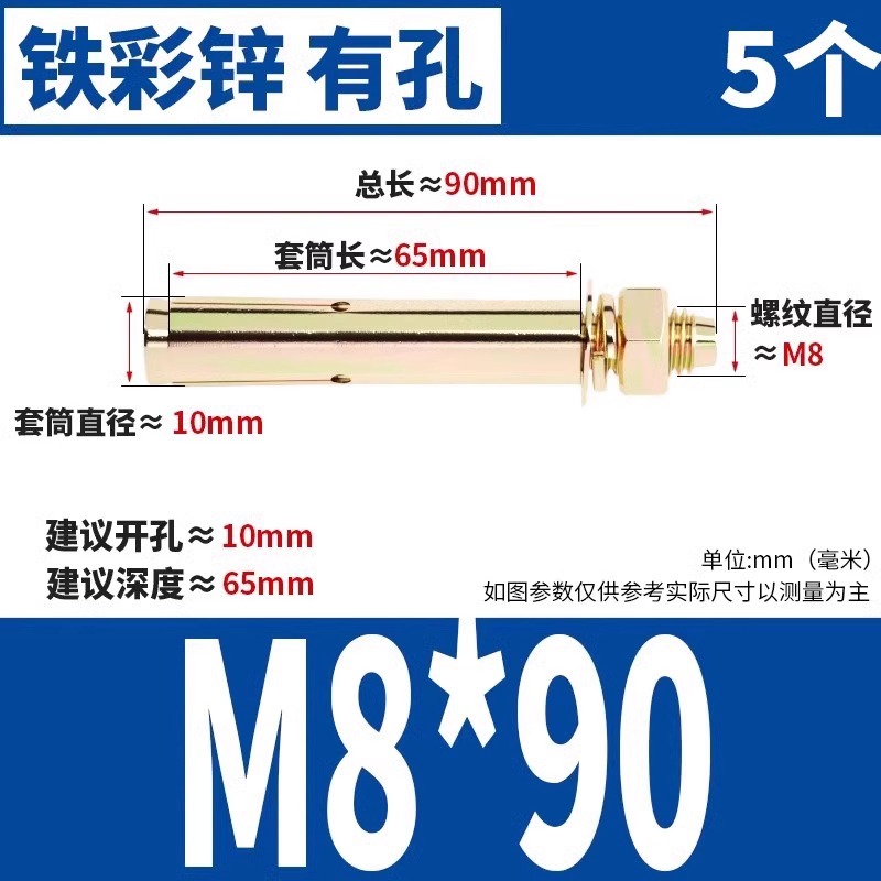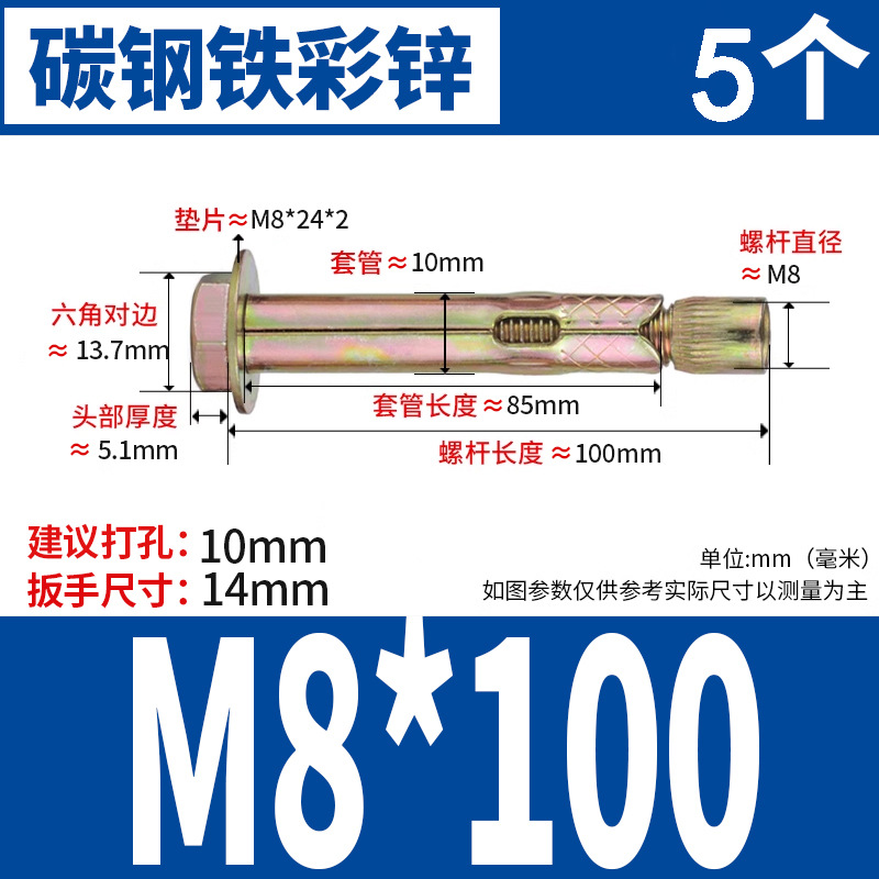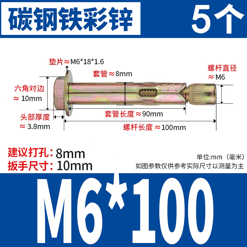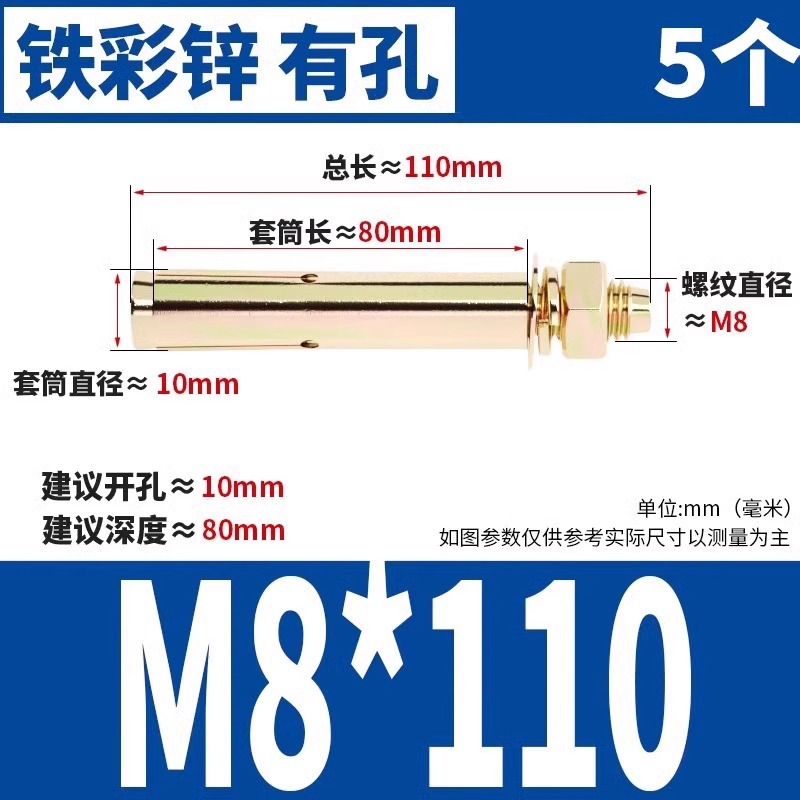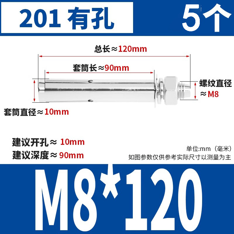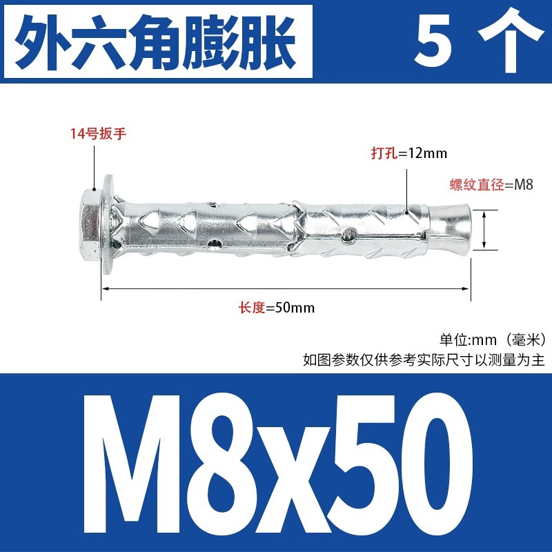 • 외부 육각형 파란색과 흰색 아연 확장 M8*50 [5개] 드릴링은 10mm입니다.
