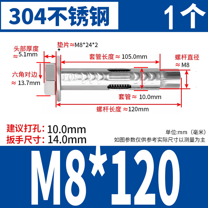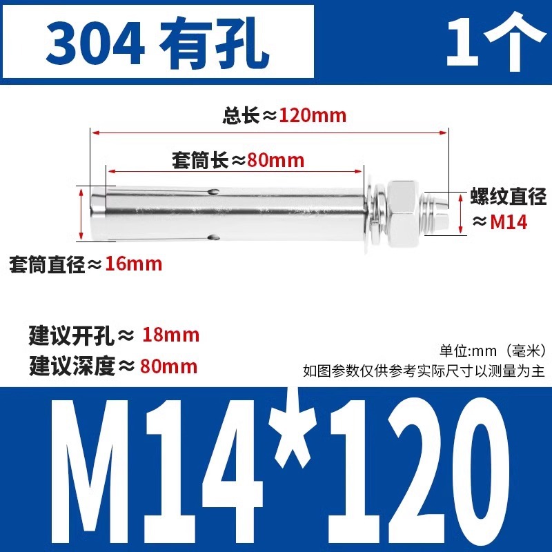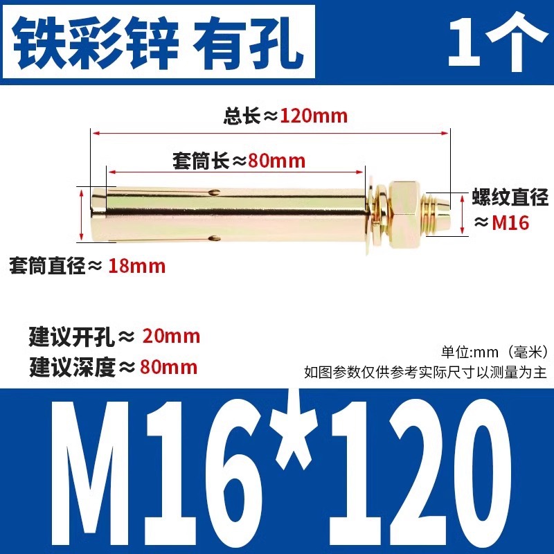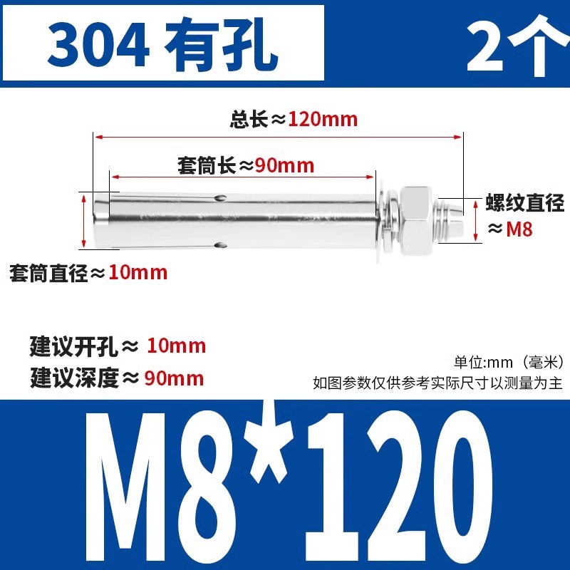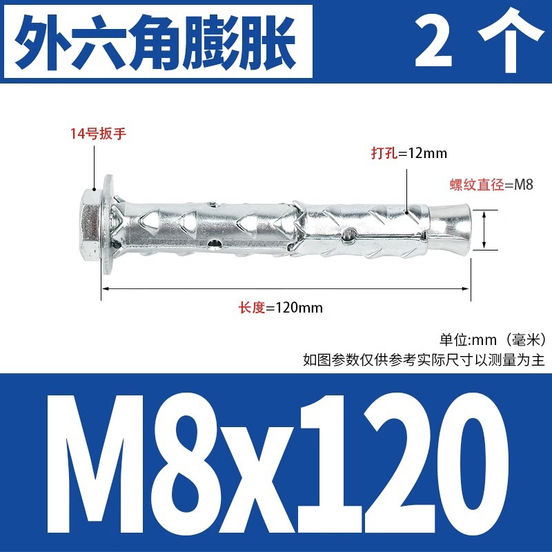 • 외부 육각형 파란색과 흰색 아연 확장 M8*120 [2개] 드릴링은 10mm입니다.