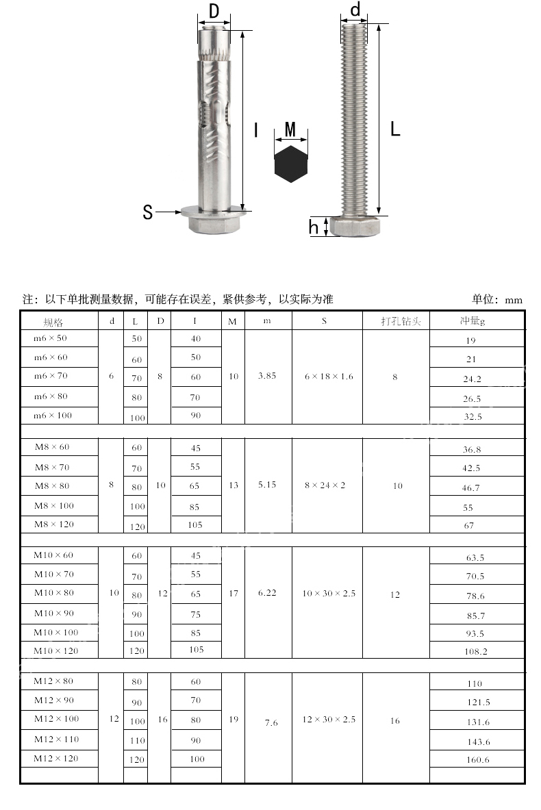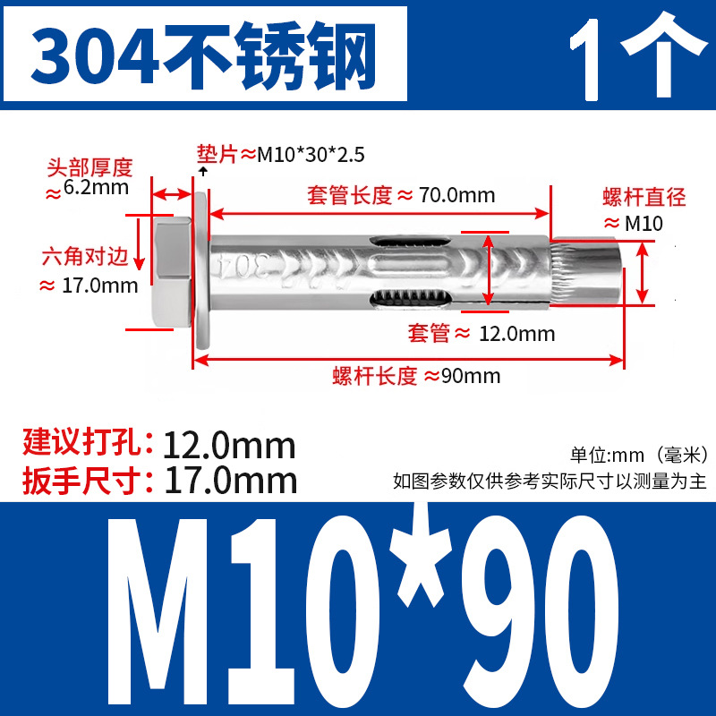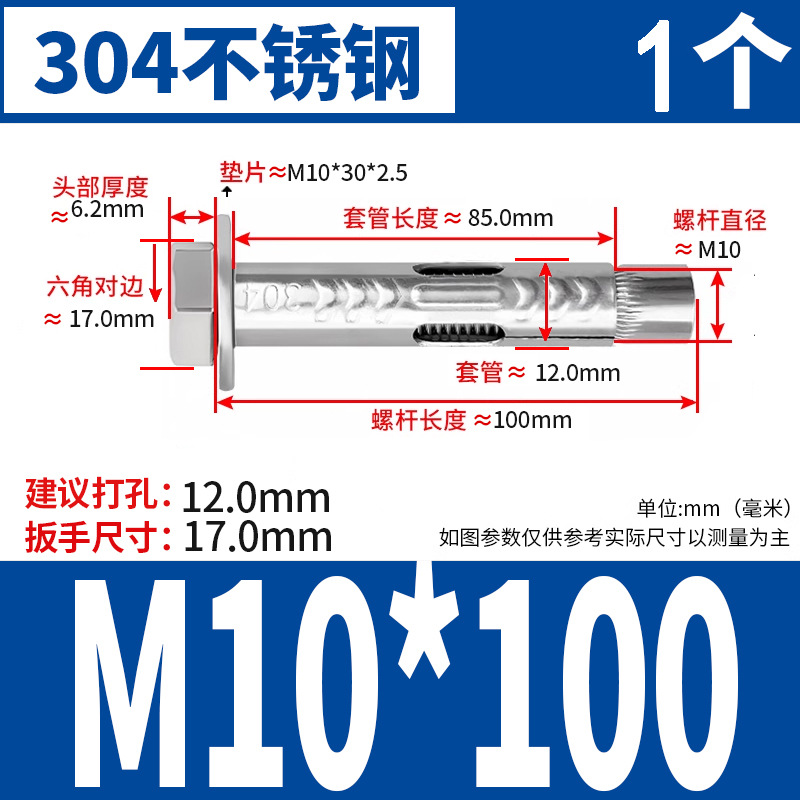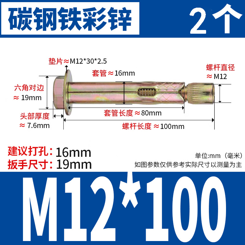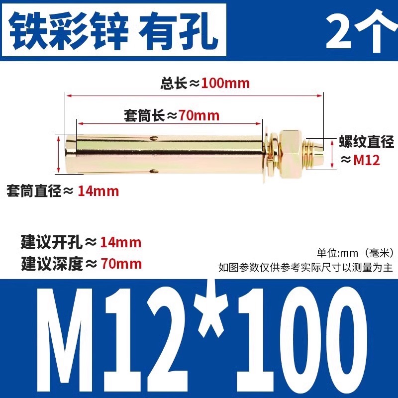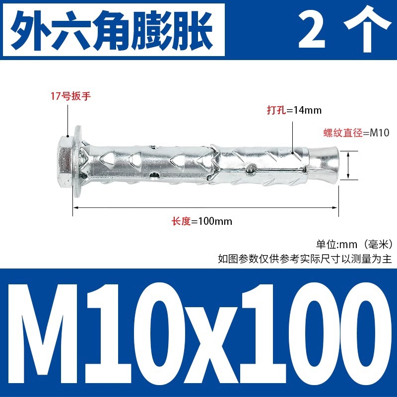 • 외부 육각형 파란색과 흰색 아연 확장 M10*100 [2개] 드릴링은 12mm입니다.