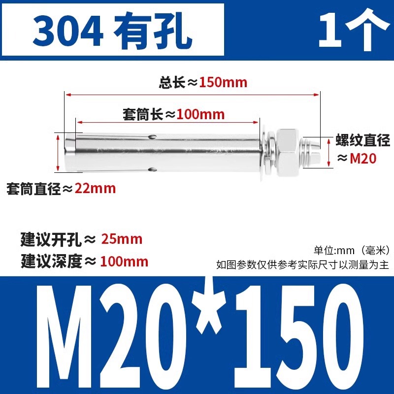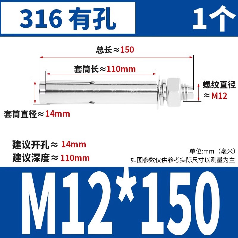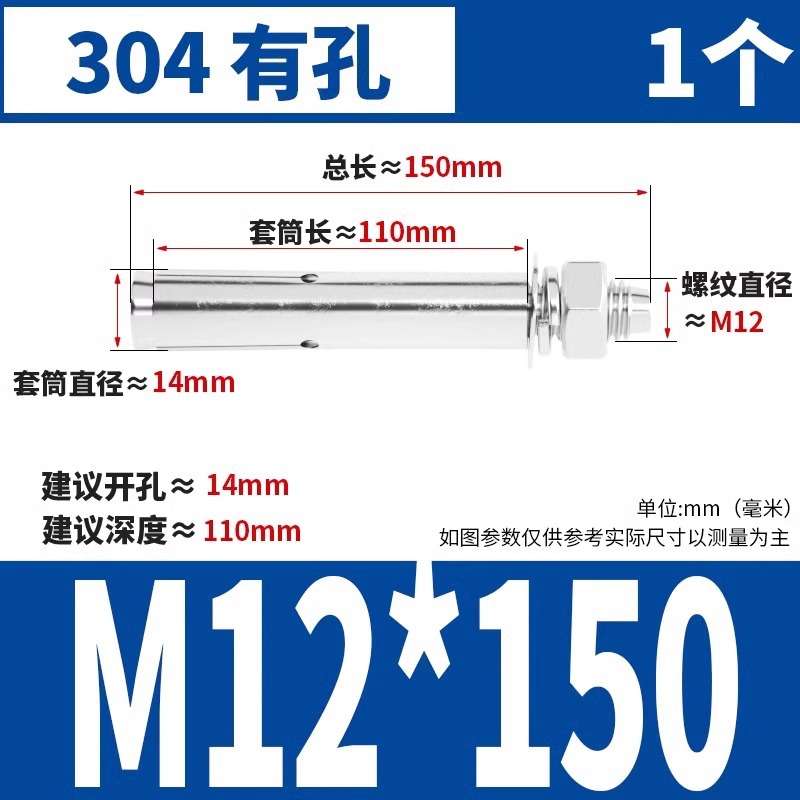 • M12*150 [304 스테인레스 스틸-1개] 드릴링은 16mm입니다.