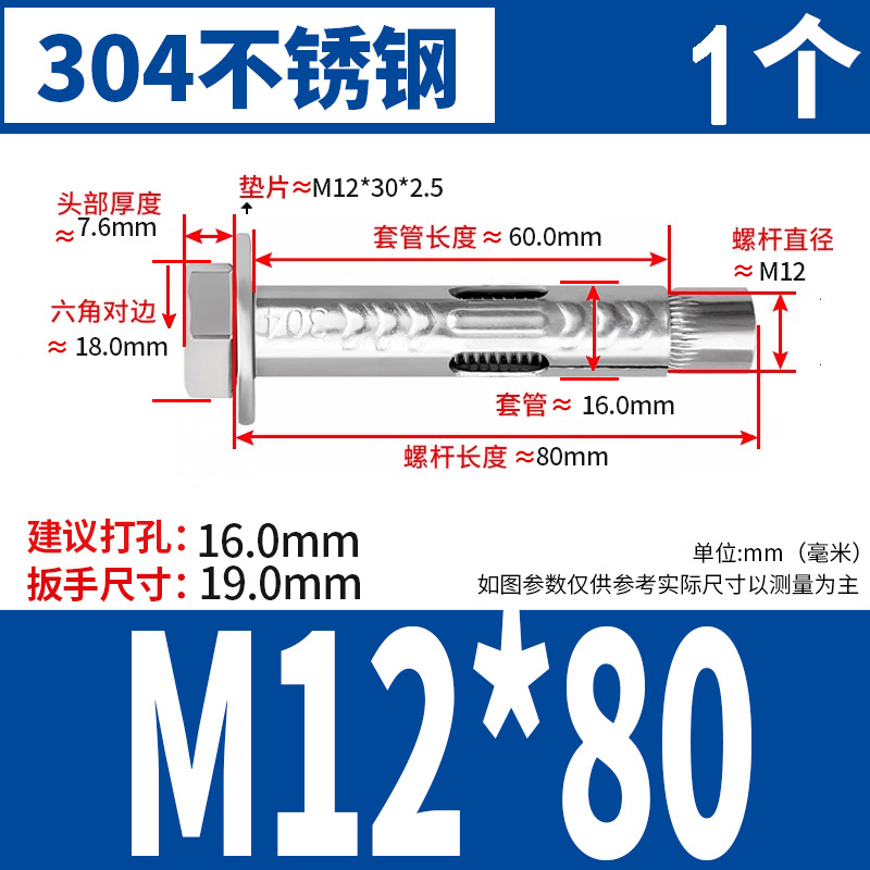 • M12*80 [304 스테인레스 스틸-1개] 드릴링은 16mm입니다.