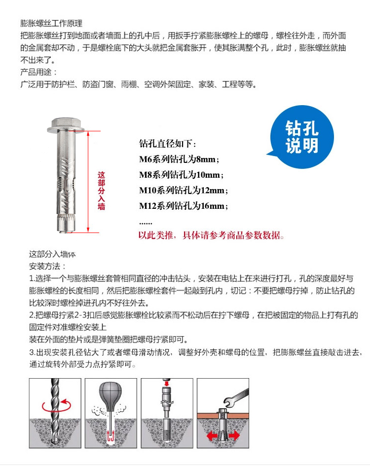 • ===[다음 사양은 유색 아연 인발 확장 나사입니다.]===