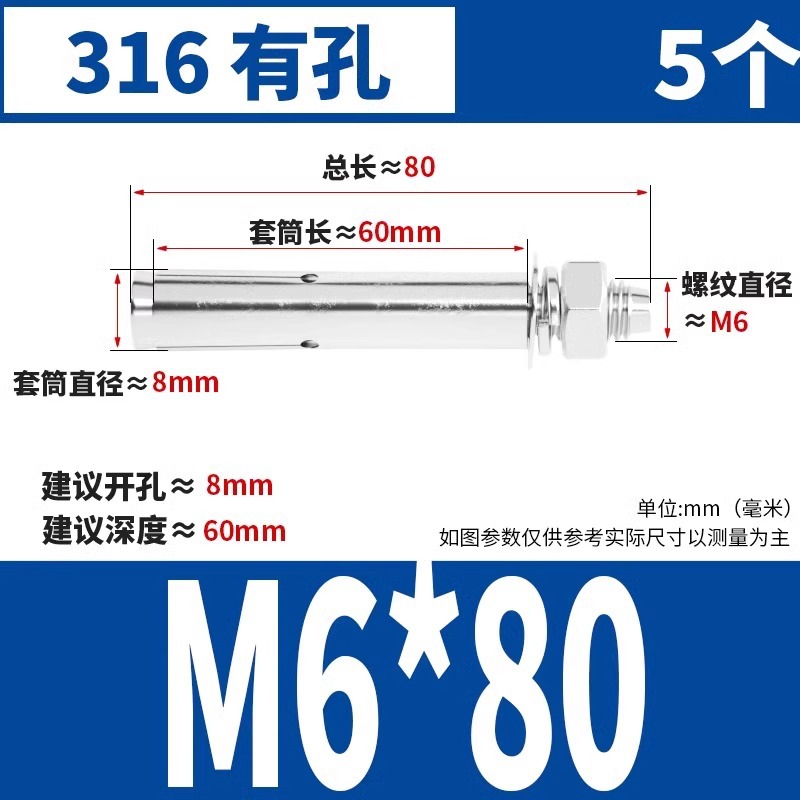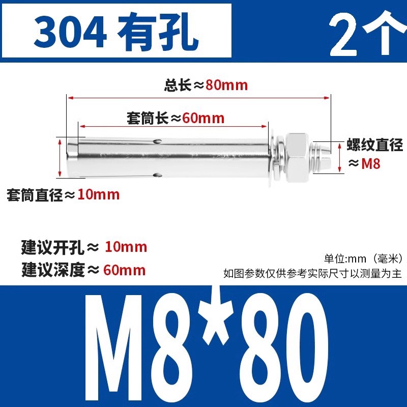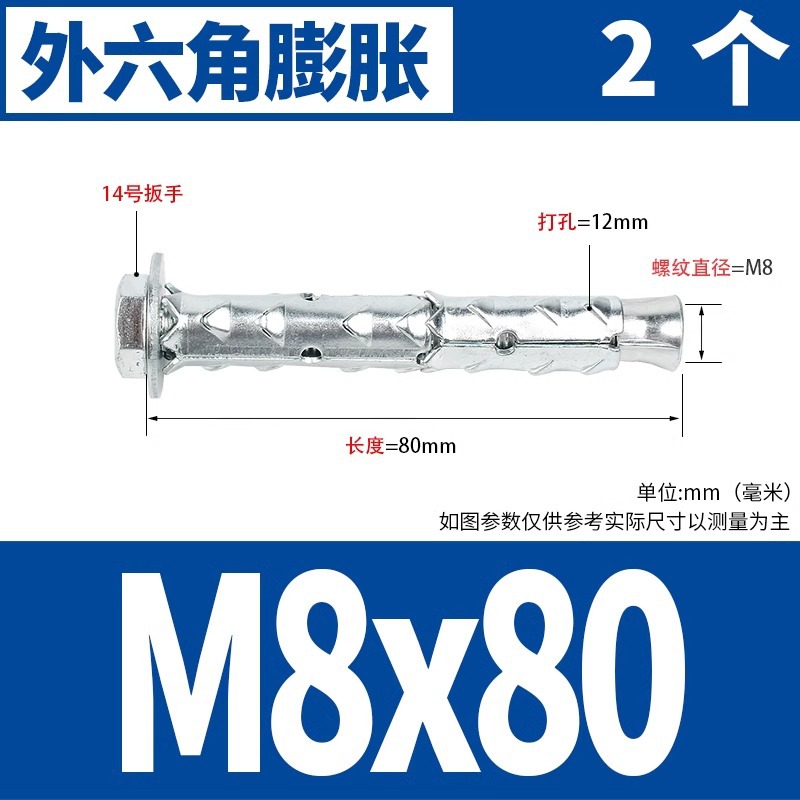 • 외부 육각형 파란색과 흰색 아연 확장 M8*80 [2개] 드릴링은 10mm입니다.