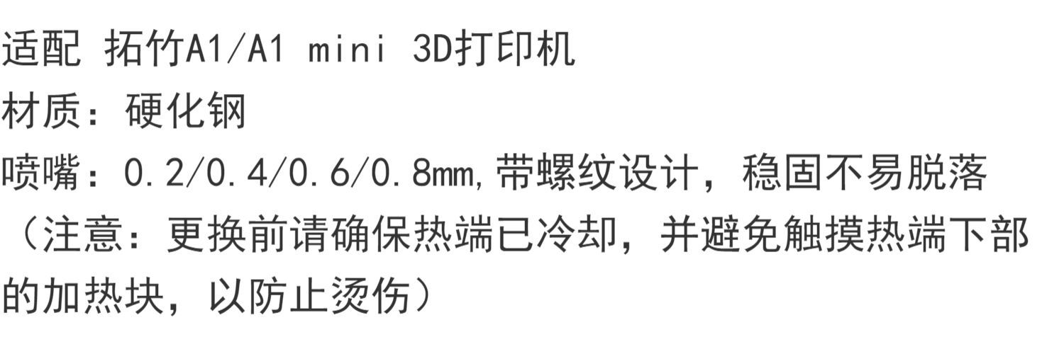• A1/A1mini 핫엔드(경화강 노즐 포함) 0.2mm(절연 슬리브 포함)