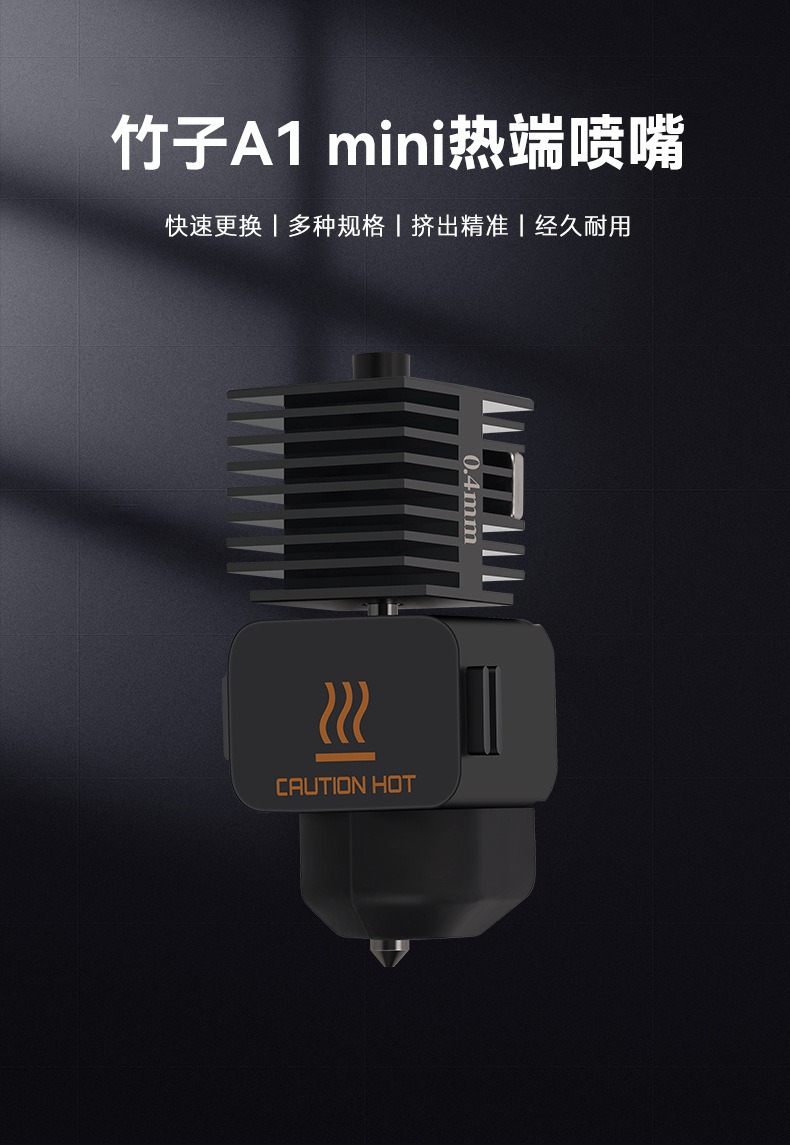 • 경화강 노즐 0.4mm가 포함된 A1/A1mini 핫엔드(절연 슬리브 포함)