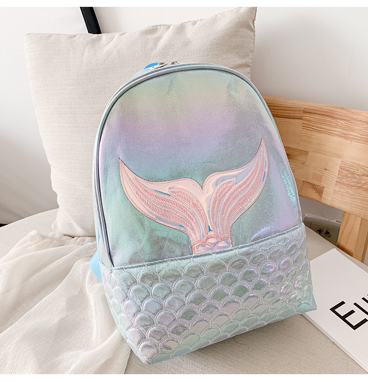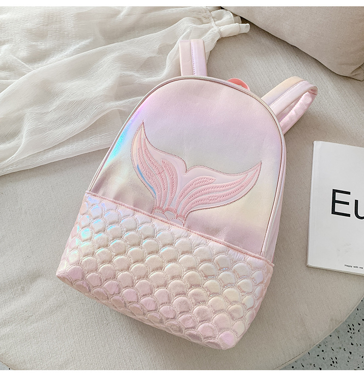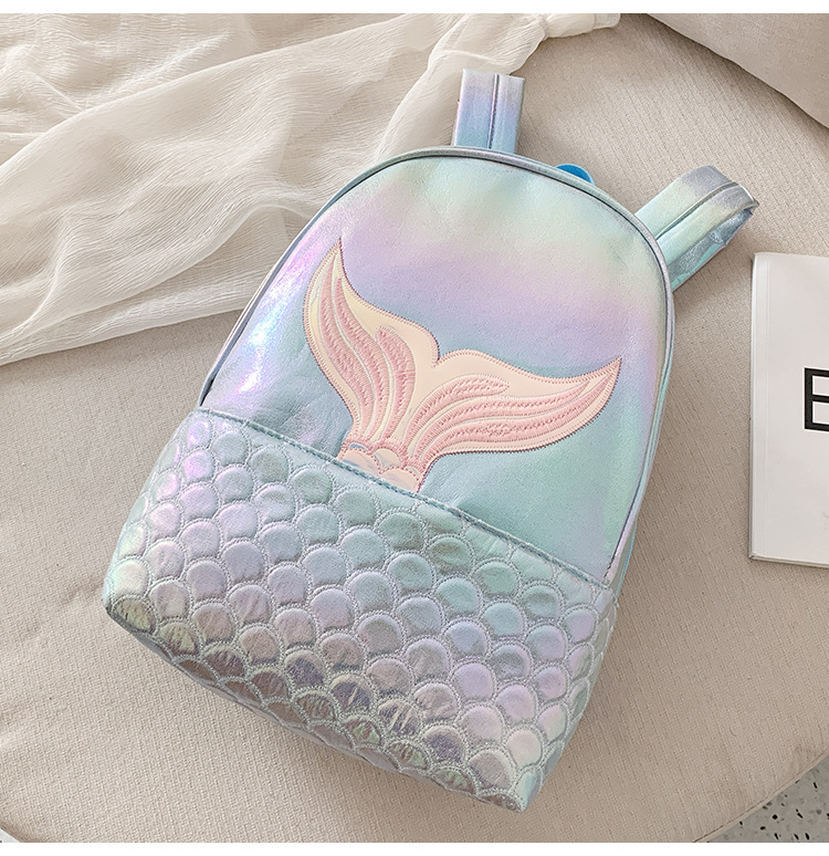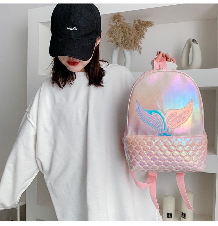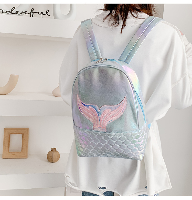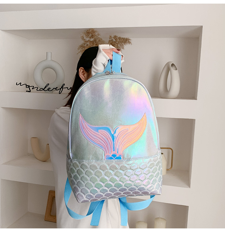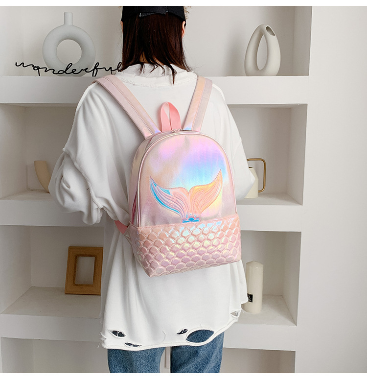 2025 새로운 귀여운 레이저 밝은 인어 백팩 패션 자수 학생 배낭 여성 대용량 Schoolbag