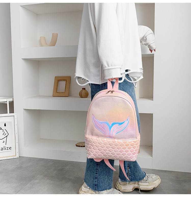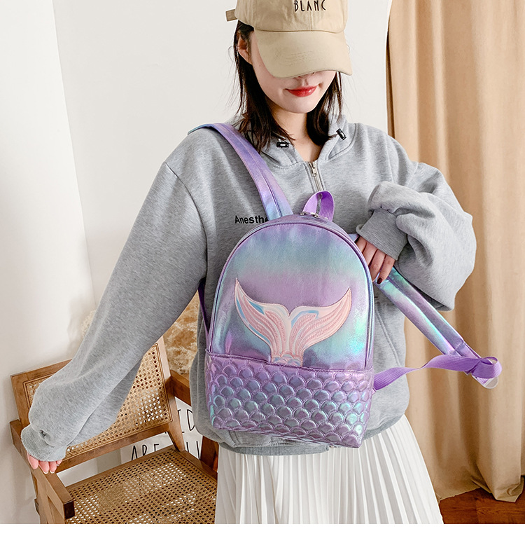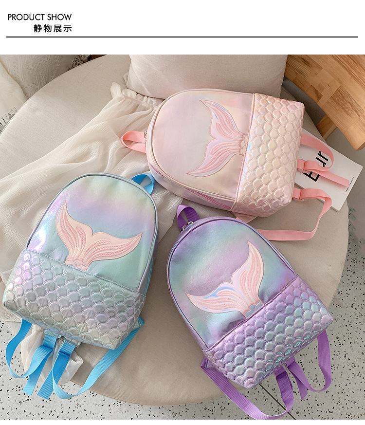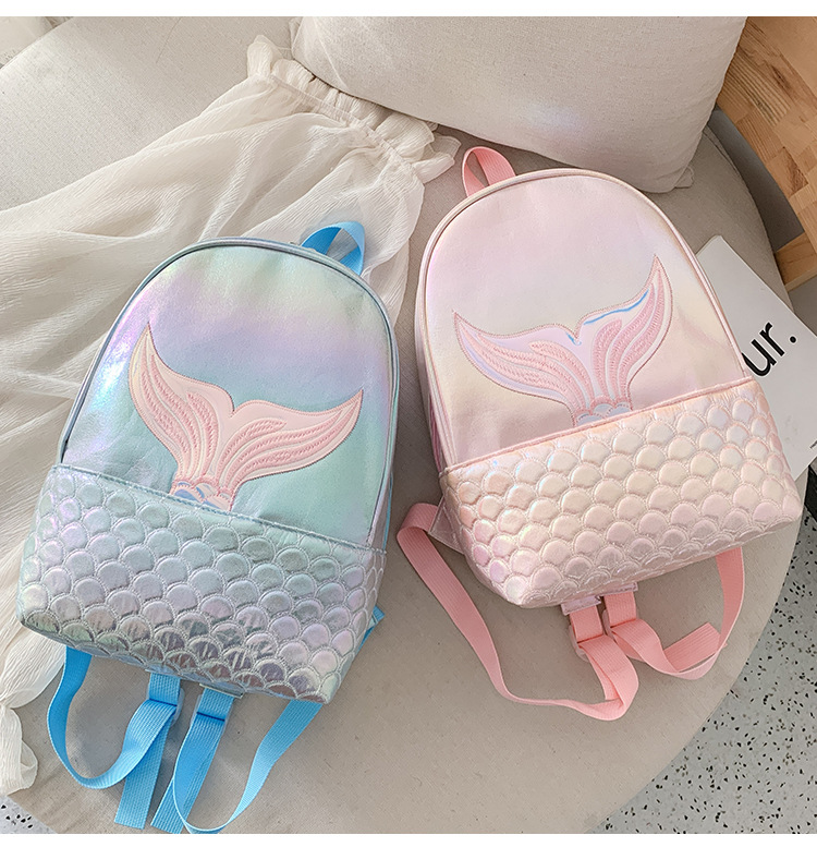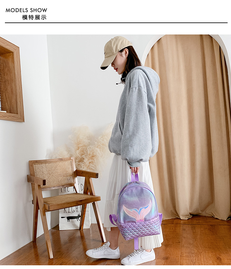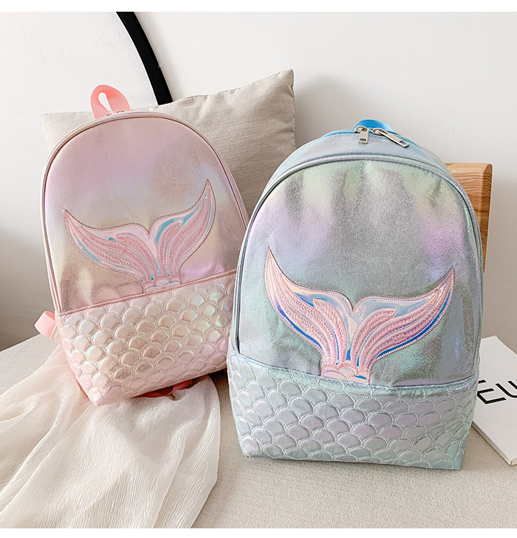2025 새로운 귀여운 레이저 밝은 인어 백팩 패션 자수 학생 배낭 여성 대용량 Schoolbag