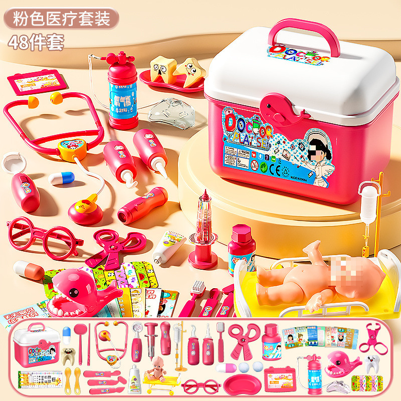 • 의료용 상자 48개 세트 [핑크] 치아 채우기 + 작은 인형 + 수술용 침대