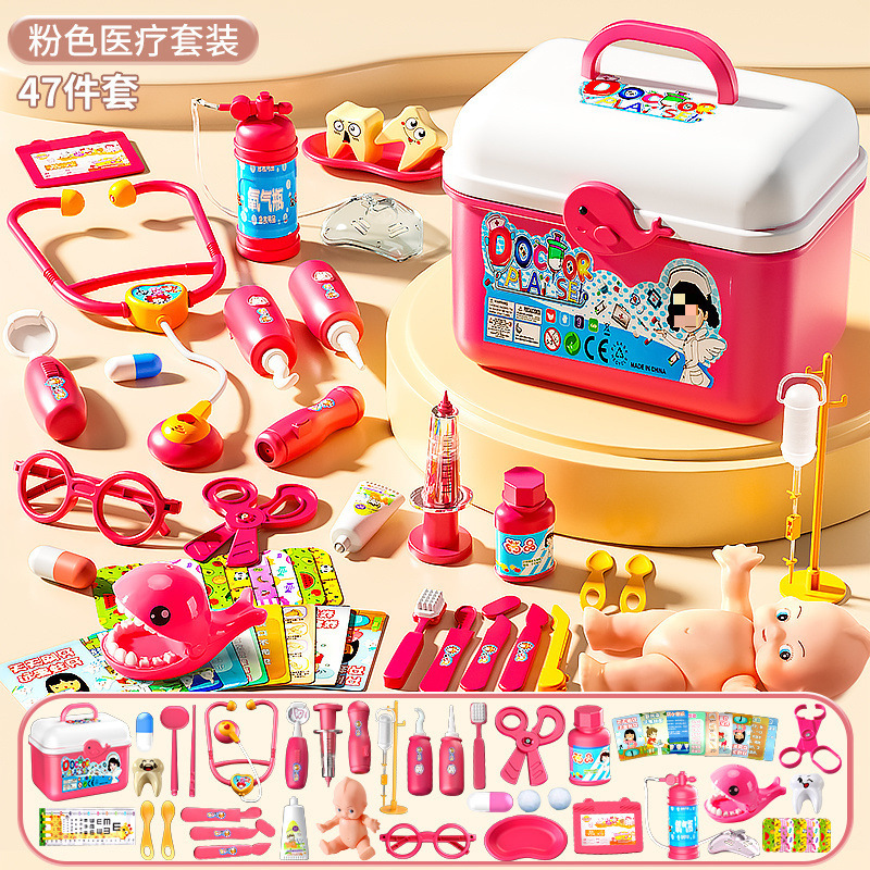 • 의료용 상자 47개 세트 [핑크] 치아 채우기 + 작은 인형 + 청진기