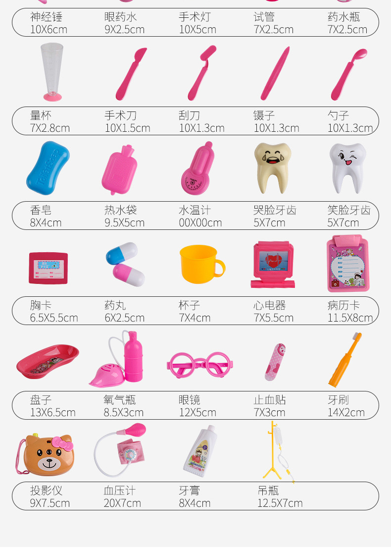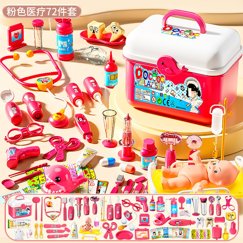 • 의료용 박스 72종 세트 [핑크] 치아 충전재 + 인형 + 침대 + 간호사복