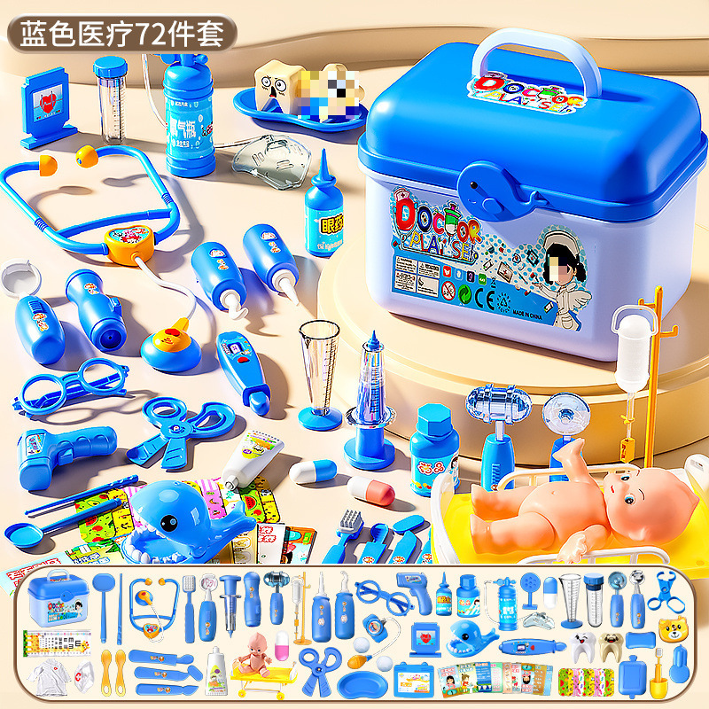 • 의료용 박스 72종 세트 [블루] 치아채우기 + 인형 + 침대 + 간호사복