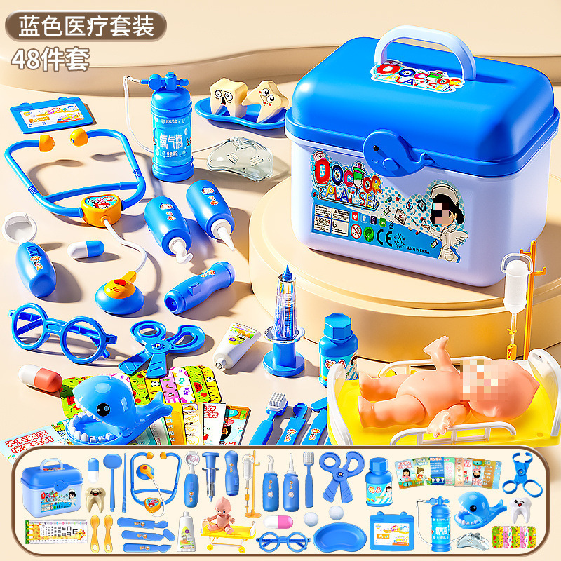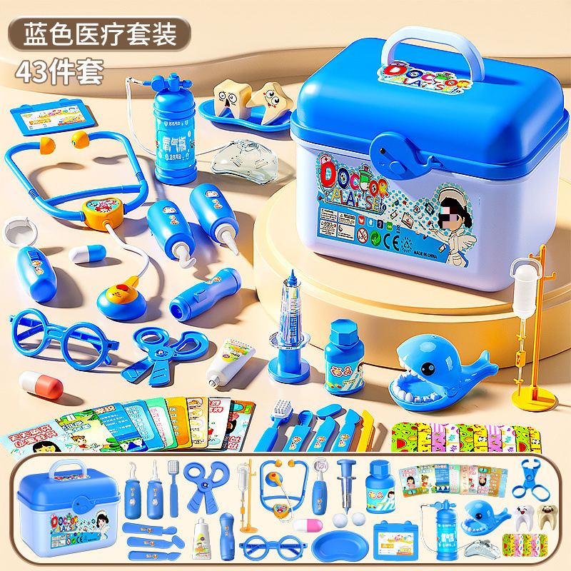 • 의료용 상자 47개 세트 [블루] 치아 채우기 + 작은 인형 + 청진기