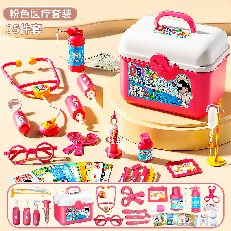 • 의료용 박스 35종 세트 [핑크] 산소통 + 청진기