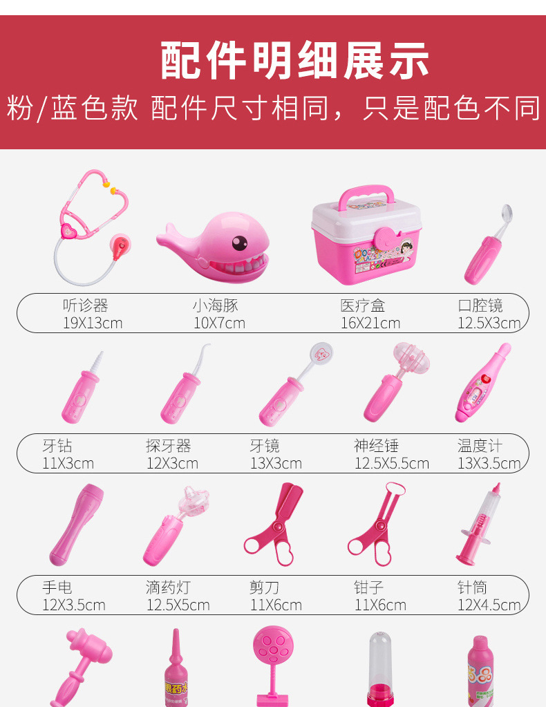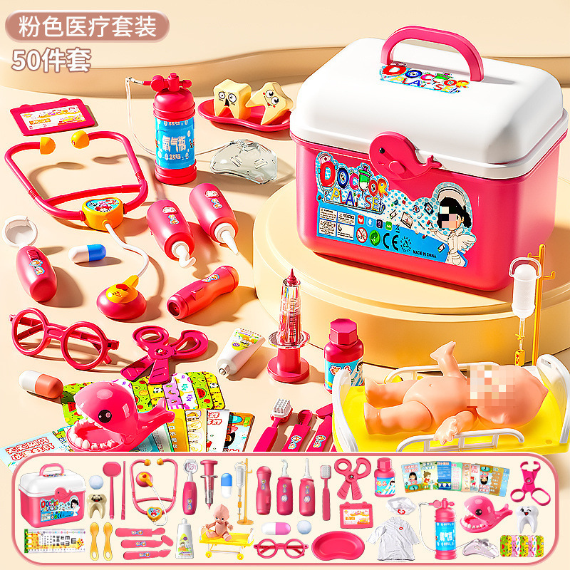 • 의료용 박스 50개 세트 [핑크] 치아 충전재 + 인형 + 침대 + 간호사복