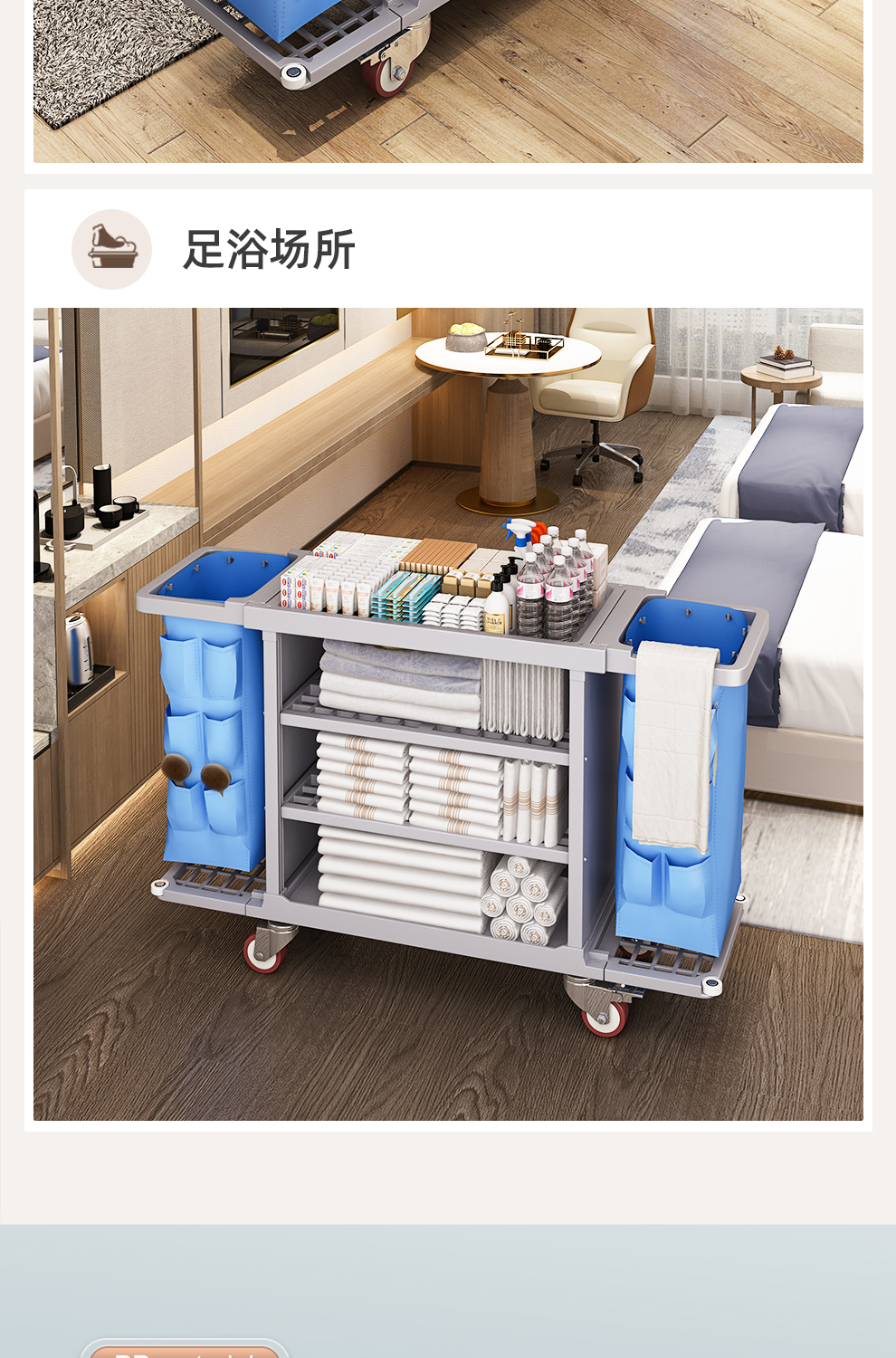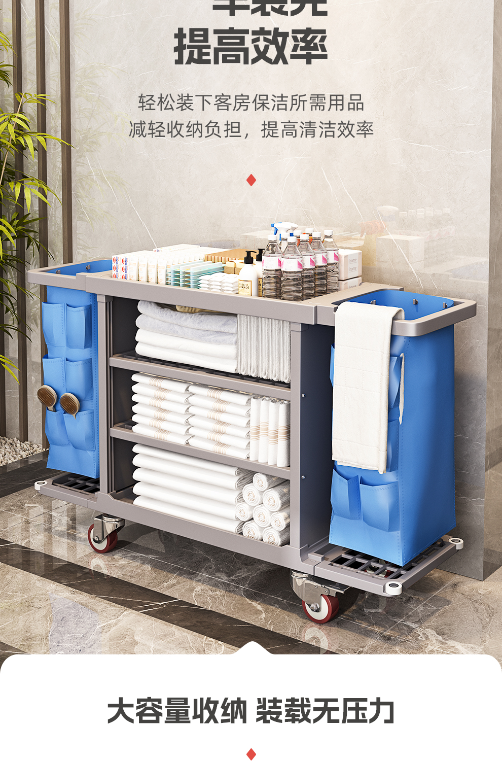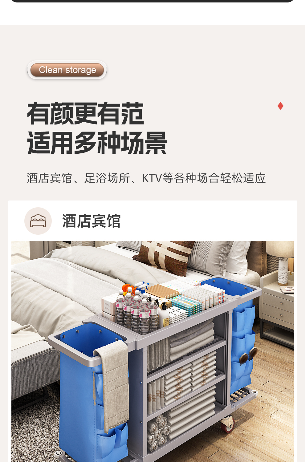 천 자동차 호텔 작업 자동차 룸 서비스 청소 자동차 호텔 방 입구 청소 청소 트롤리스토어 가기