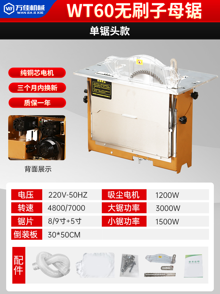 • Wanjia WT60 브러시리스 고전력 이중 톱