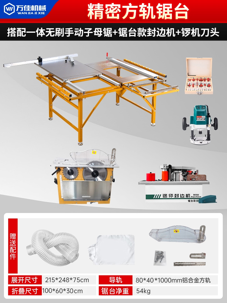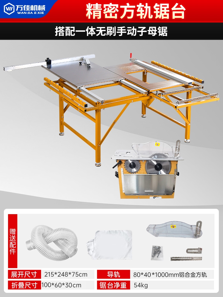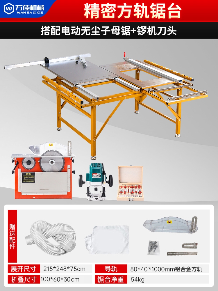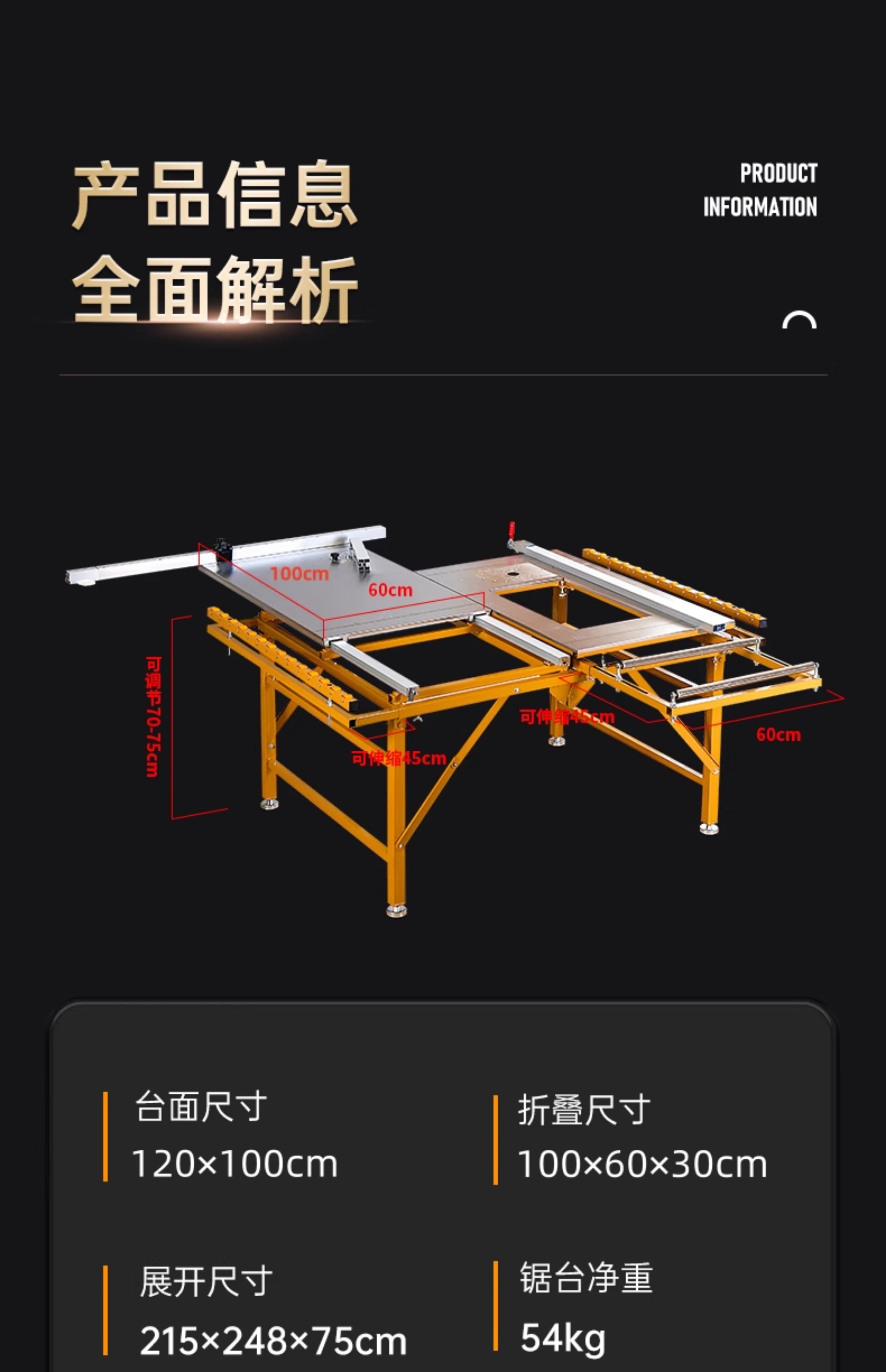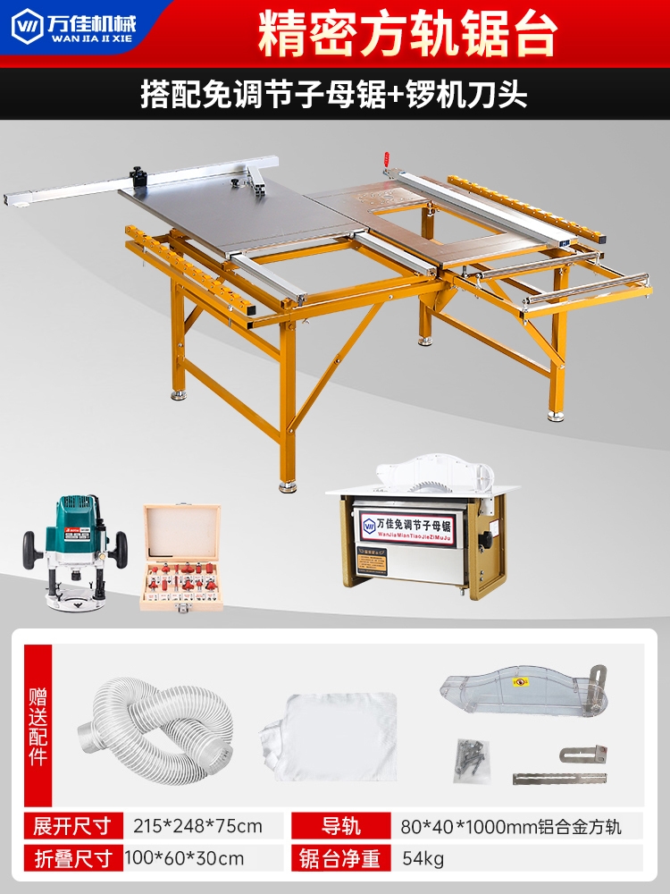 Wanjia 목공 테이블 다기능 올인원 기계 푸시 테이블은 브래킷 서브 테이블 접이식 서브 테이블 톱을 보았습니다.