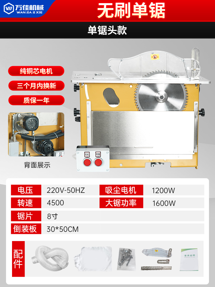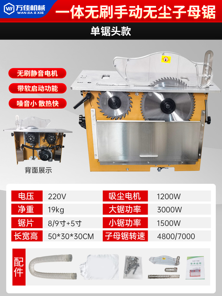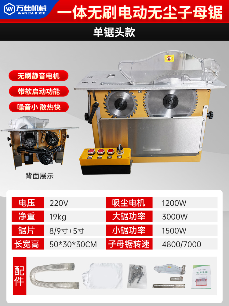 • Wanjia 브러시리스 먼지 없는 단일 톱 [작은 톱 없음]