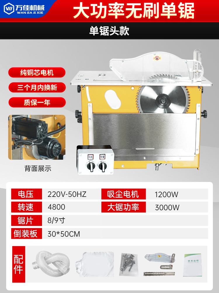 • Wanjia 브러시리스 먼지 없는 단일 톱, 고출력 [소형 톱 없음]