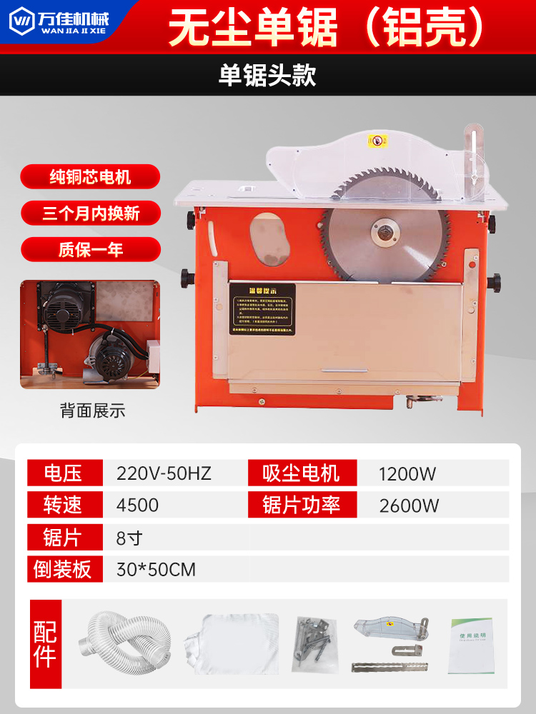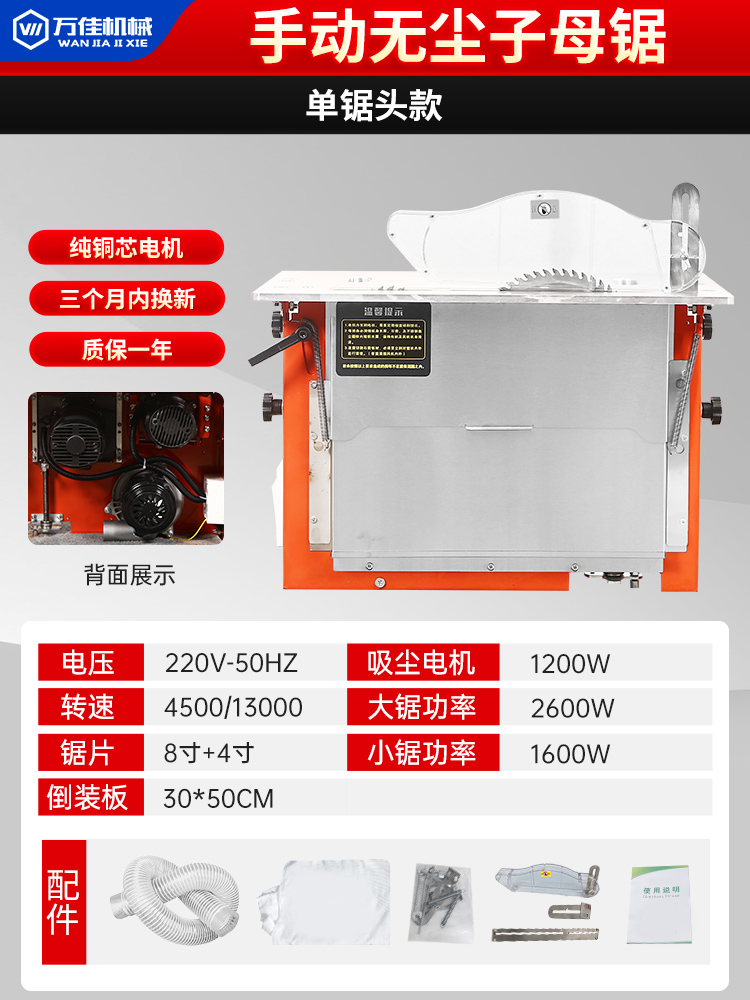 • Wanjia 수동 먼지 없는 단일 톱, 고출력 [작은 톱 없음]